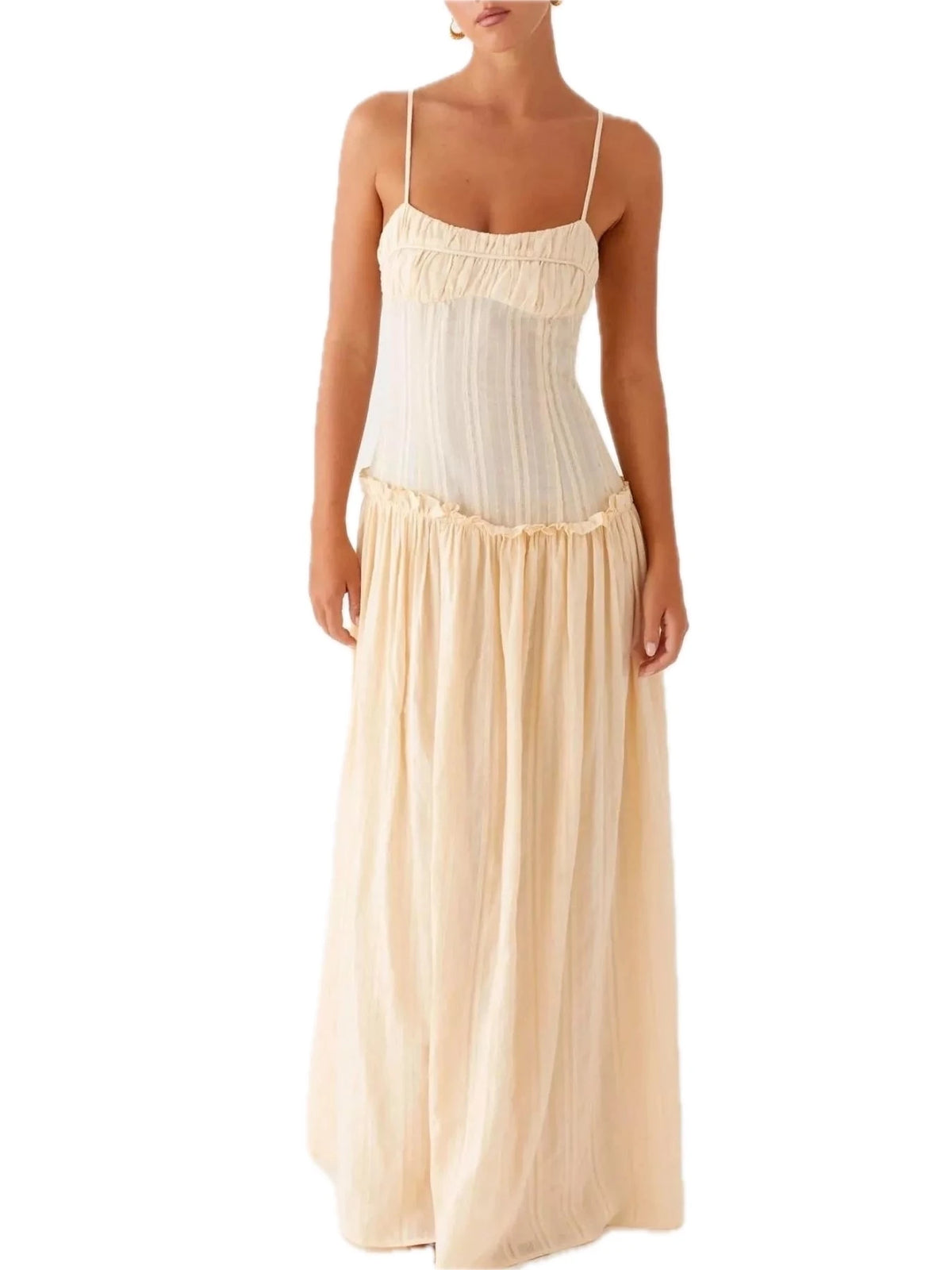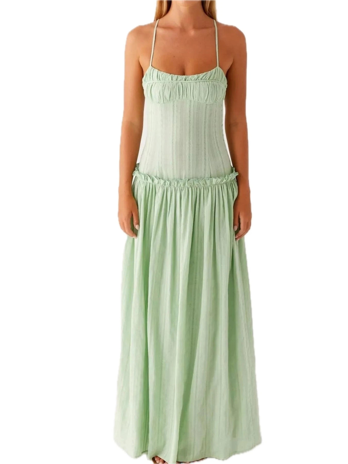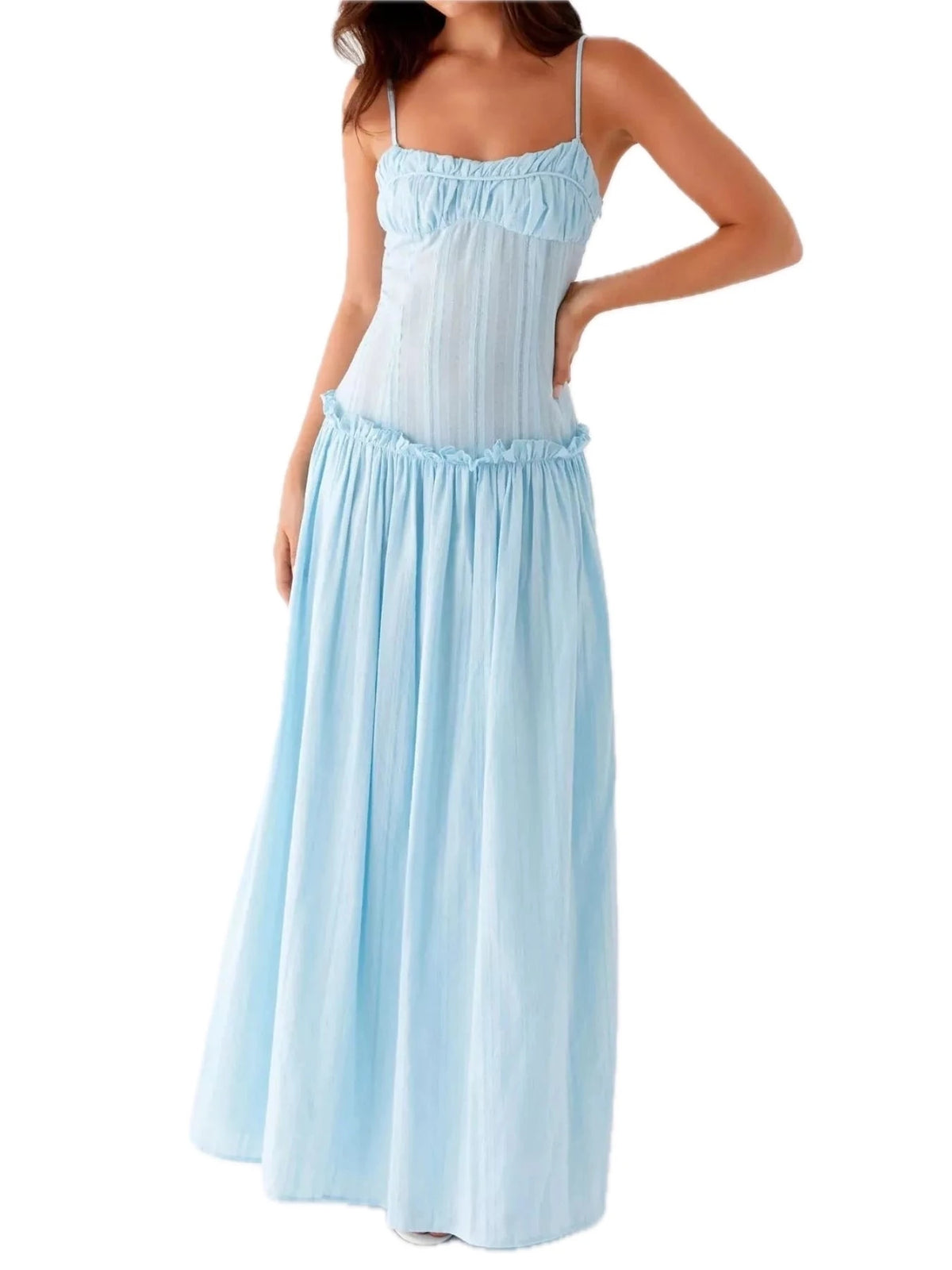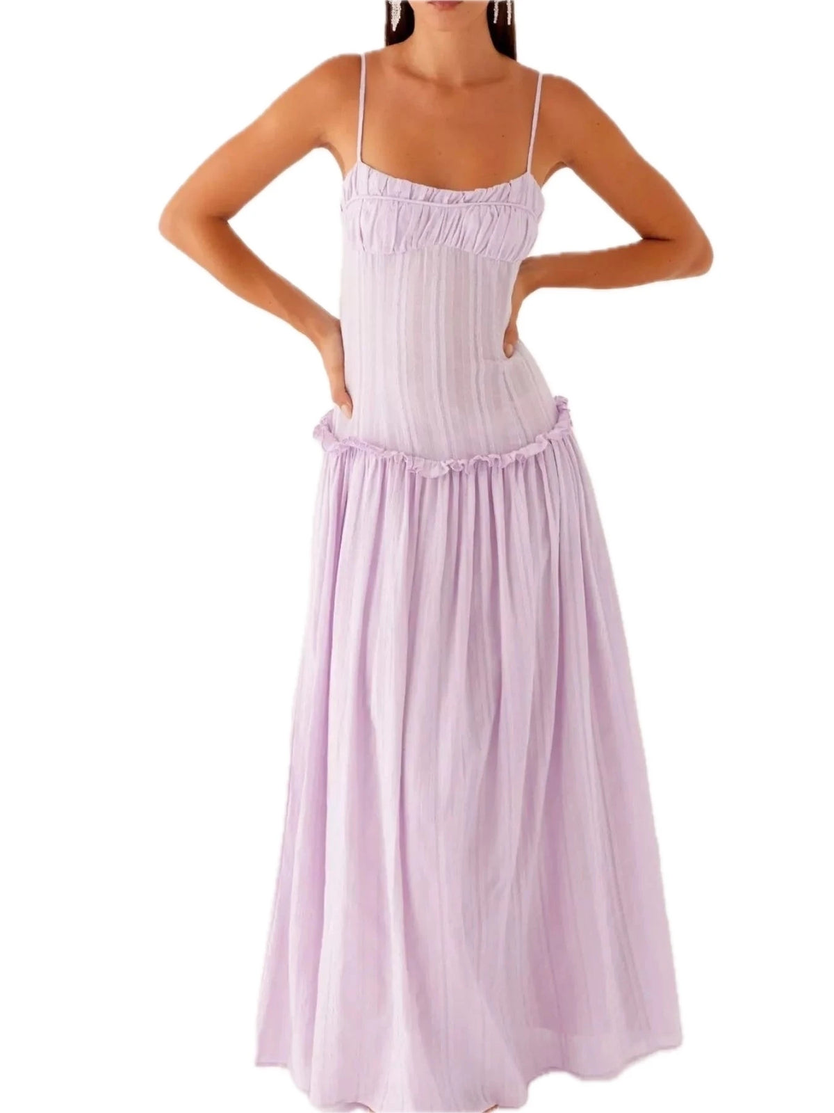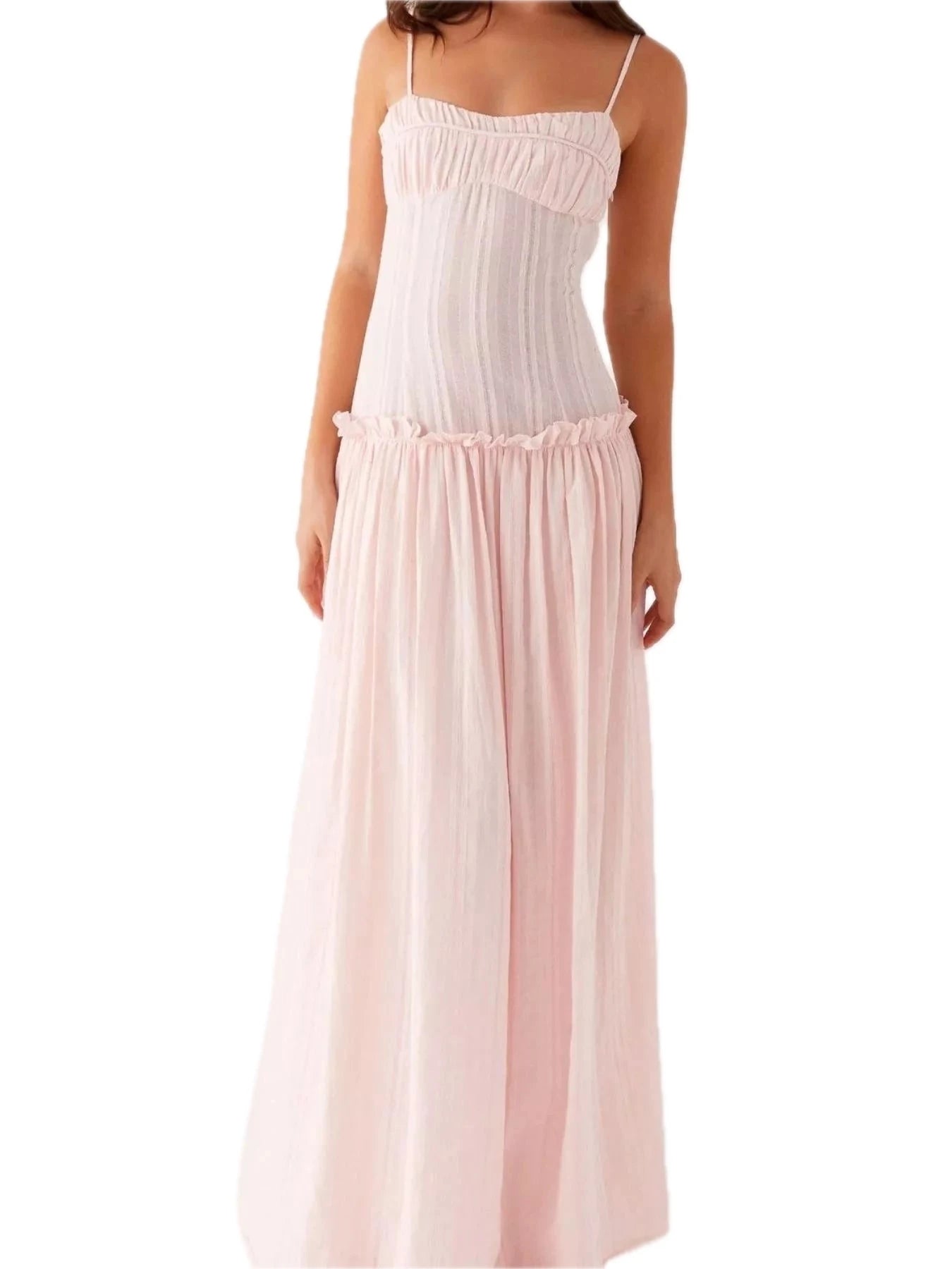 Women's Frill Spaghetti Strap Maxi Dress with Smocked Frill Stretch and 100% Polyester Fabric for Flowy Silhouette