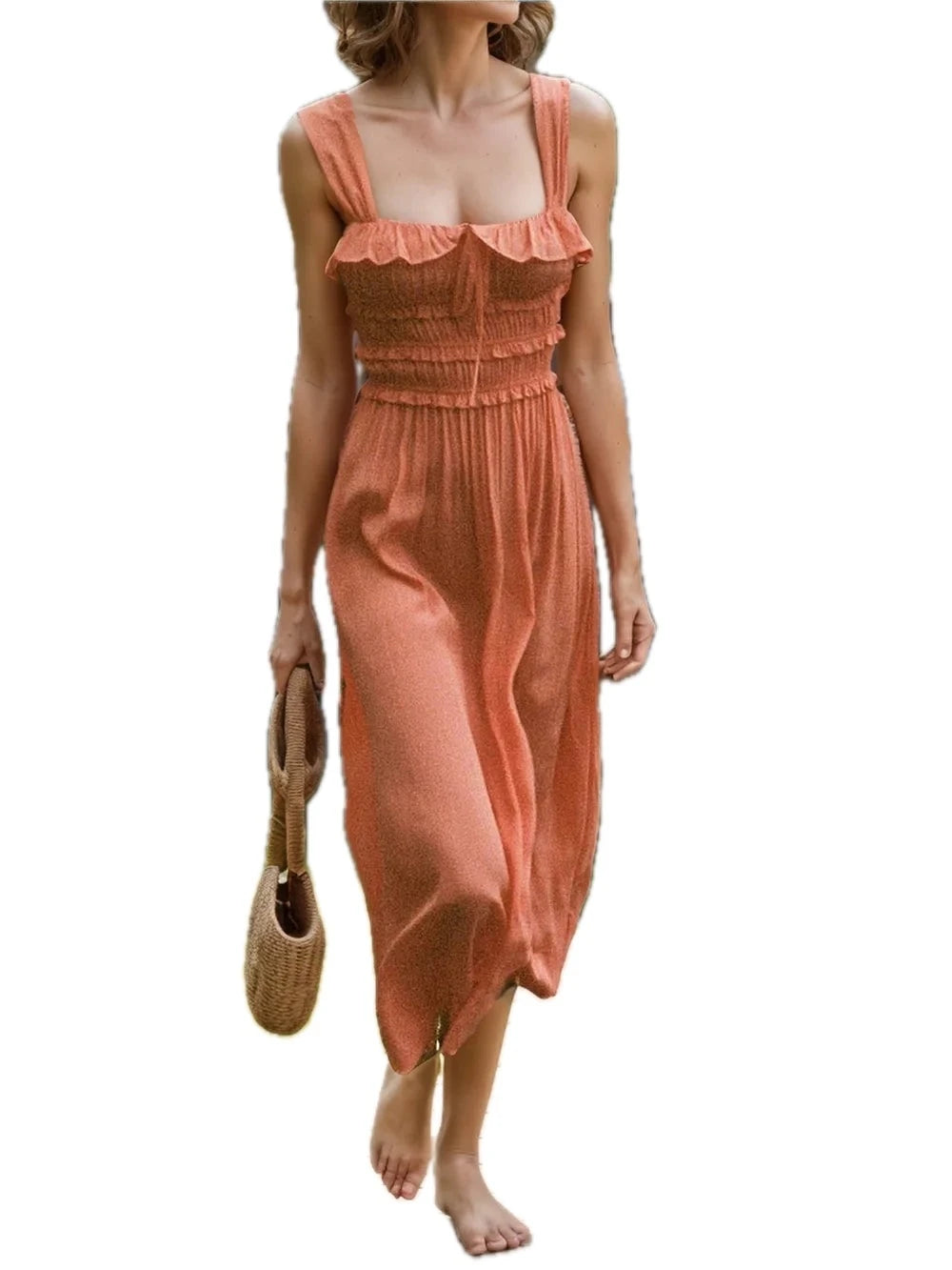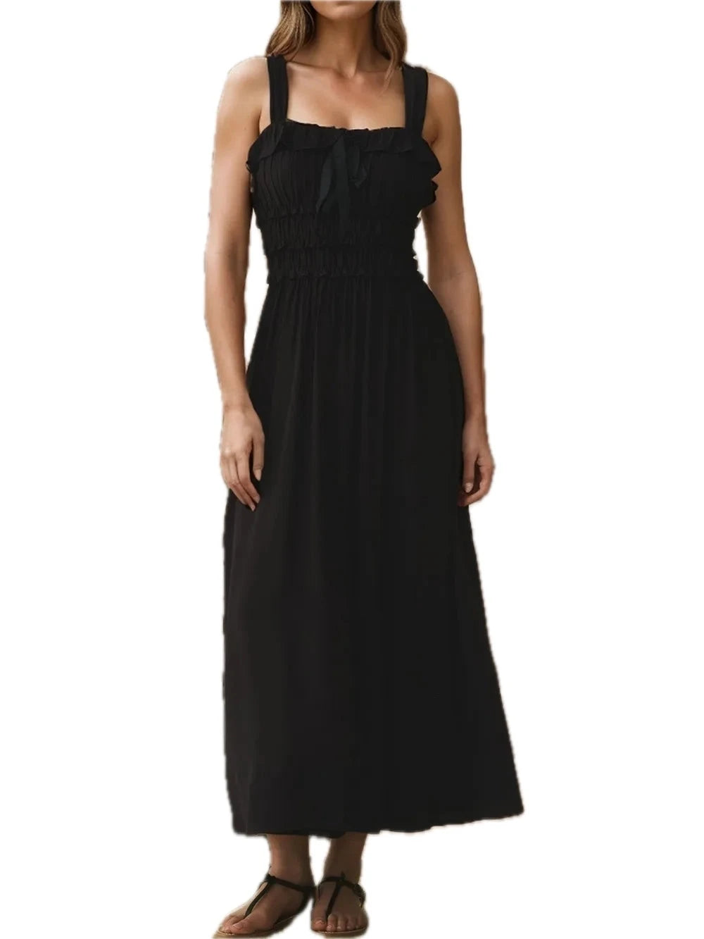 Women's Frill Square Neck Wide Strap Dress Polyester Fabric Lightweight Elegant Yet Flowy for Daily Wear and Easy Fit