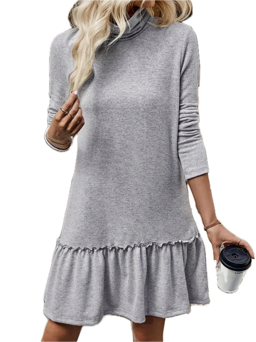 Women's Frill Turtleneck Long Sleeve Dress with Sheer Detail and Moderate Stretch Ninety Five Percent Polyester and Five Percent Spandex
