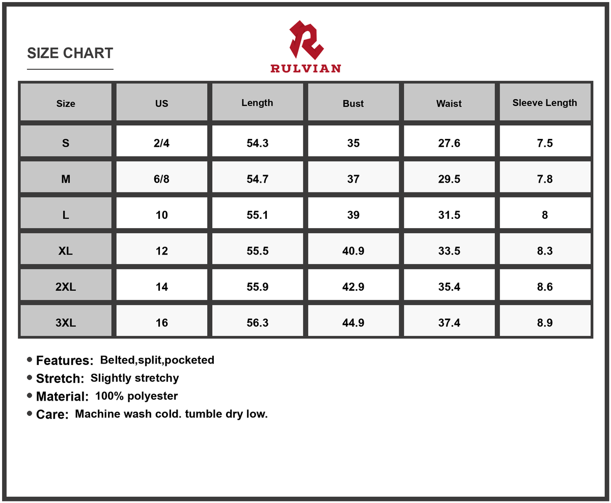 Size | US | Length | Bust | Waist | Sleeve Length |