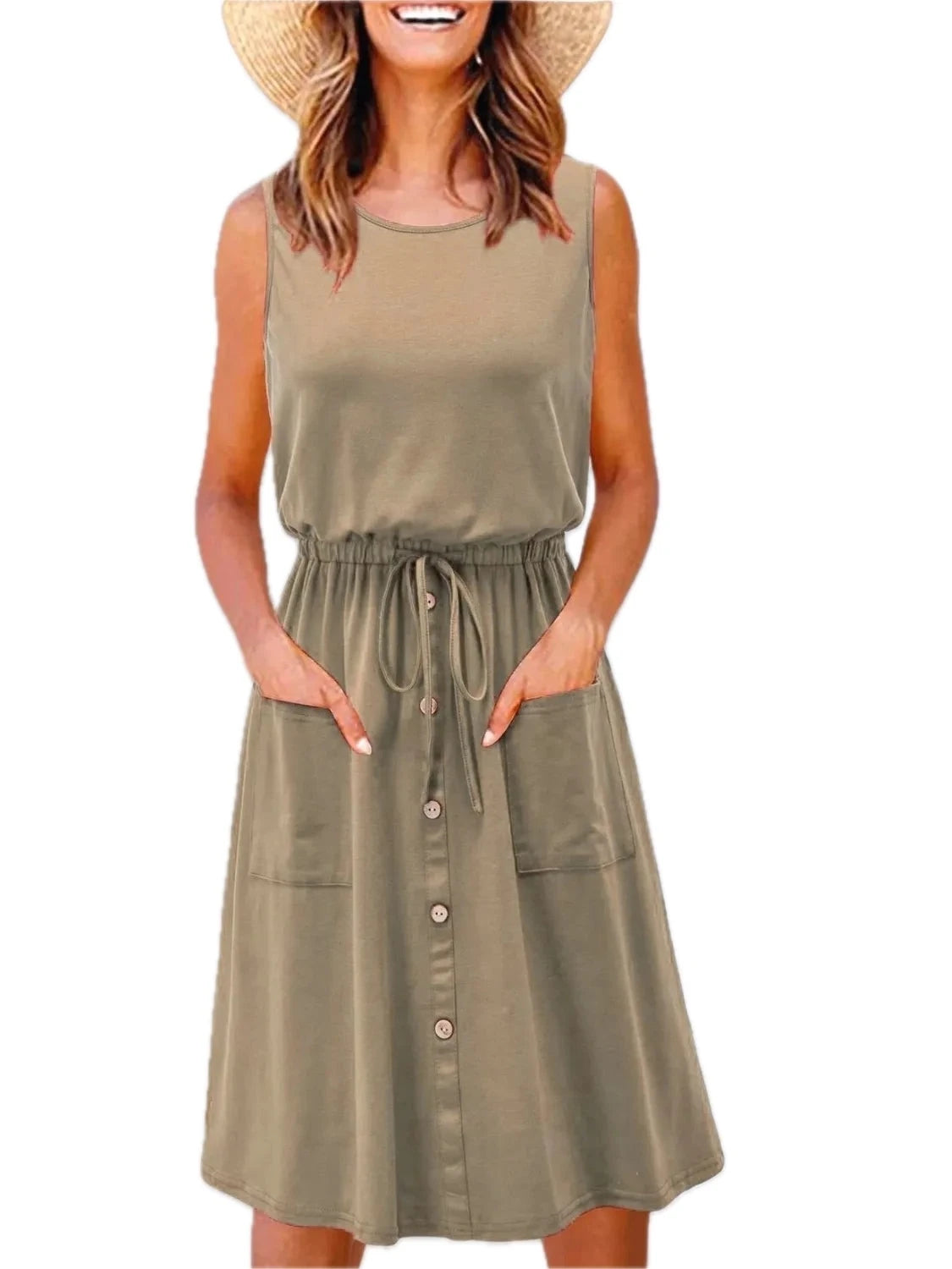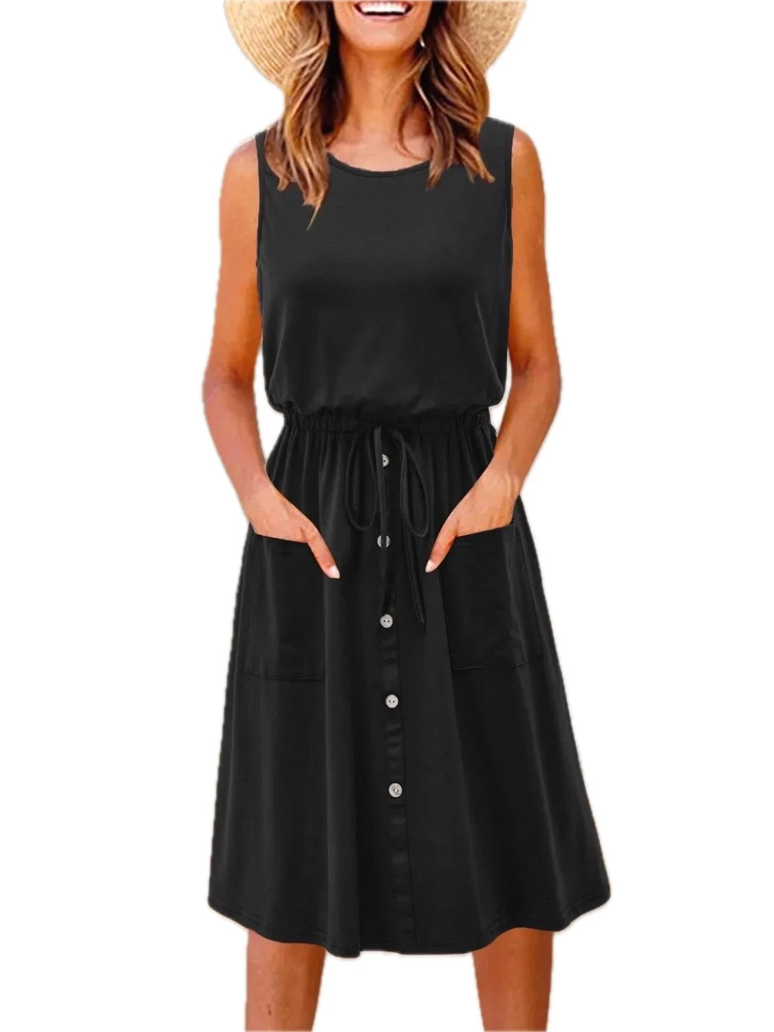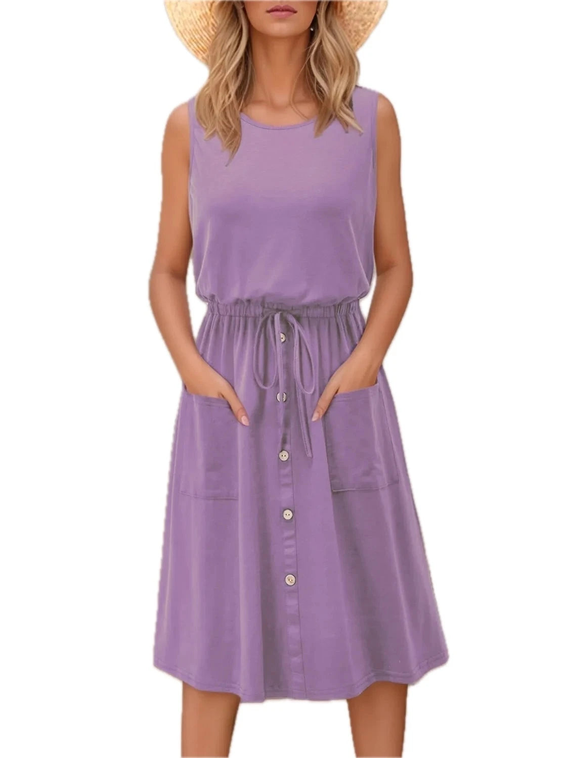 Men's Plus Size Sleeveless Round Neck Tank Dress with Drawstring Pockets for Casual Everyday Comfort and Easy Fit
