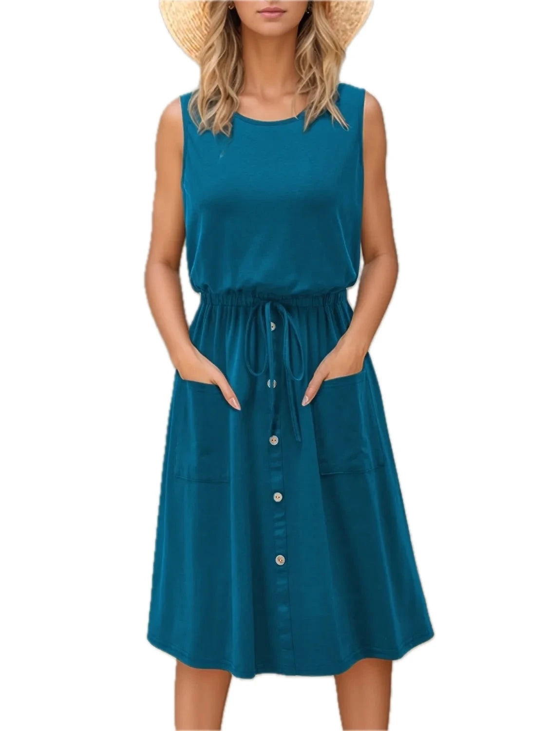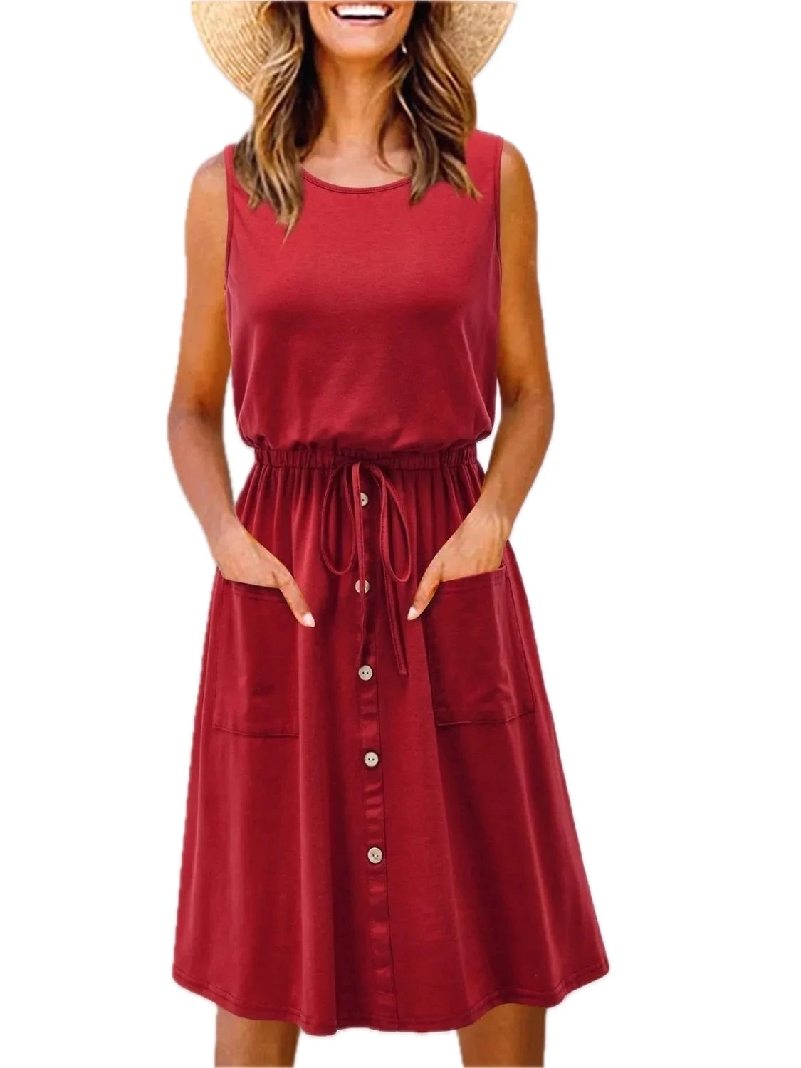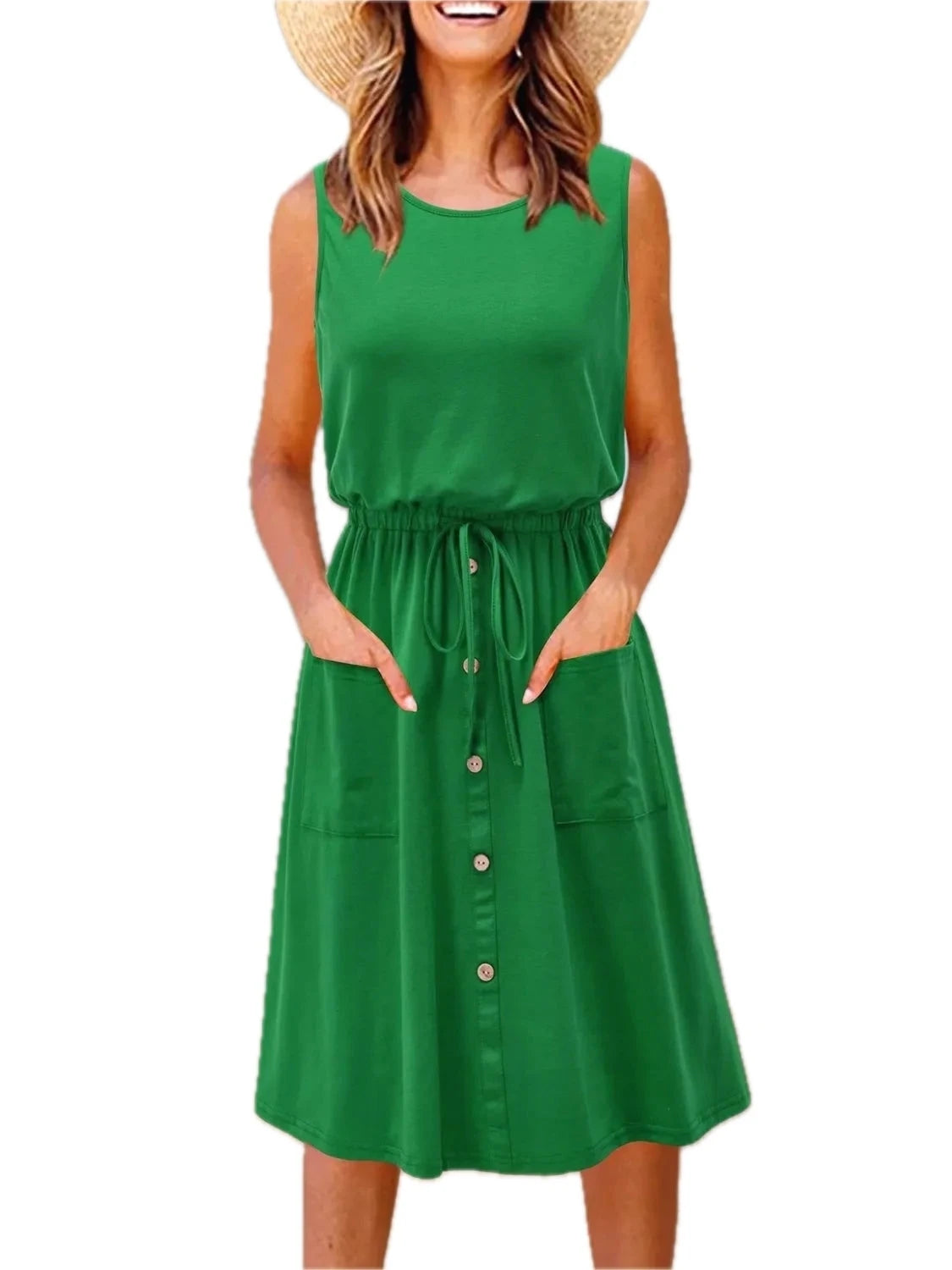 Men's Plus Size Sleeveless Round Neck Tank Dress with Drawstring Pockets for Casual Everyday Comfort and Easy Fit