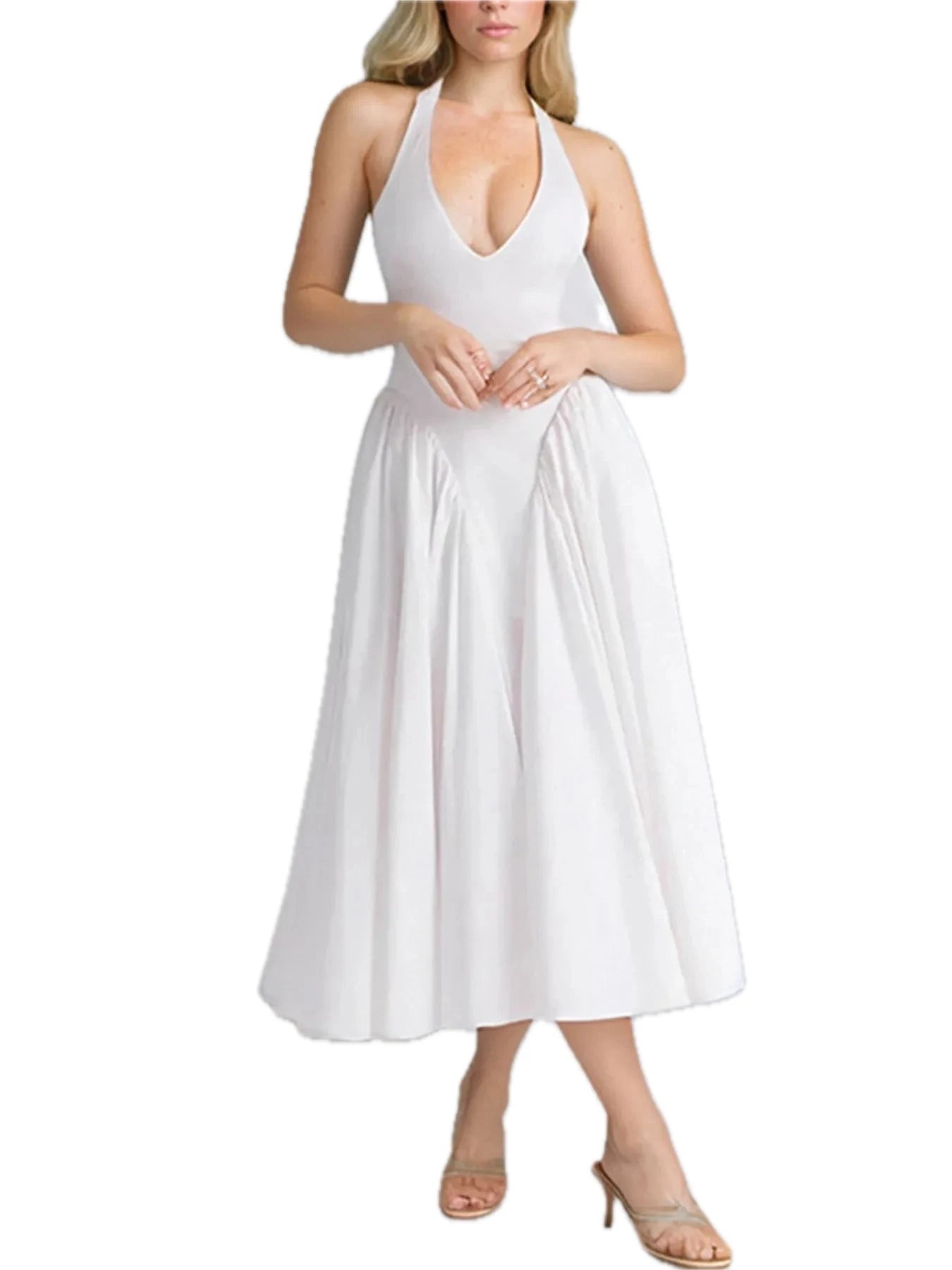 Women's Full Size Ruched Halter Neck Midi Dress for Party and Evening Wear Lightweight Polyester Comfort Elegant