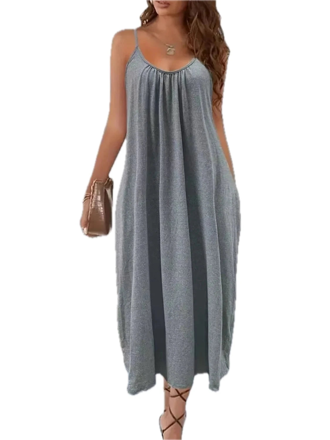 Women's Size Scoop Neck Cami Dress with Pockets Ninety Five Percent Polyester Fabric And Five Percent Spandex Fabric