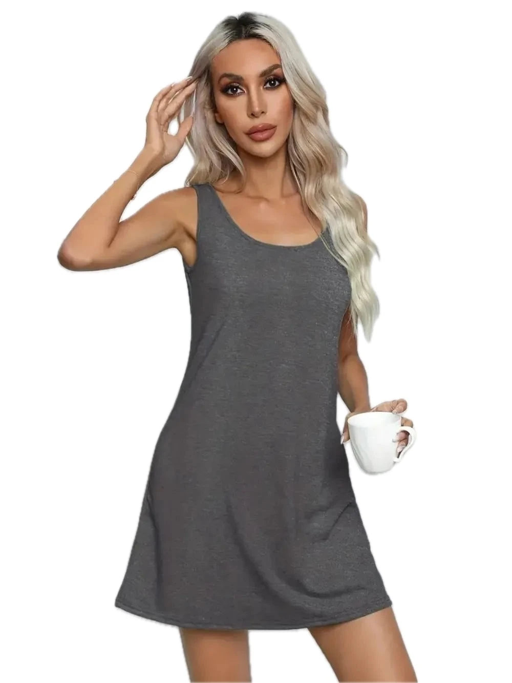 Women's Scoop Neck Wide Strap Mini Dress with 100% Polyester Fabric for Flattering Fit Easy Care and Summer Style