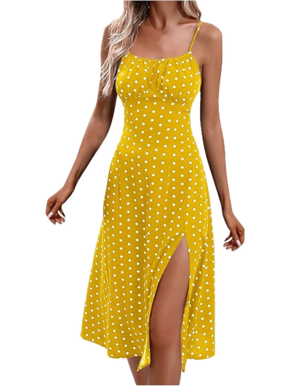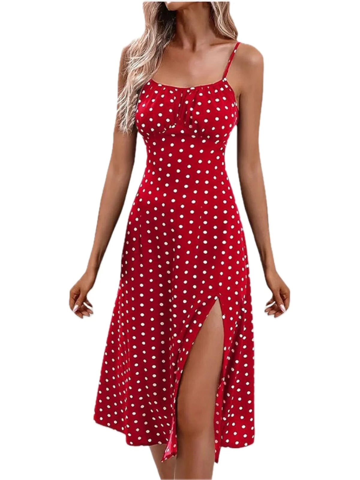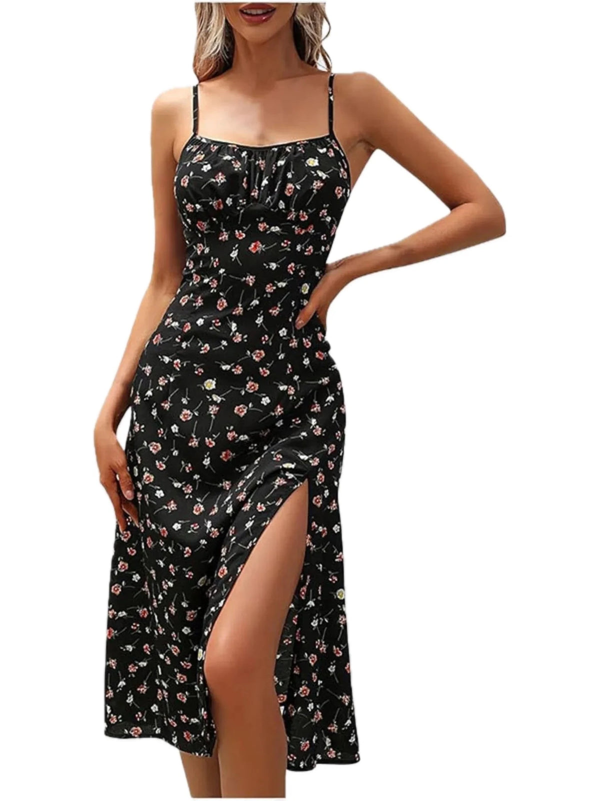 Women's Slit Printed Cami Midi Dress Plus Size with Tie Detail and Comfortable Fit Polyester % 100 All Day Wear