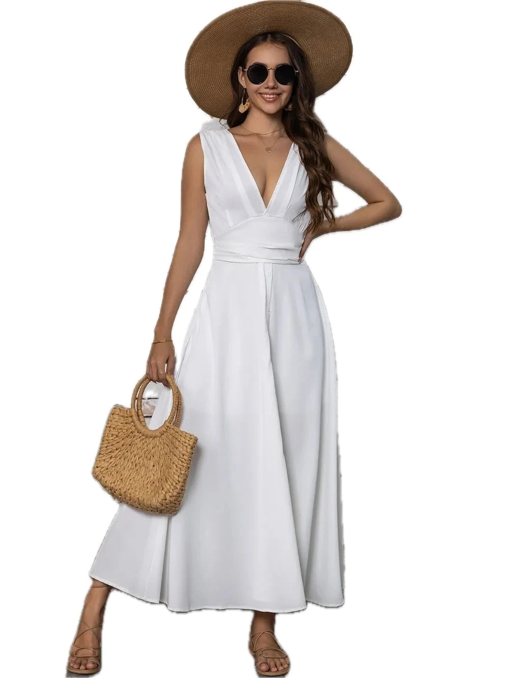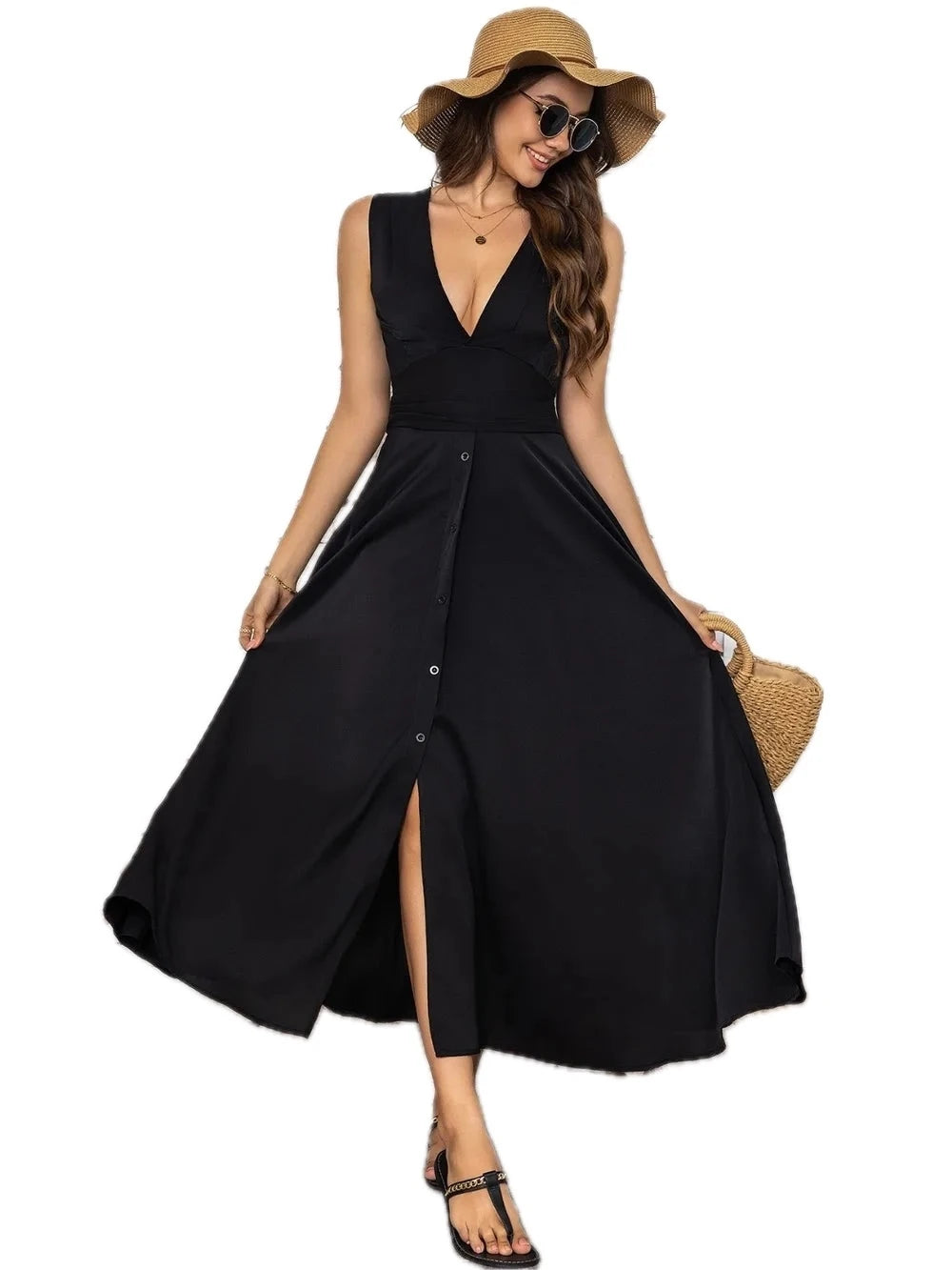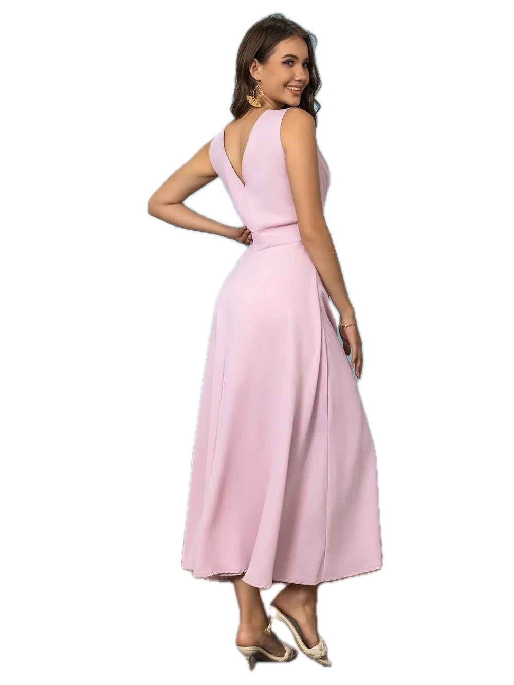 Women's Slit V Neck Sleeveless Midi Dress 100% Polyester Lightweight Elegant Everyday Wear Ideal for Casual Office