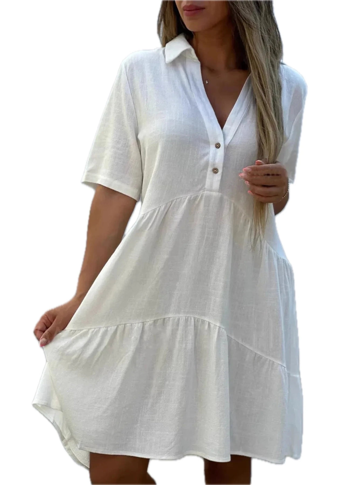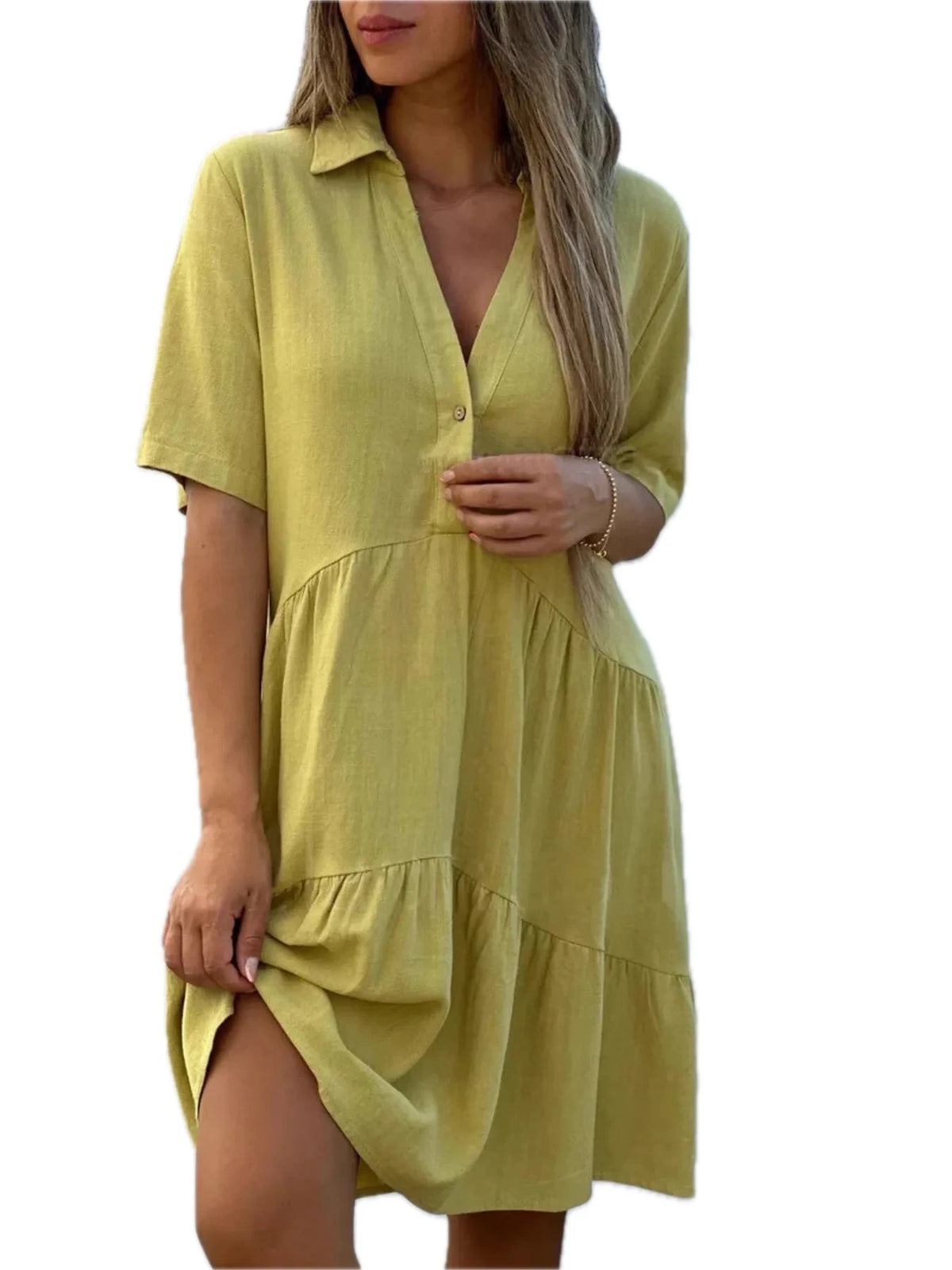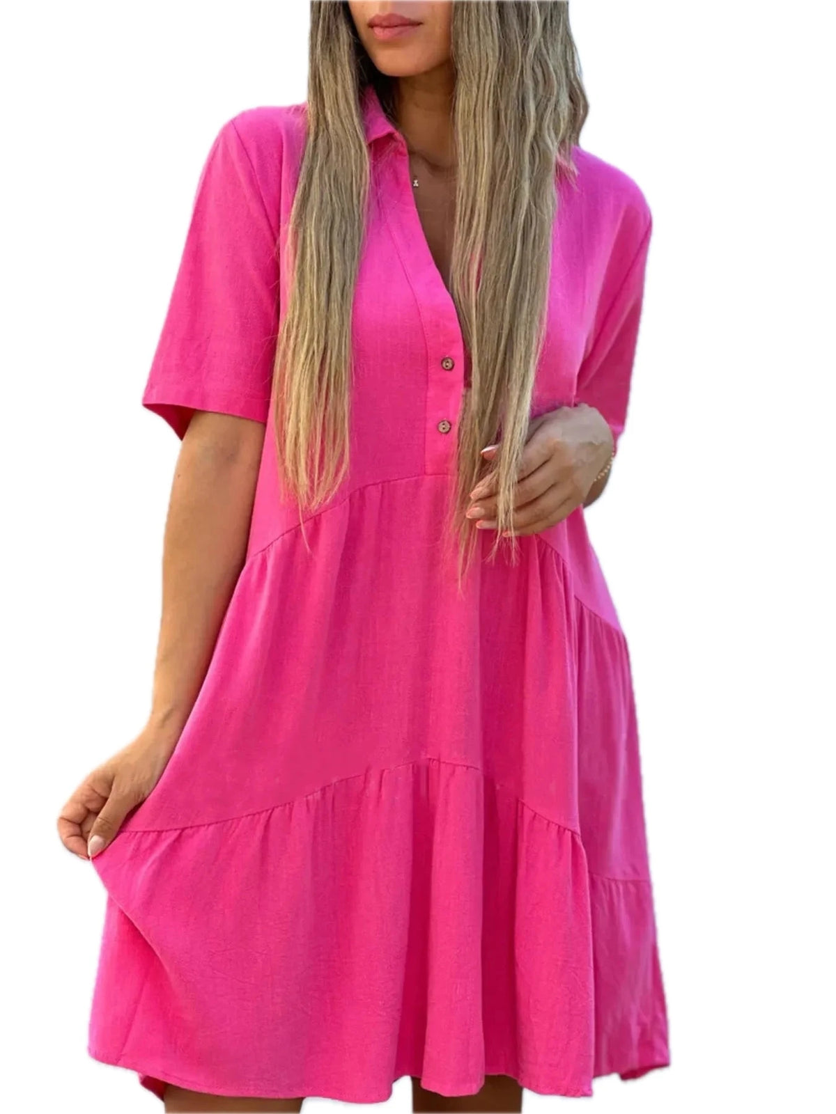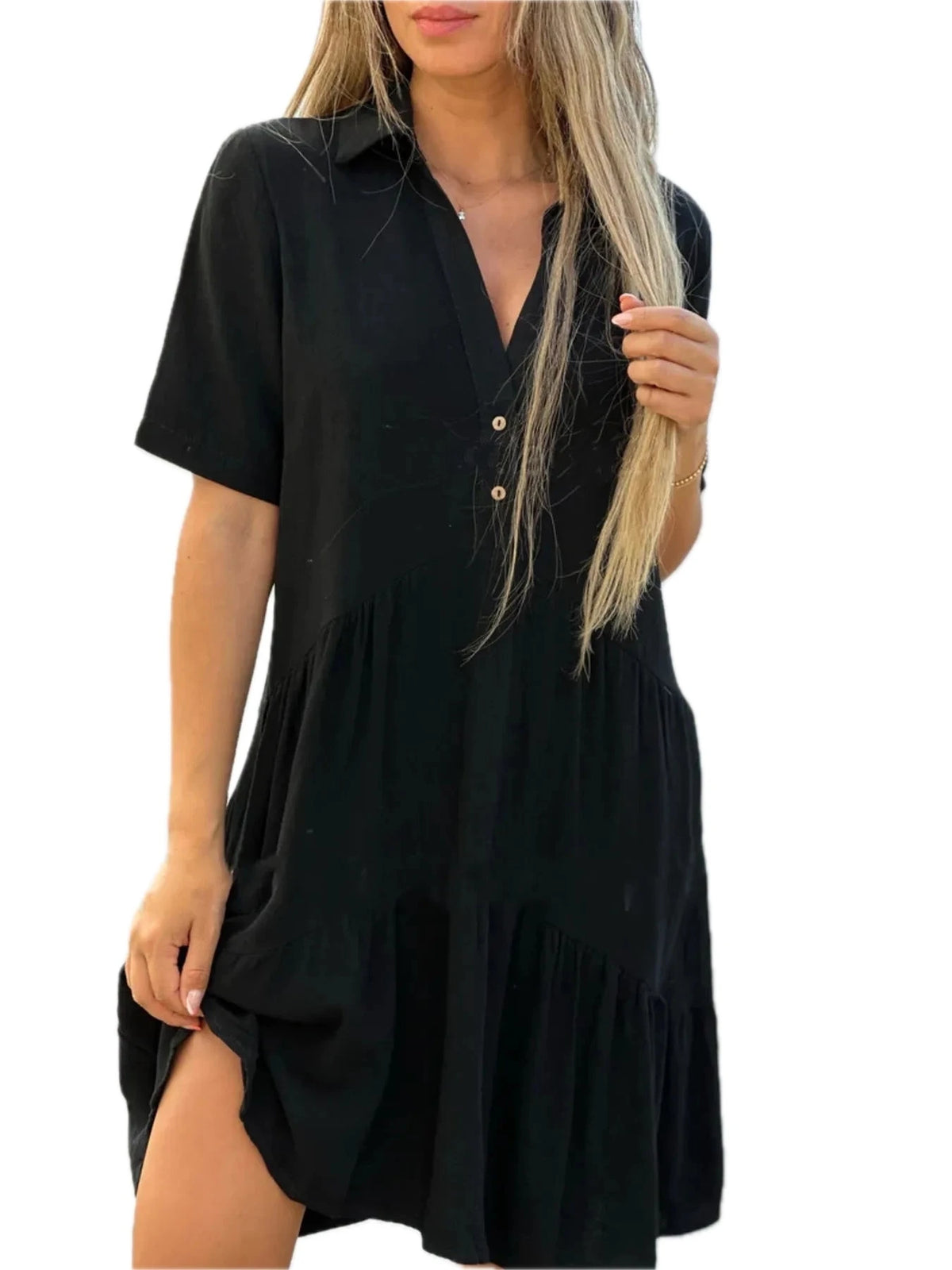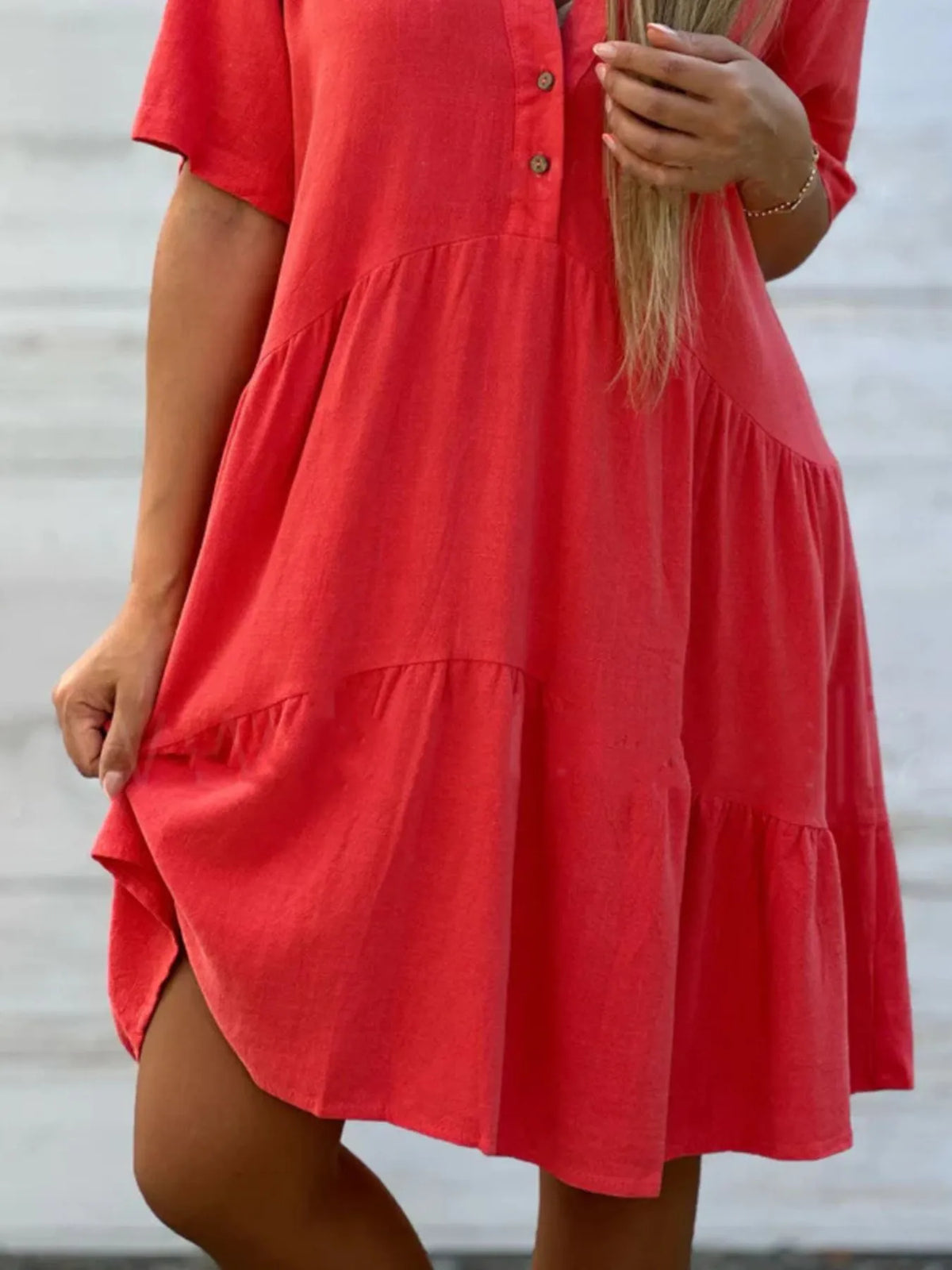 Women's Tiered Button Front Short Sleeve Dress in 100% Polyester with Flowy Tiered Silhouette Plus Size Full Length