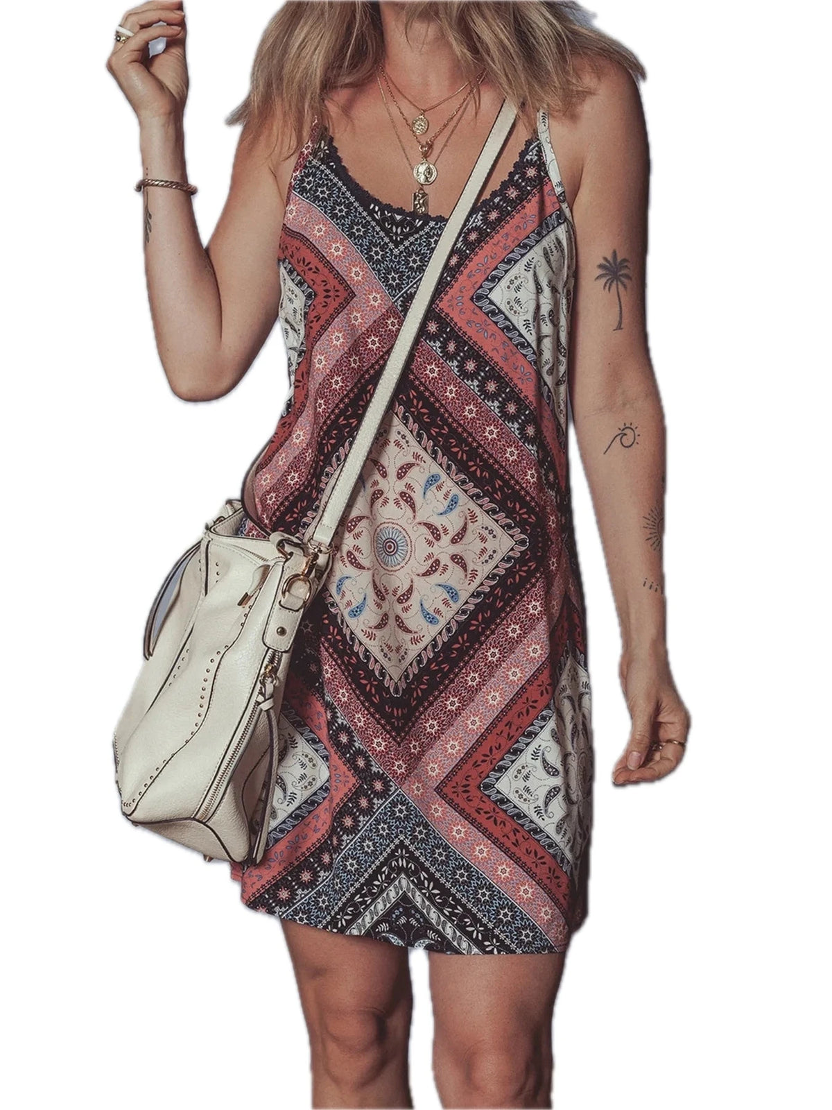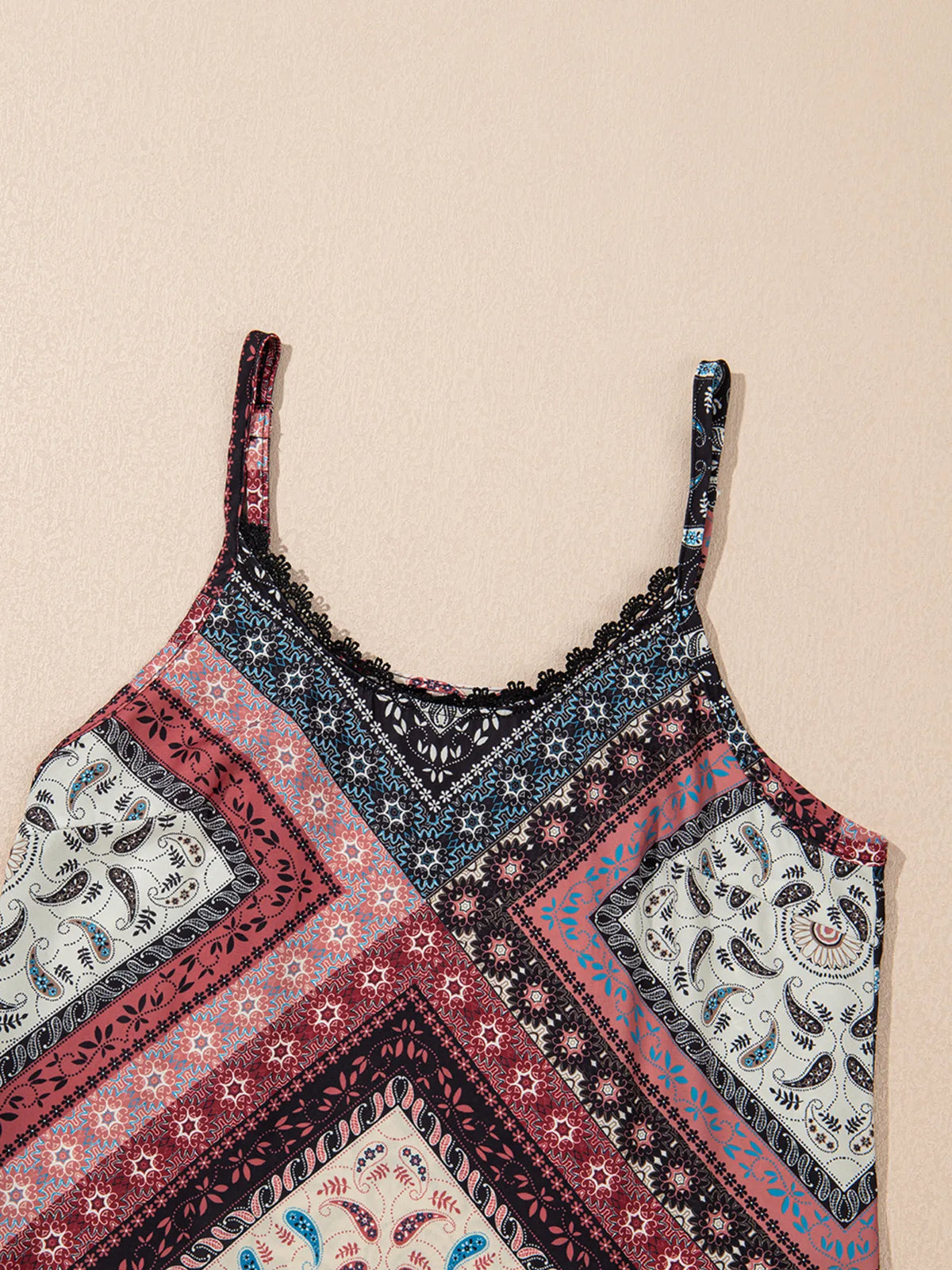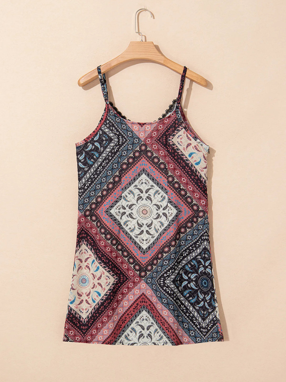 Women's Geometric Paisley Print Cami Mini Dress 100% Viscose Lightweight Sleeveless Sundress for Summer Daytime Wear
