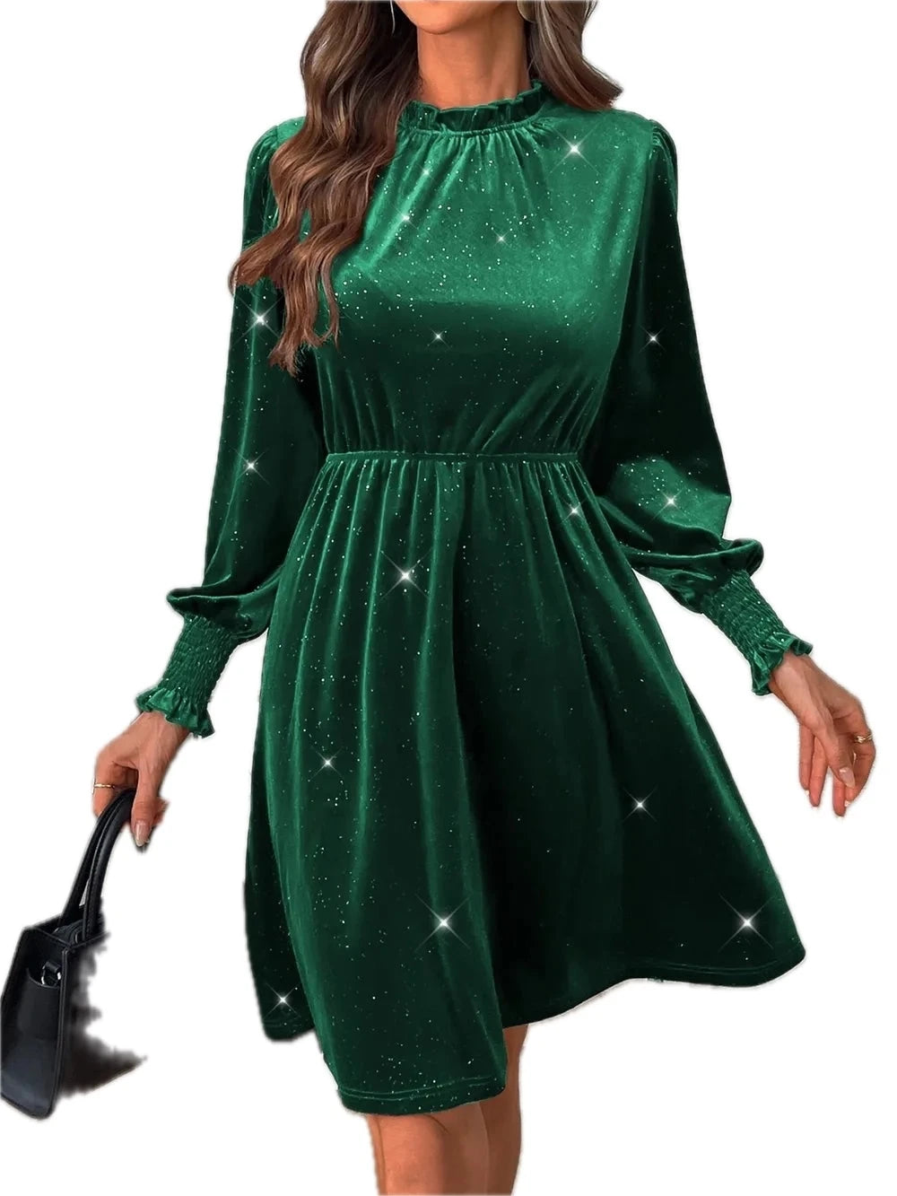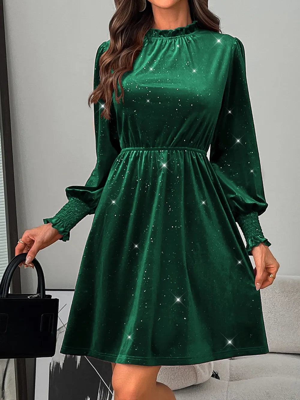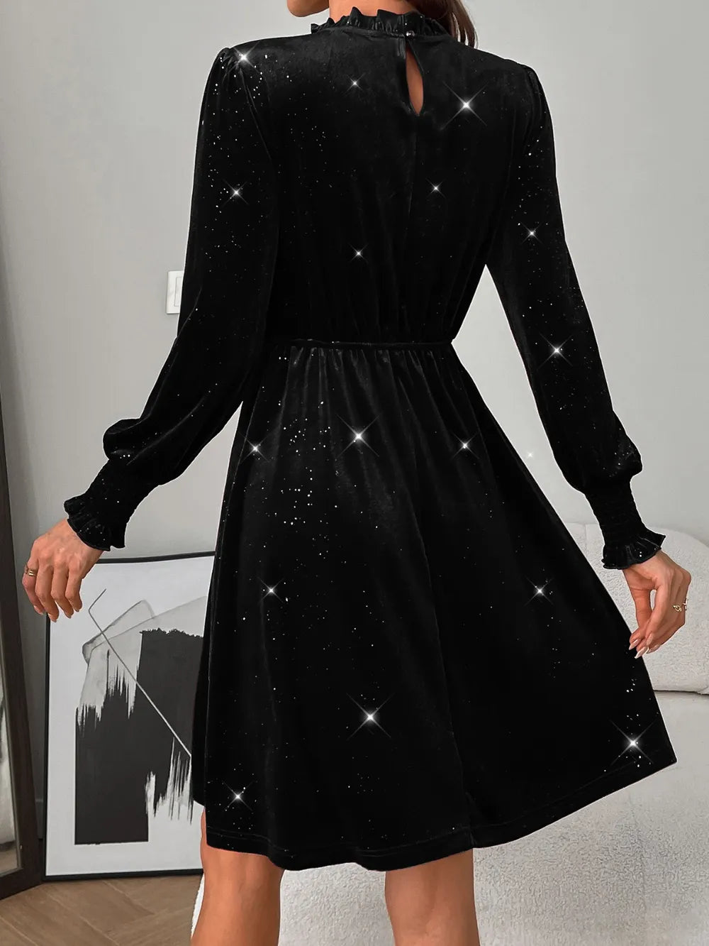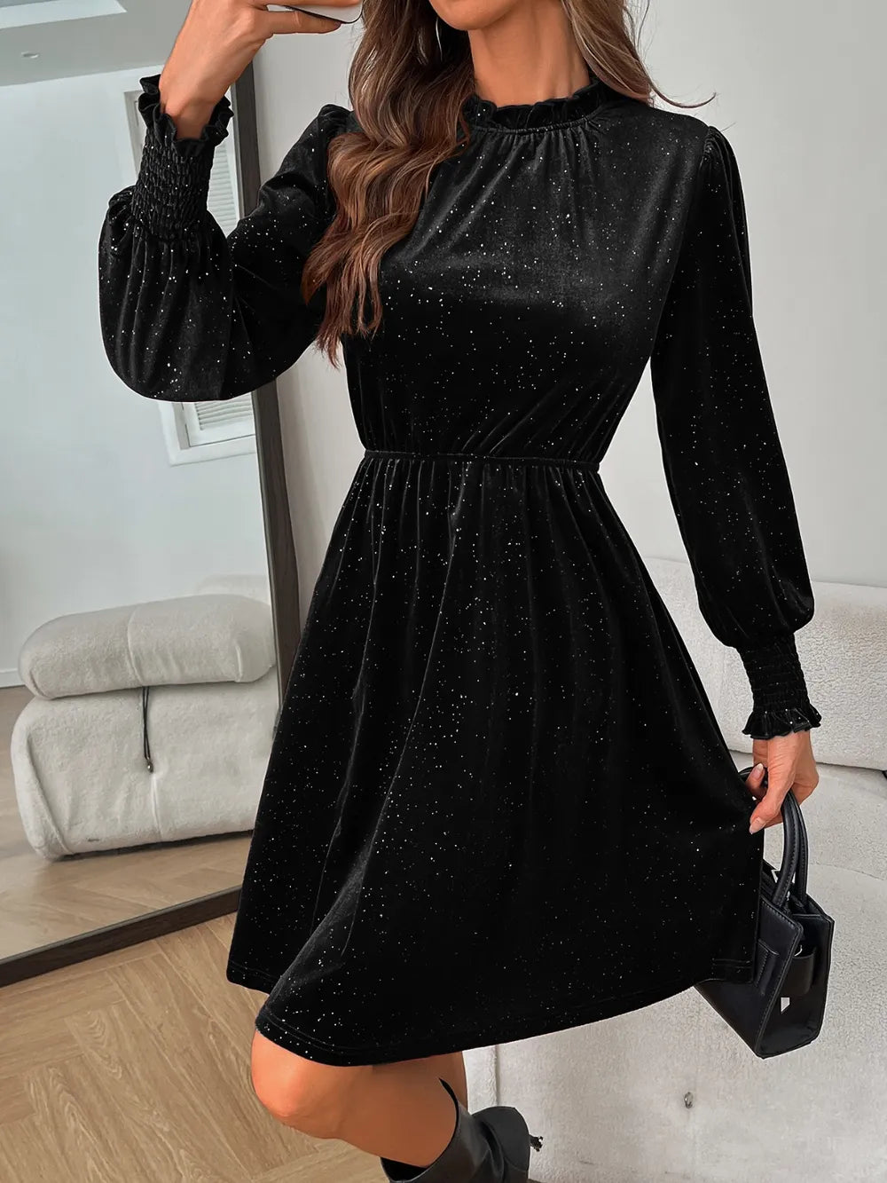 Women's Glitter Mock Neck Long Sleeve Mini Dress 95% Polyester 5% Elastane Sparkly Evening Shimmer Illusion Glow Detail