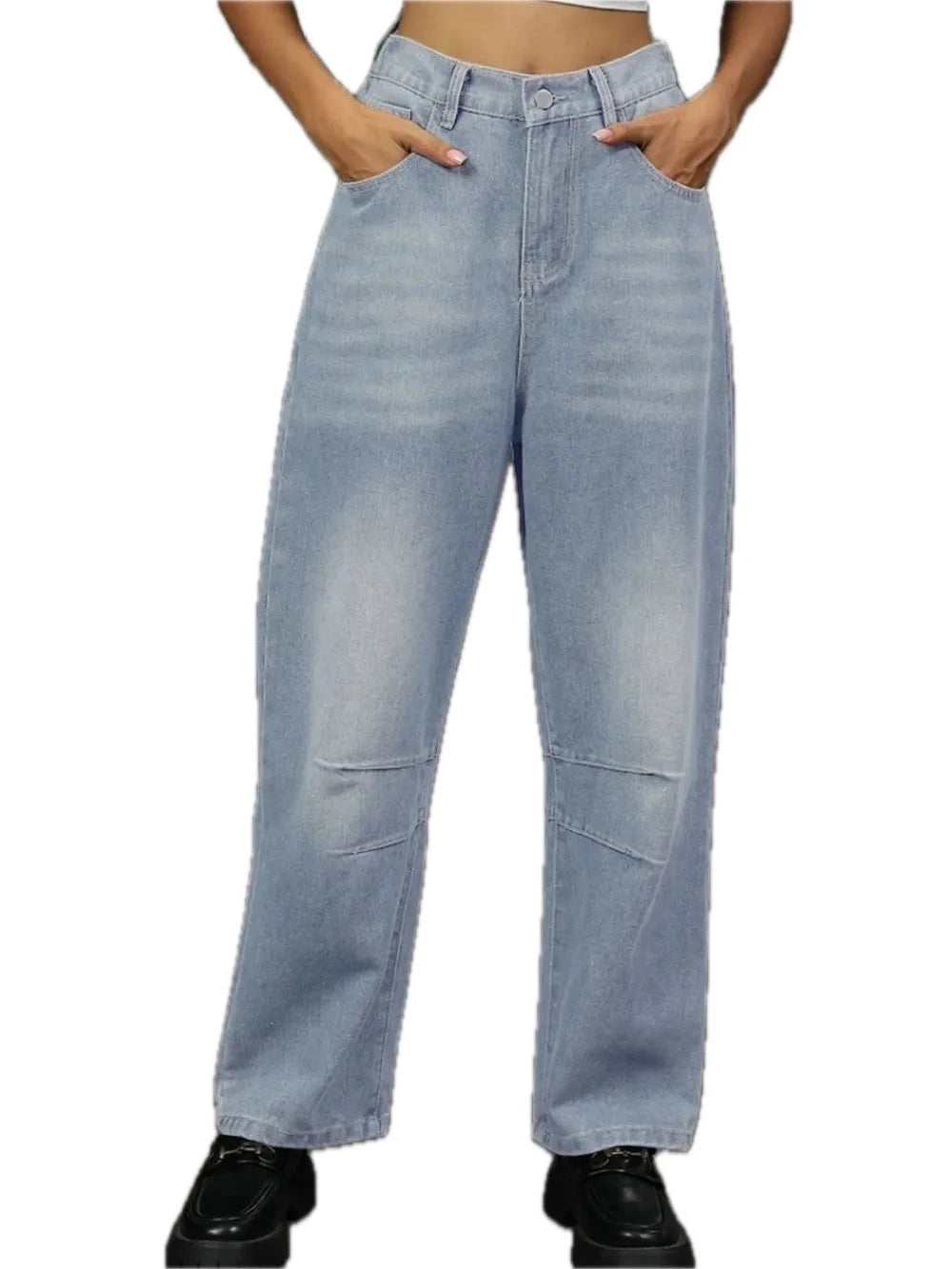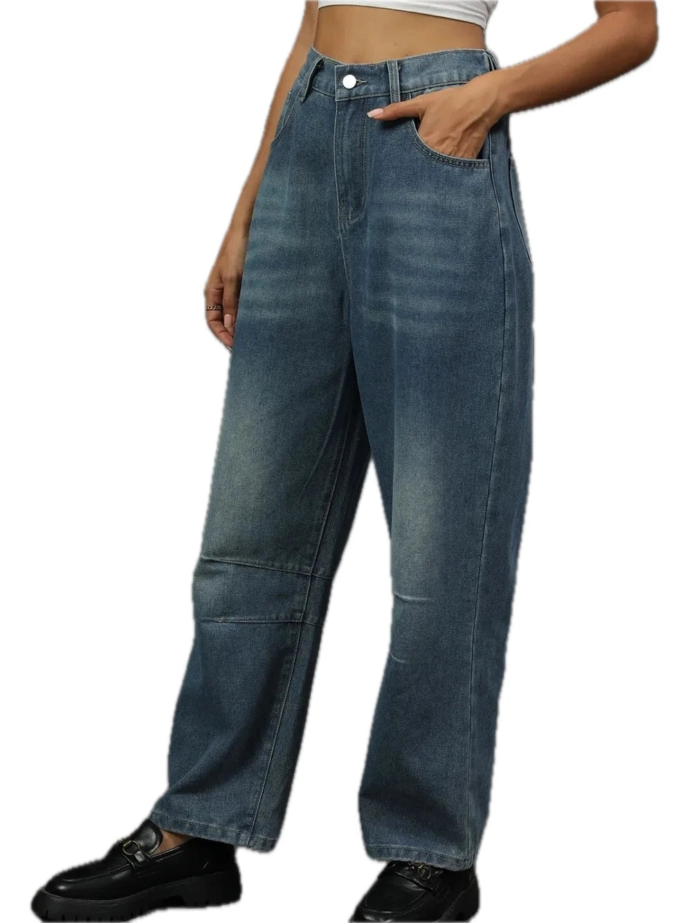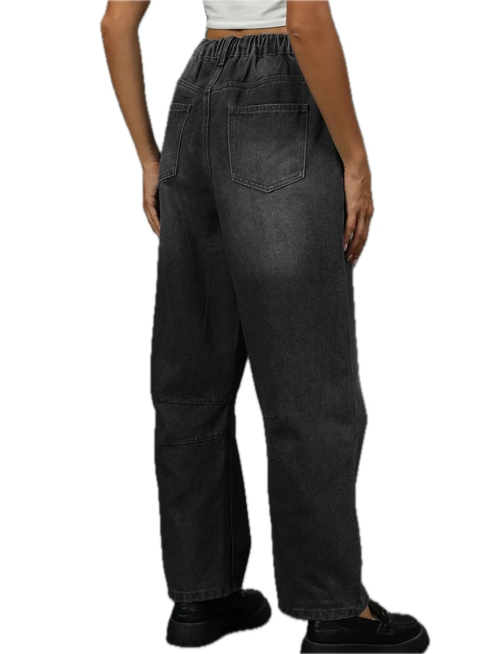 Women Straight Leg Jeans with Half Elastic Waist and Stretch Everyday Denim Pants for Daily Wear Versatile Modern Fit