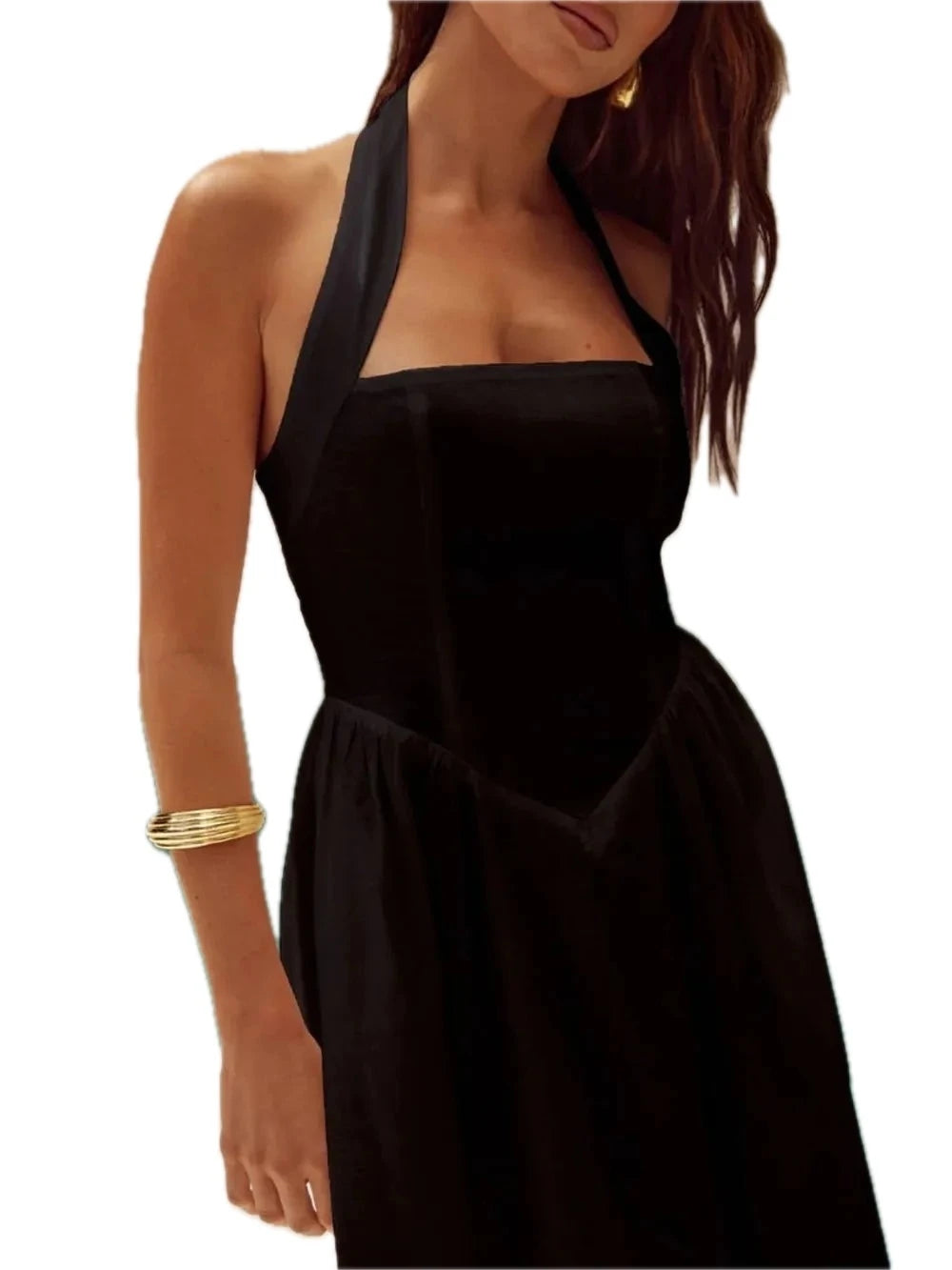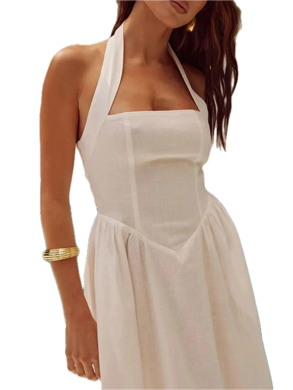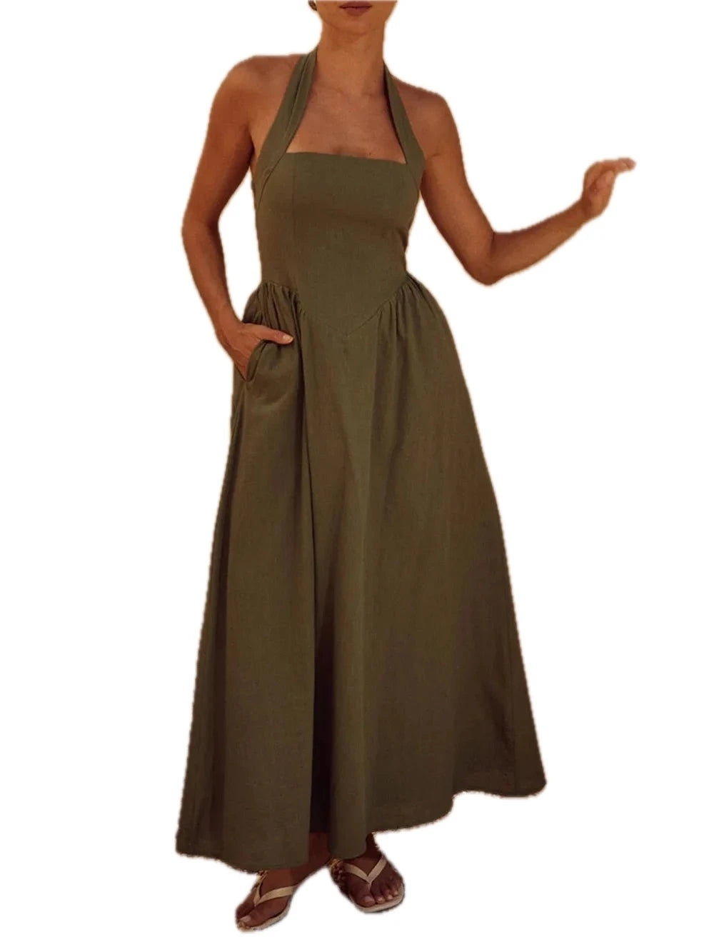 Women's Halter Neck Maxi Dress with Pockets One hundred percent polyester fabric comfy and chic ideal for sunny days