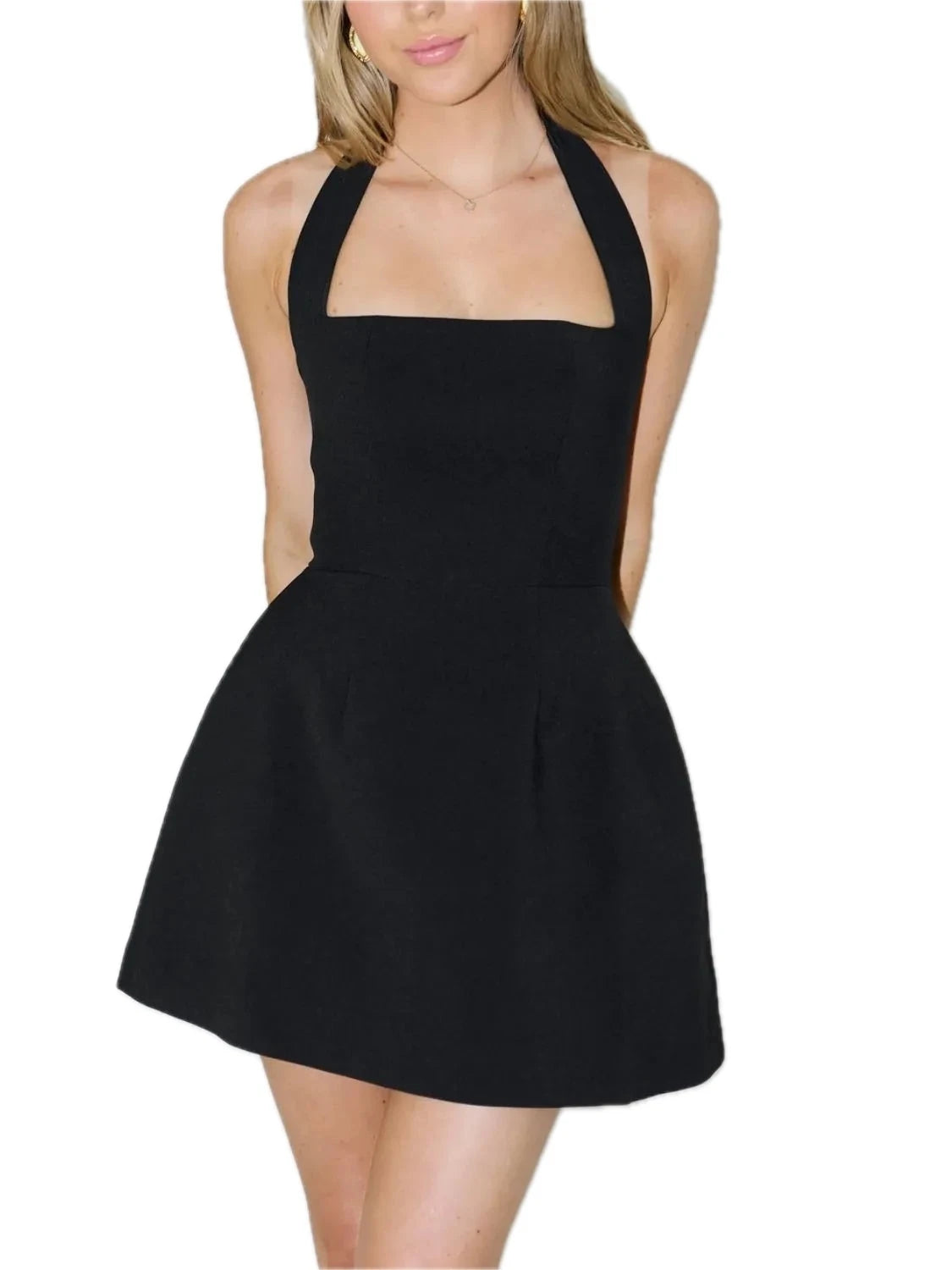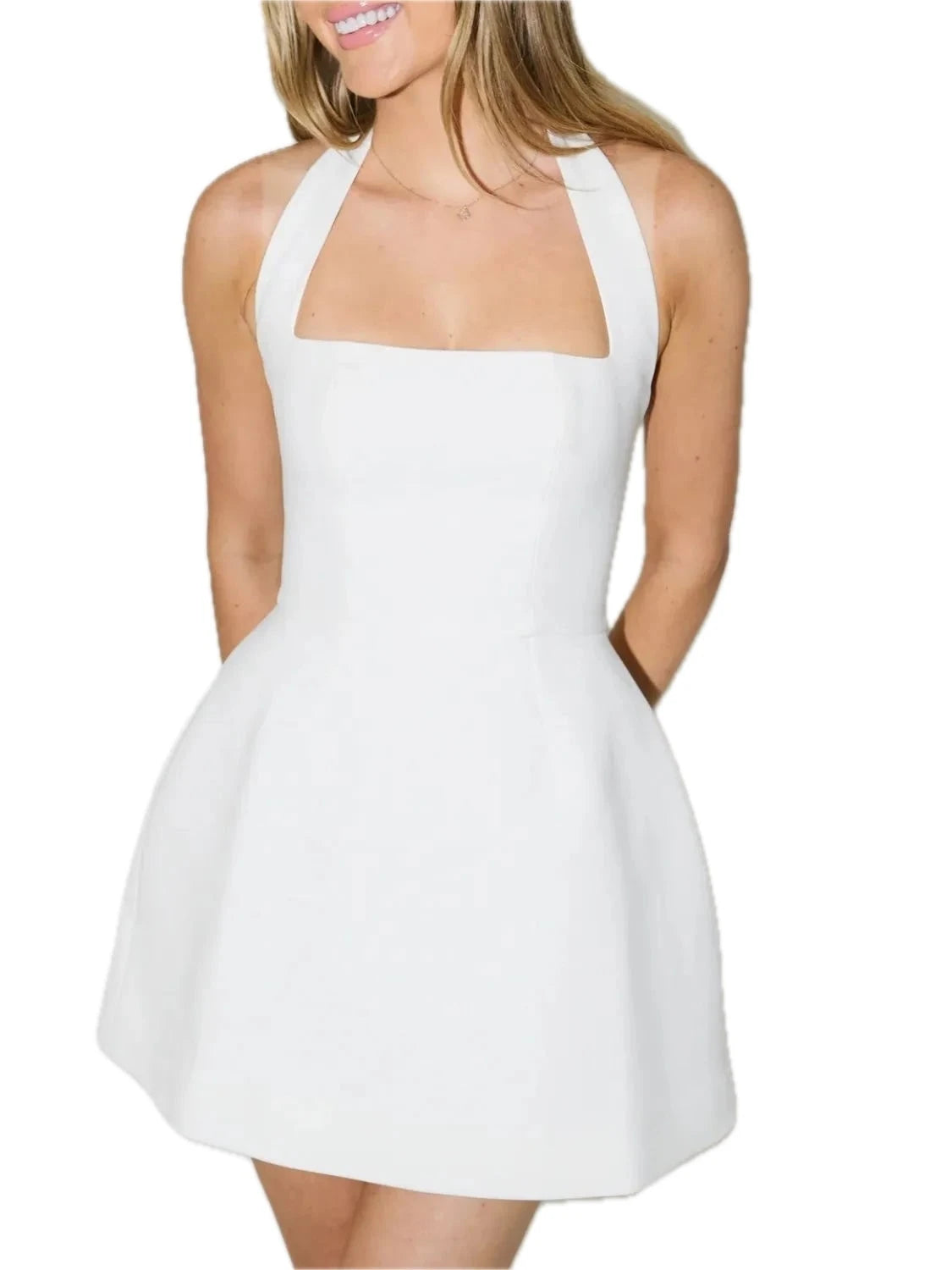 Women's Halter Neck Mini Dress with Slight Stretch and Flattering Fit Made of 95% Cotton and 5% Spandex everyday style