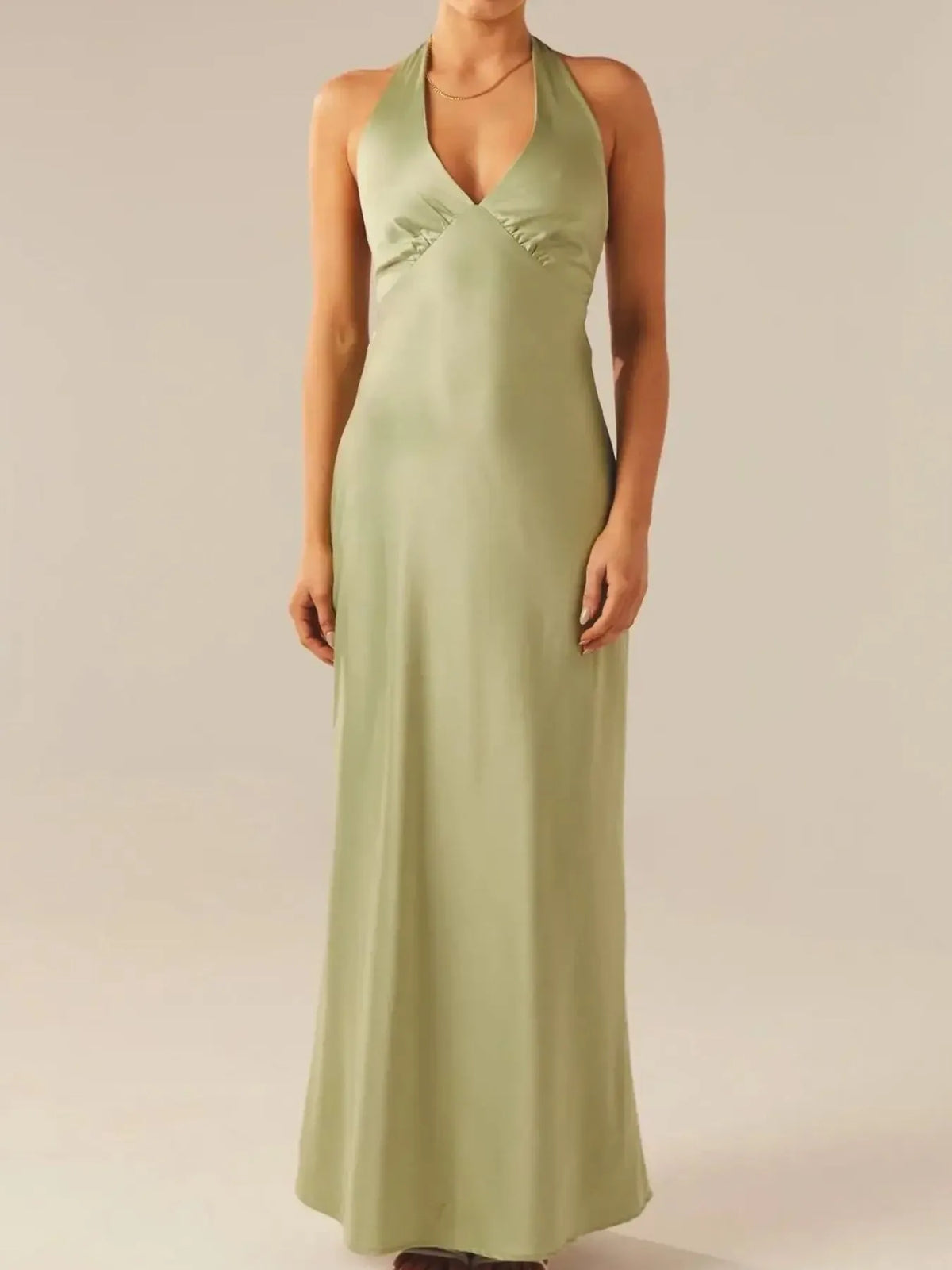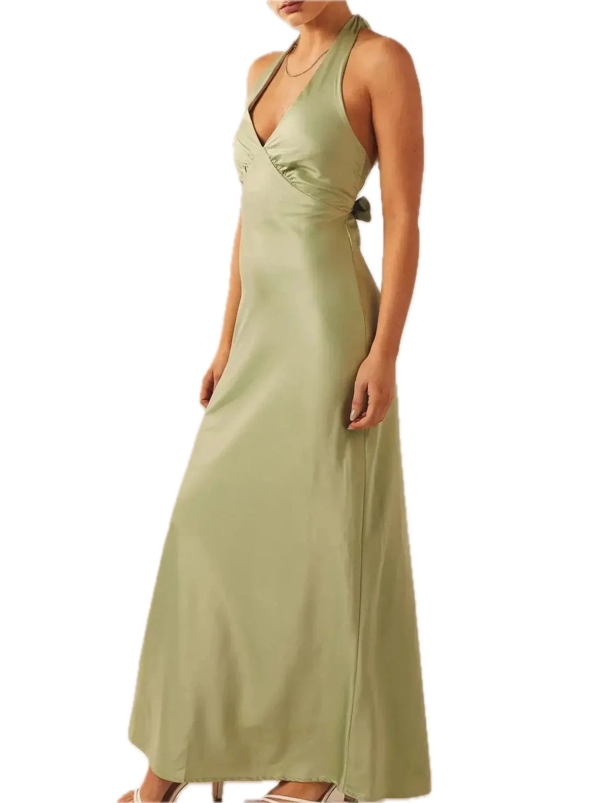 Women's Halter Neck Wrap Maxi Dress with Tie Detail 100% Polyester Lightweight Elegant Summer Flattering Fit Gown
