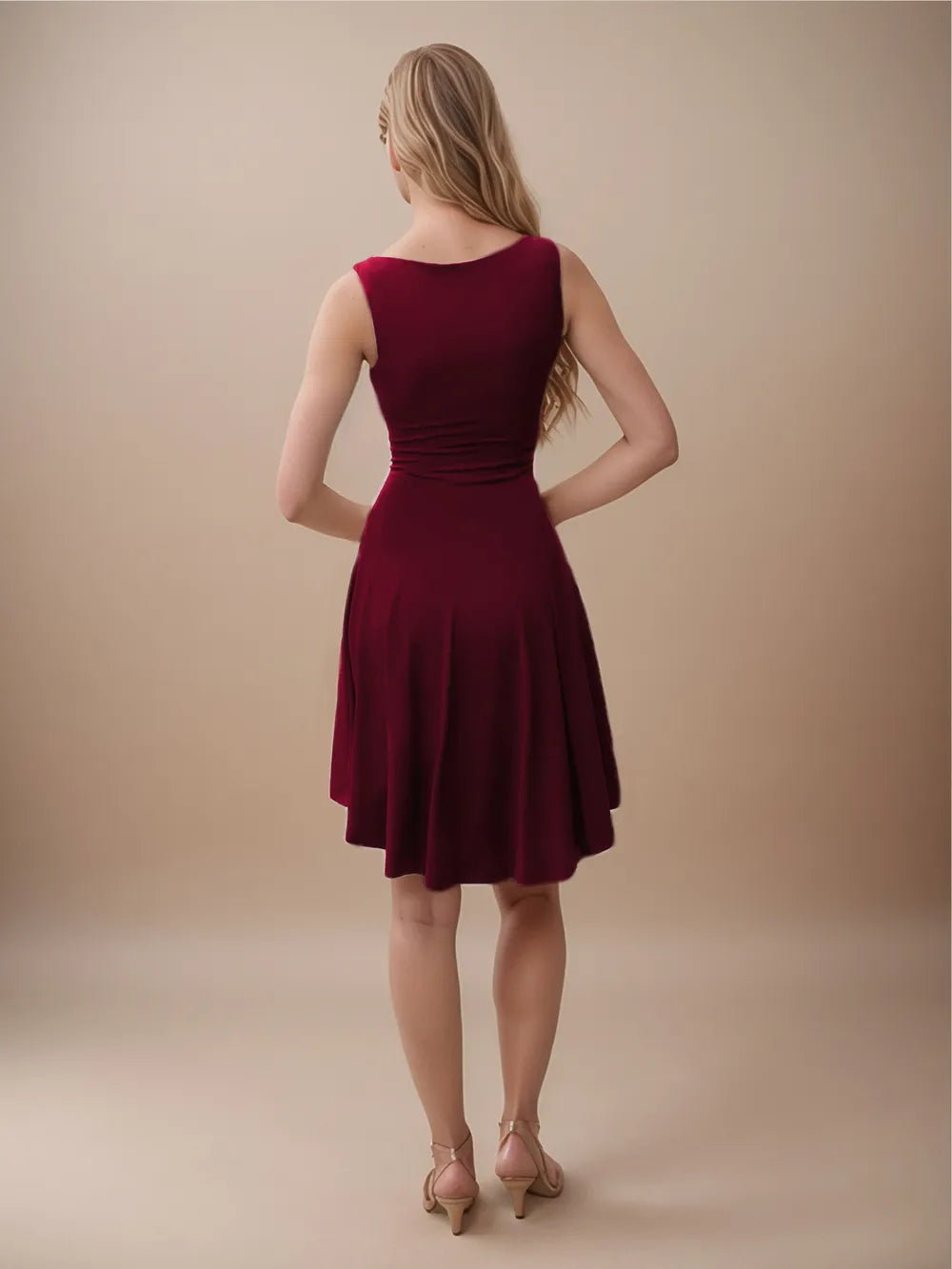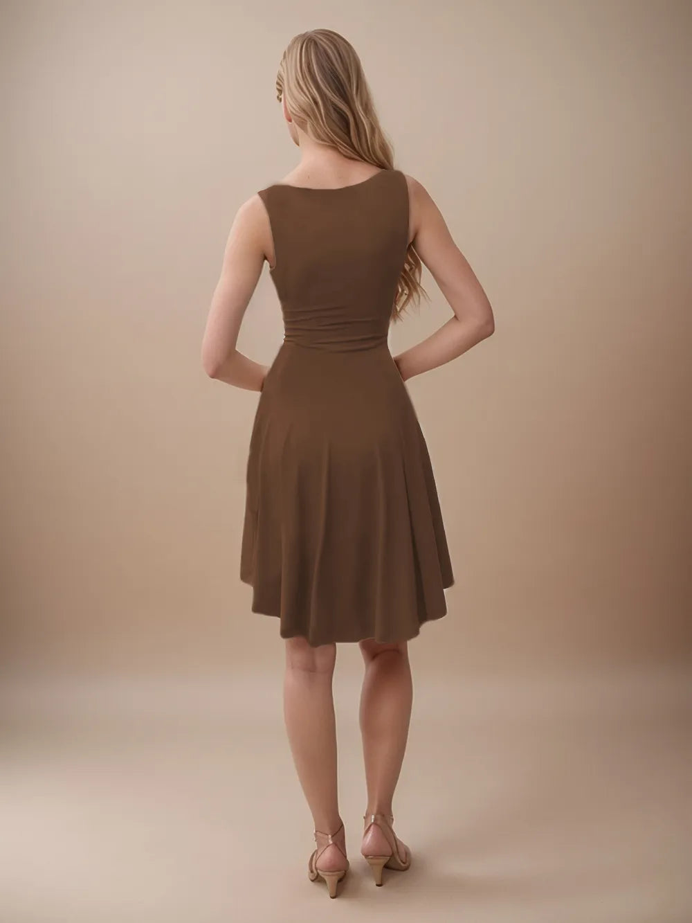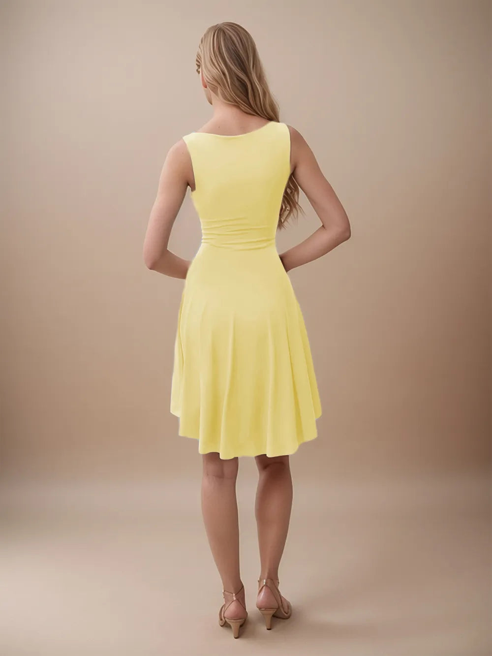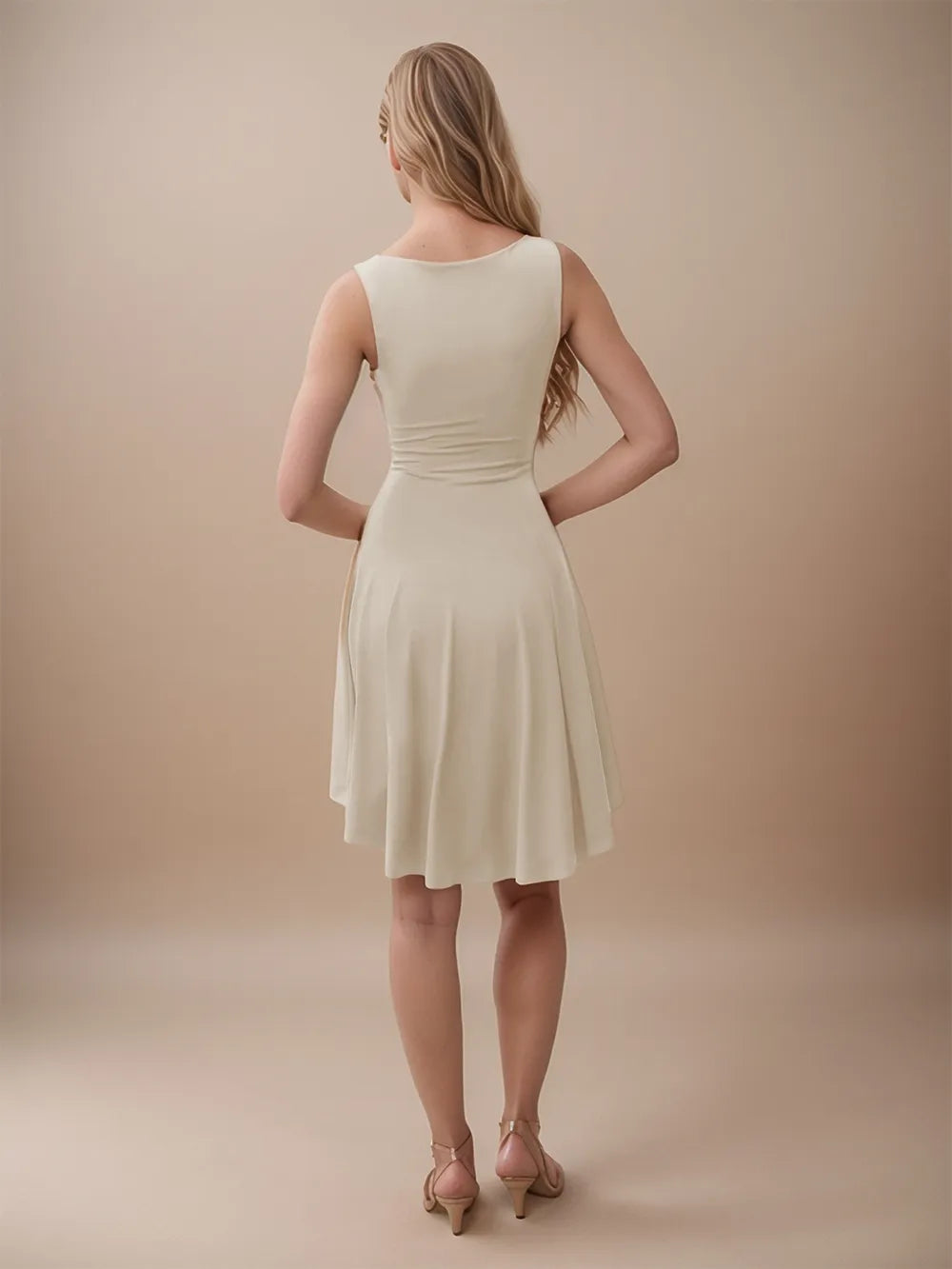 Women's High Low Round Neck Sleeveless Mini Dress with Sheer Overlay and Stretch Fabric 95% Polyester 5% Spandex