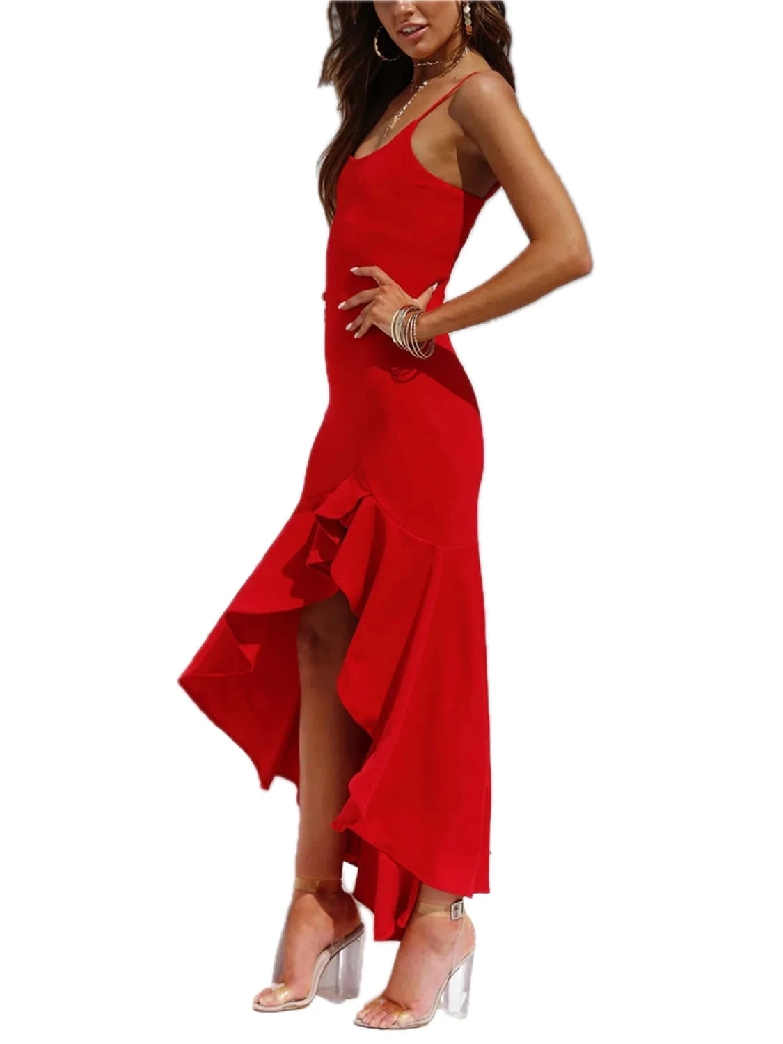 Women's High Low Ruffled Hem Midi Cami Dress with Slit Flowy Fit 100% Polyester Easy Care Machine Wash for Summer