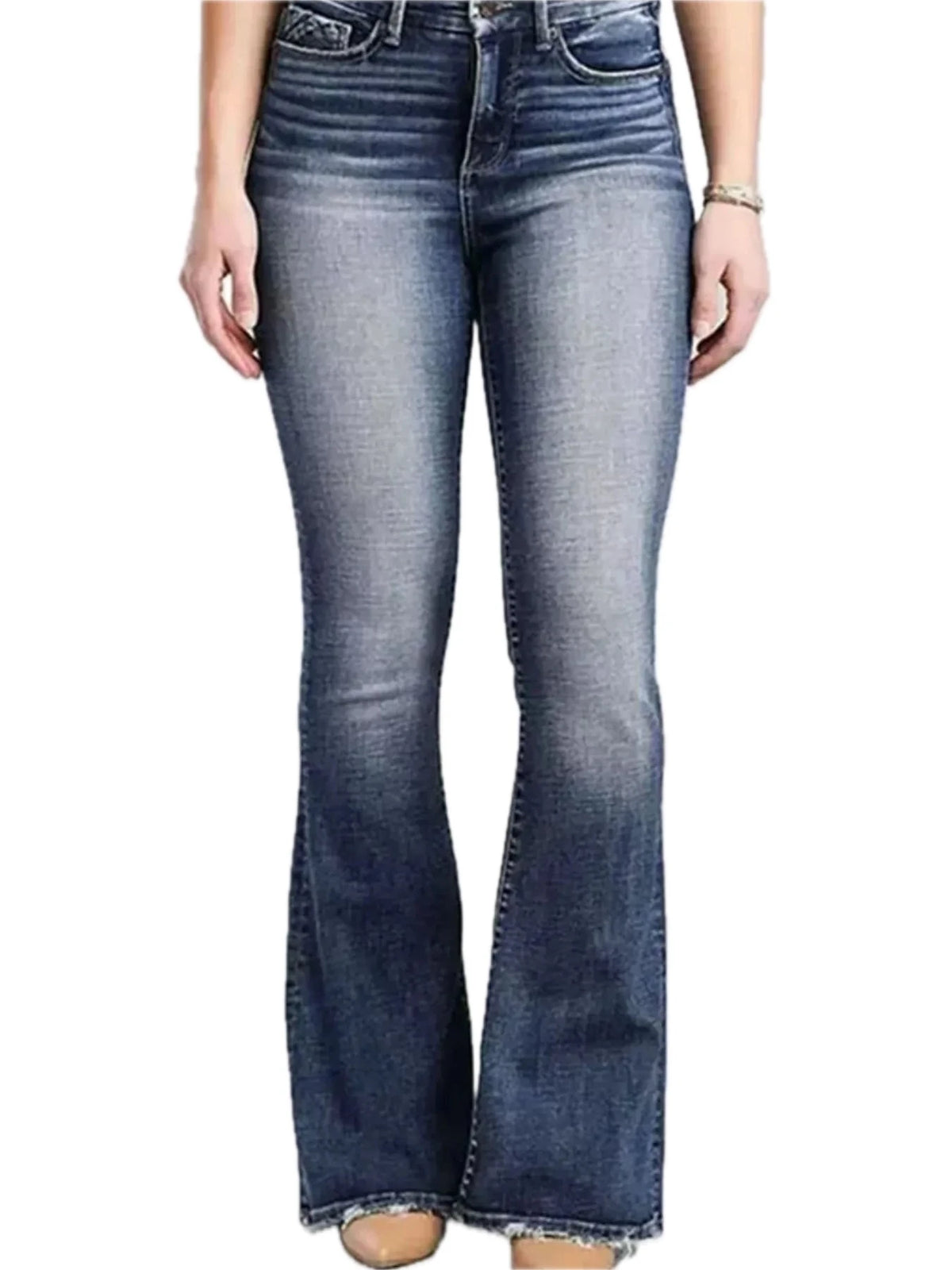 Womens High Rise Flare Jeans Gradient Wash Denim Pants Stretchy For Everyday Casual Wear Modern Versatile Style