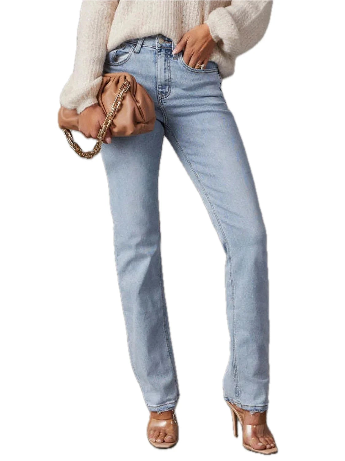 Womens High Rise Jeans with Buttoned Pockets and Highly Stretchy Fabric Durable Everyday Casual Bottoms for Modern Fit