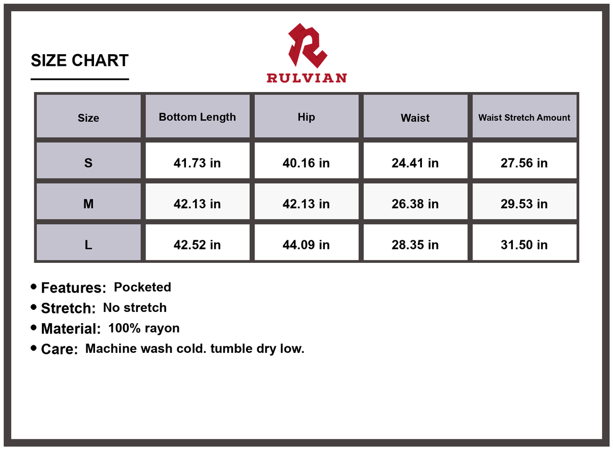S:Waist 24.41 in, Waist Stretch Amount 27.56 in, HIP 40.16 in, Bottom Length 41.73 in