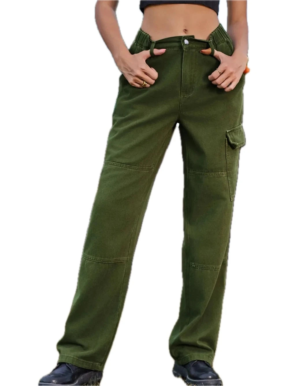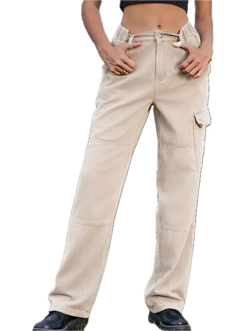 Womens High Waist Cargo Straight Leg Jeans with Pocketed Non Stretch Durable Everyday Casual Outdoor Apparel Comfortable