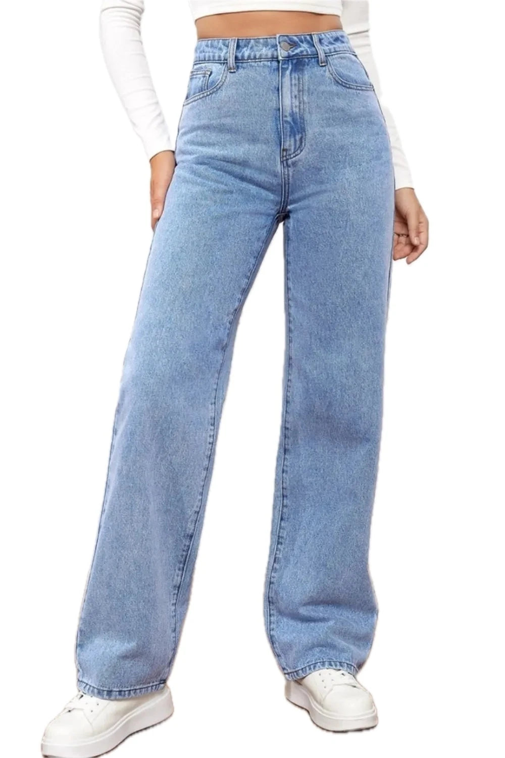 Womens High Waist Straight Leg Jeans with Pockets and Buttoned Closure Non Stretch Durable Classic Fit Casual Wear