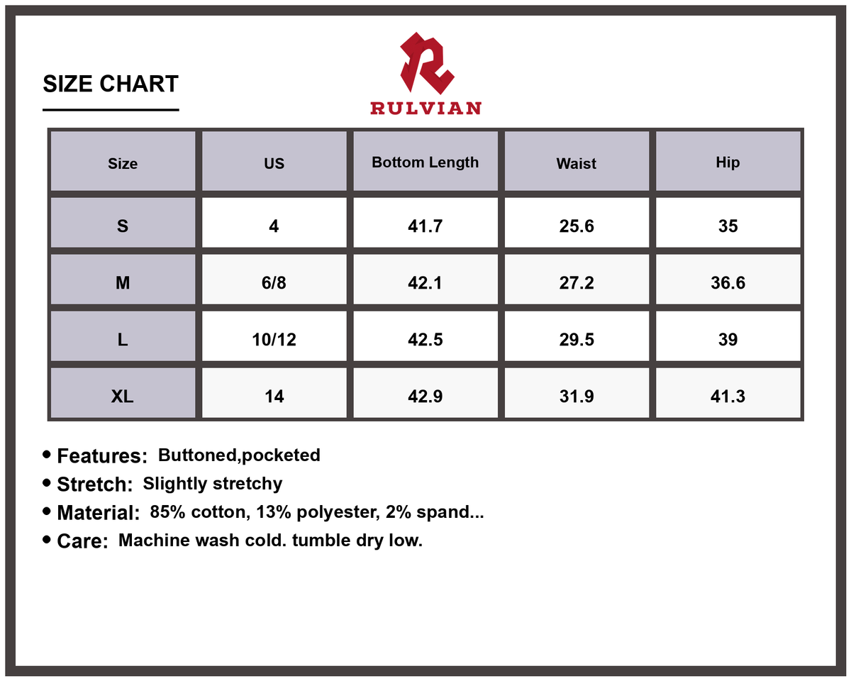 • Material composition:85% cotton, 13% polyester, 2% spandex