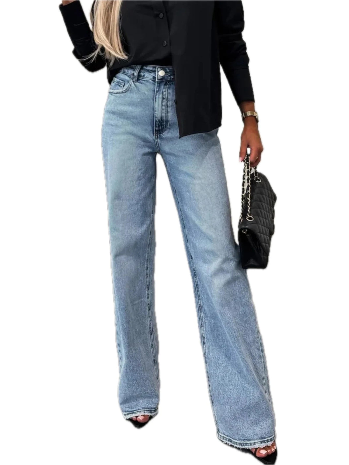 Womens High Waist Raw Hem Jeans Buttoned Pocketed Slightly Stretchy Durable Denim Pants for Casual Everyday Wear