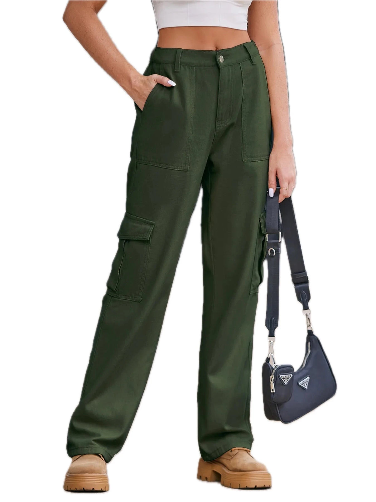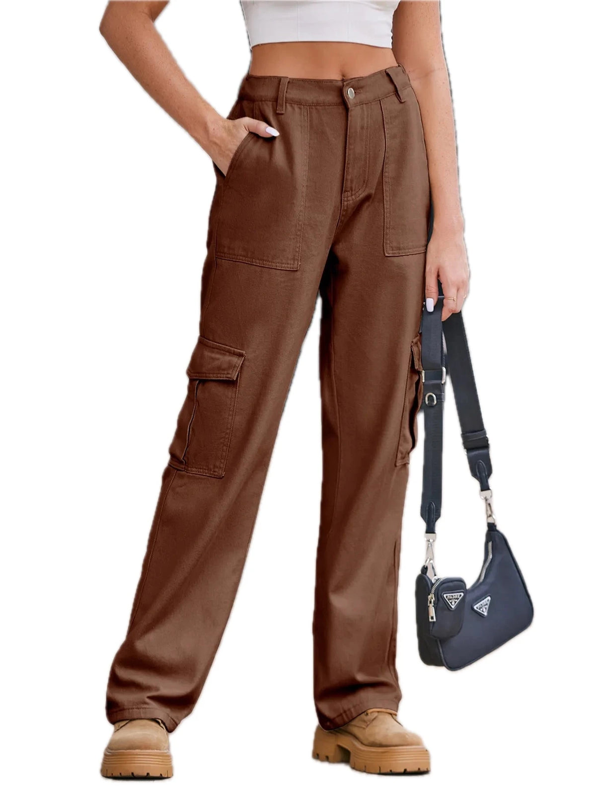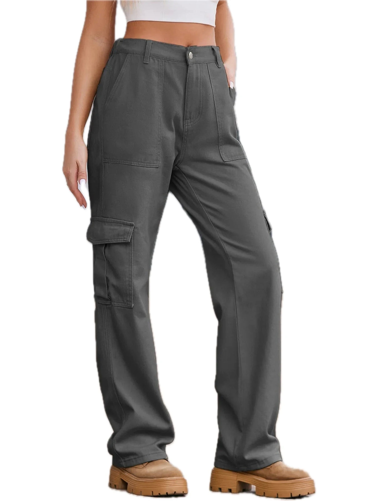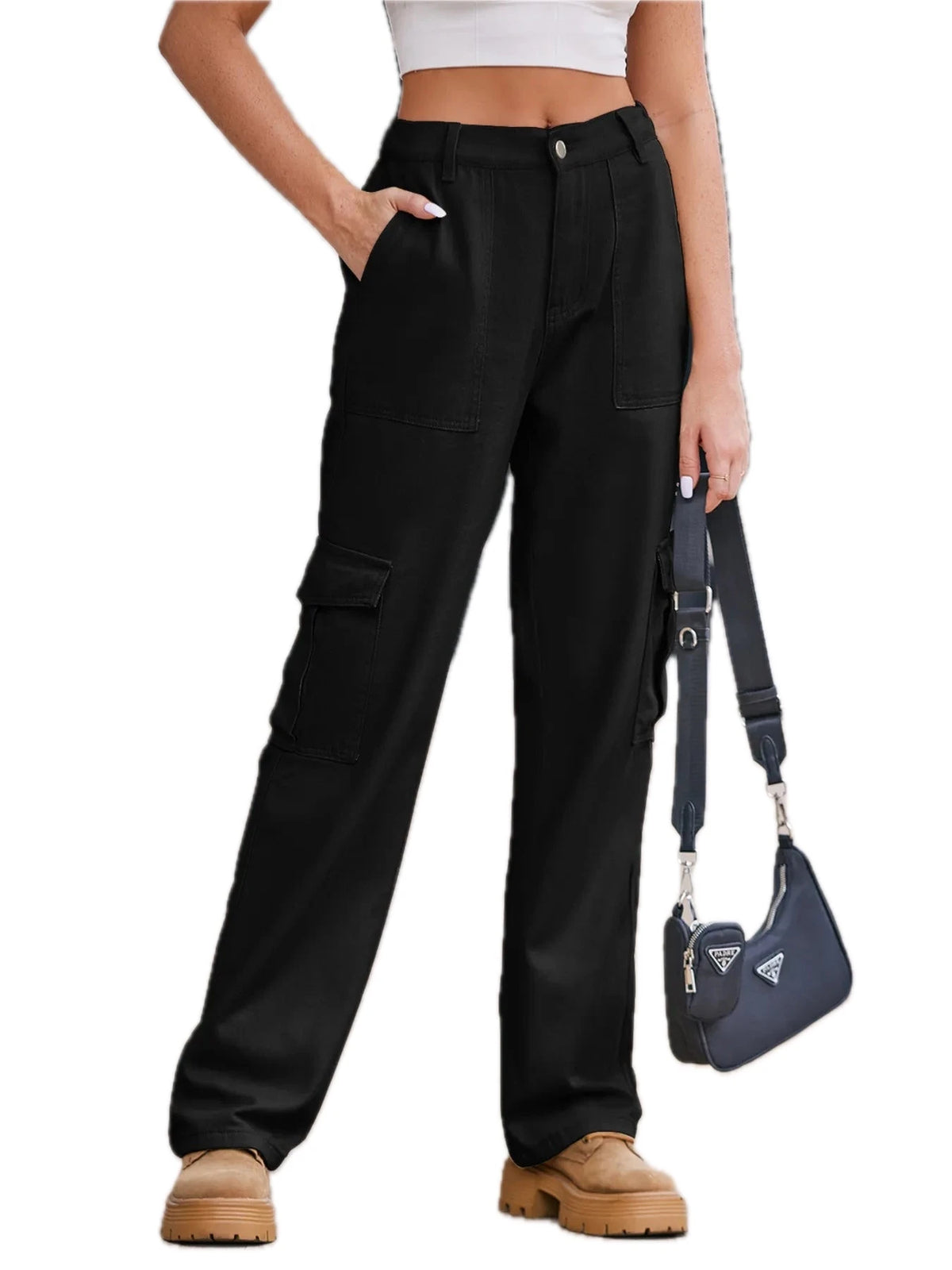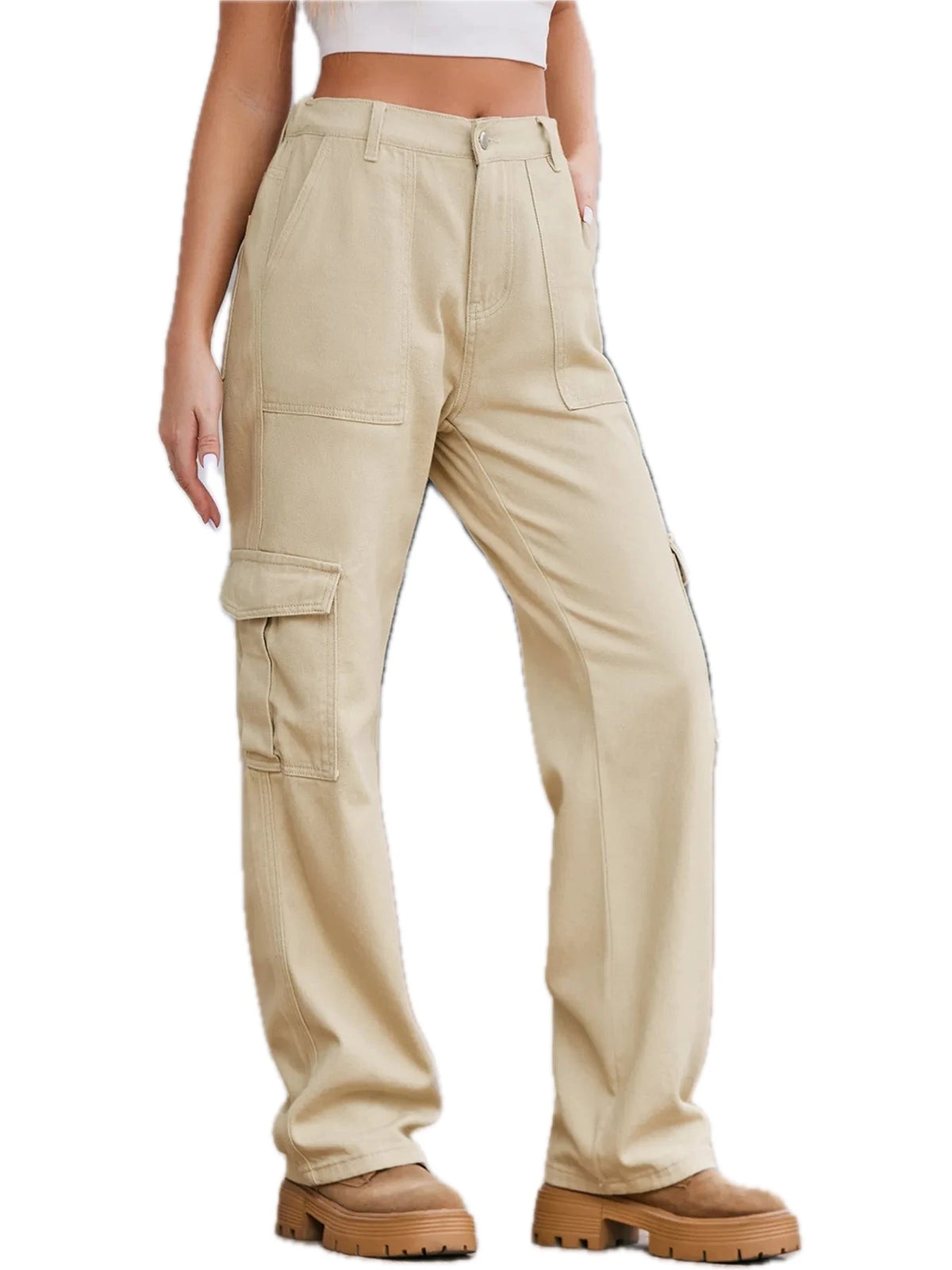 Women High Waisted Cargo Jeans with Functional Pockets Slightly Stretchy Denim Pants for Casual Everyday Wears