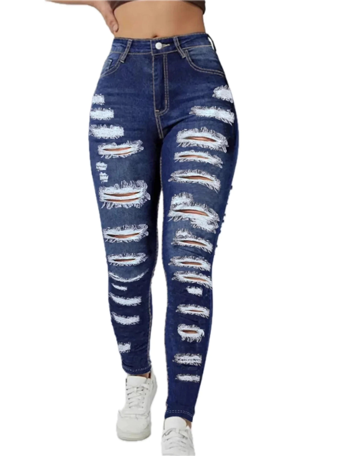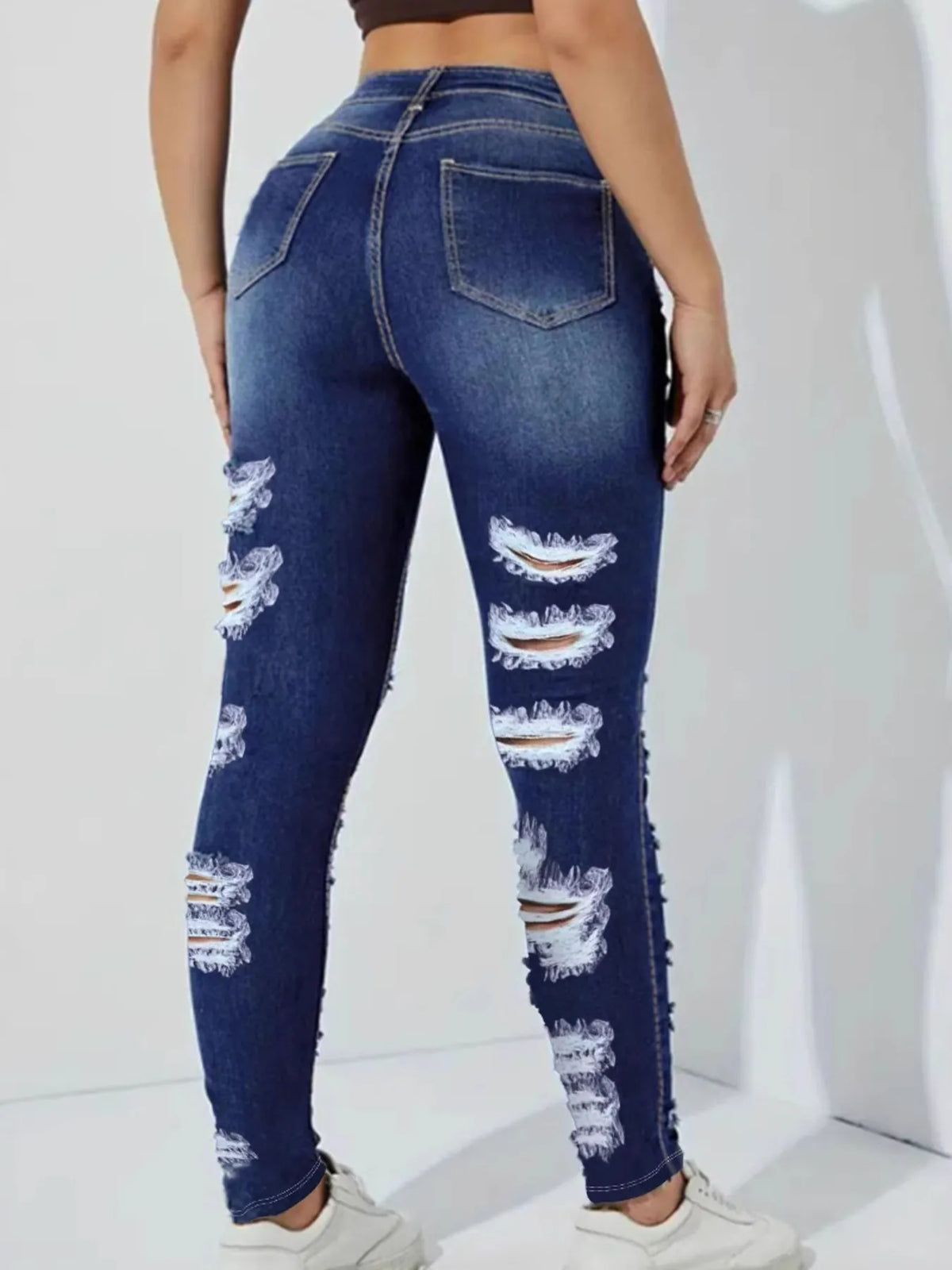 Women High Waisted Distressed Skinny Jeans with Raw Hem Slight Stretch Lightweight Modern Slim Fit Casual Everyday Wear