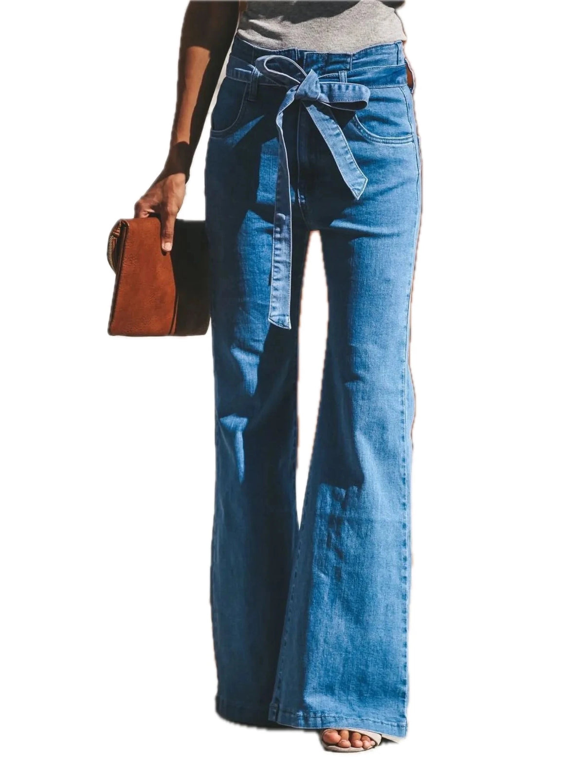 Womens High Waisted Tie Front Flare Jeans with Pockets Stretchy Denim for Casual Everyday Fashion Modern Look Today