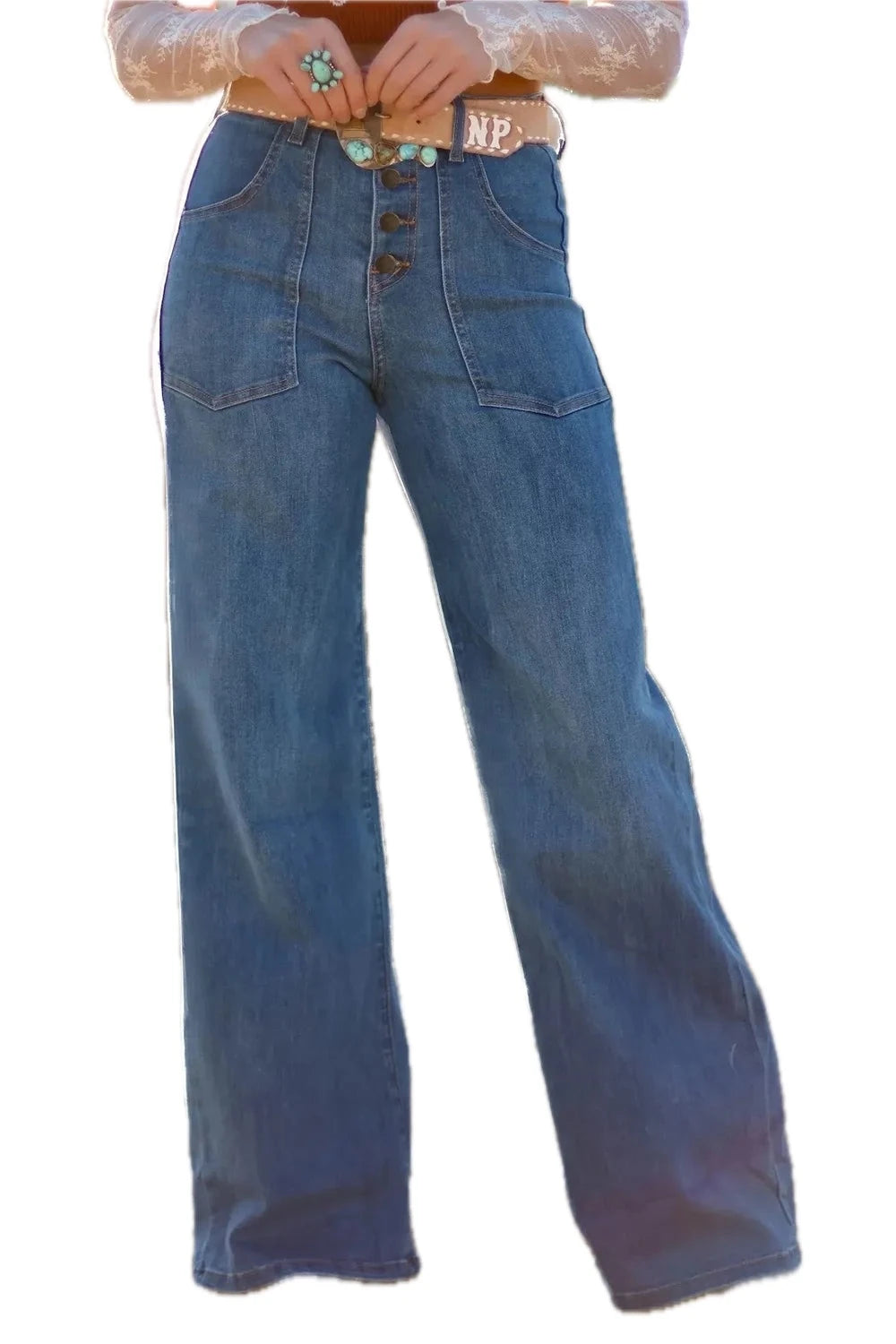 Womens High Waisted Wide Leg Jeans with Button Front and Front Pockets Slightly Stretchy Durable Denim Pants Everyday