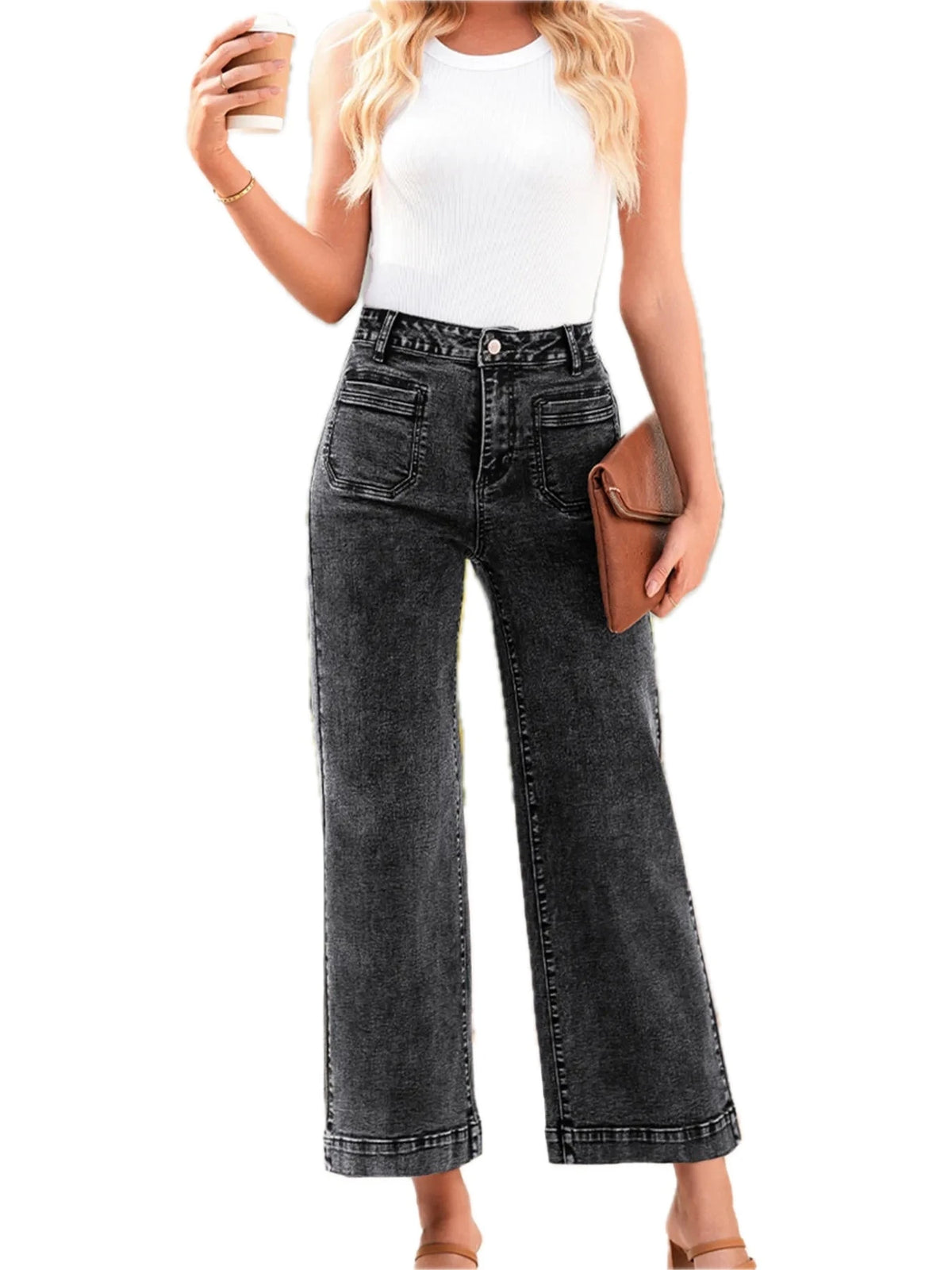 Womens High Waisted Wide Leg Washed Denim Jeans with Functional Pockets for Everyday Casual Wardrobe Essential Wear