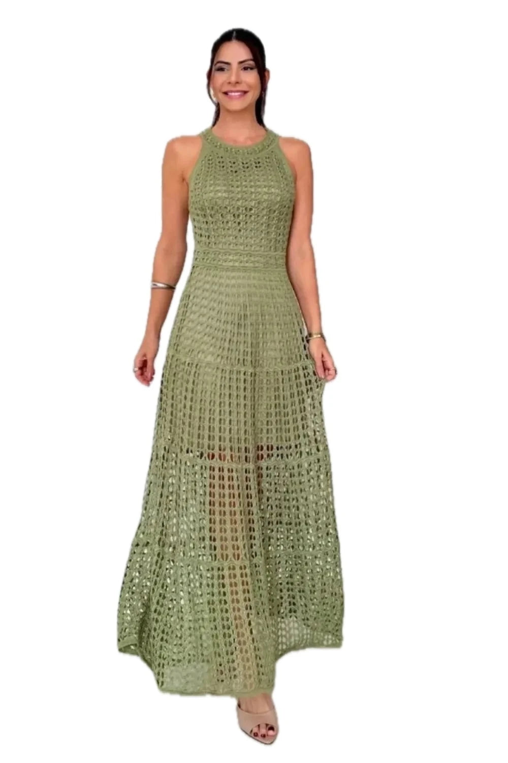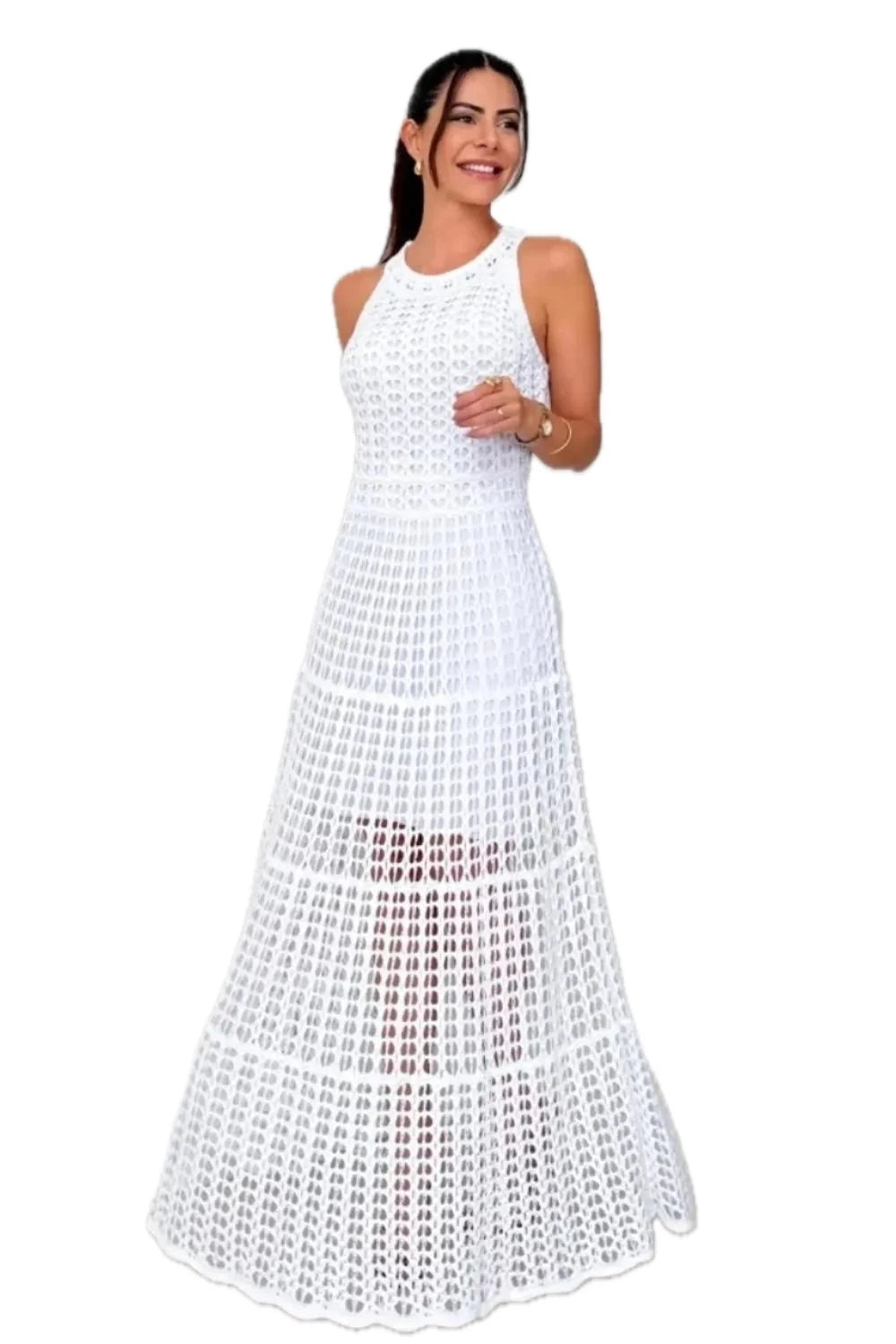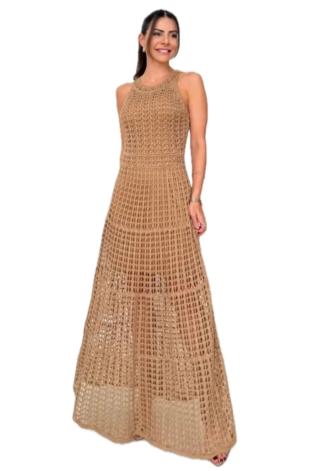 Women's Hollowed Out Sleeveless Maxi Dress Cutout Sheer Details Elegant Floor Length 100% Polyester Fabric Ideal Events