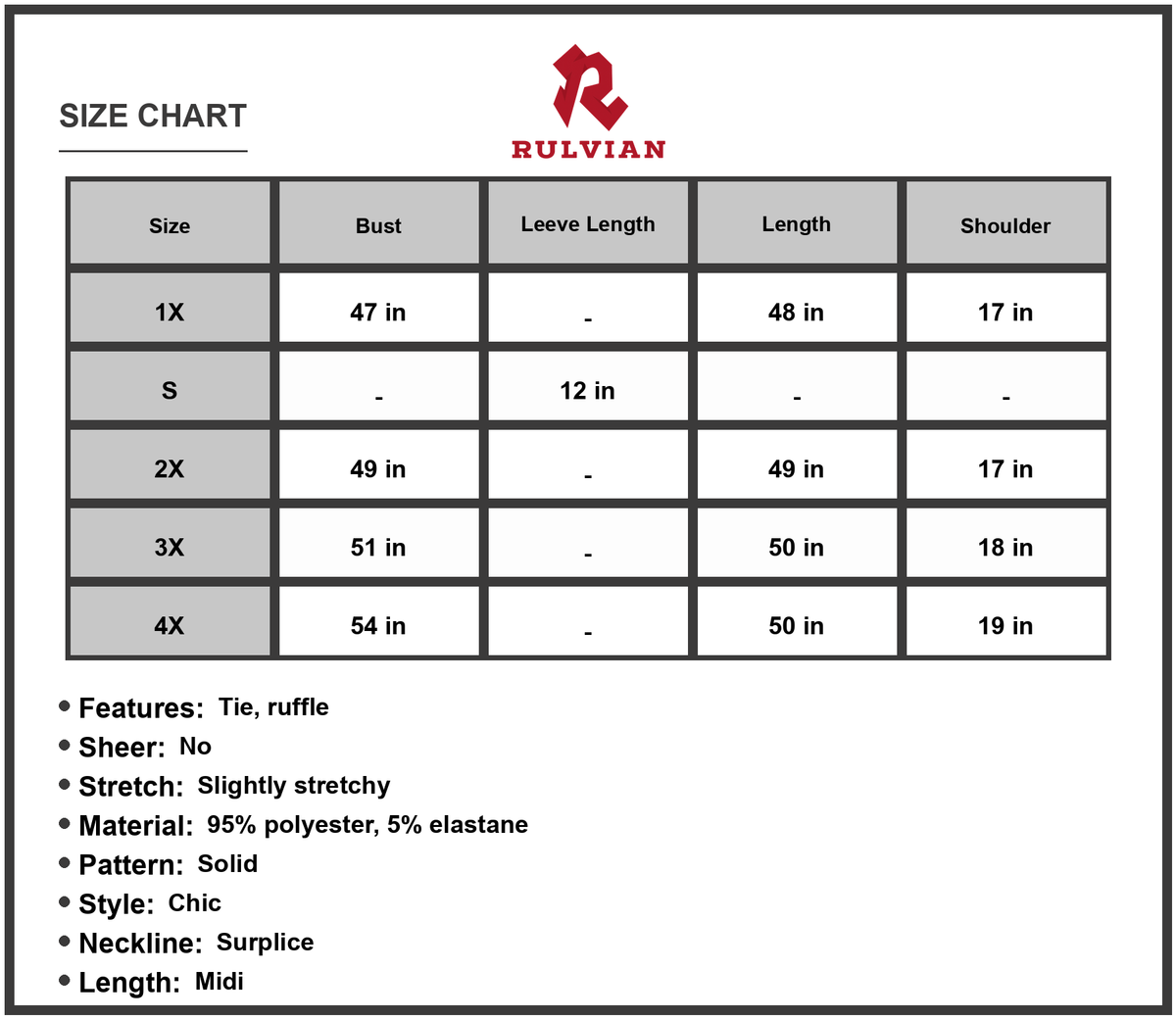 1X: length 48 in, shoulder 17 in, bust 47 in, waist 34-51 in, sleeve length 10 in