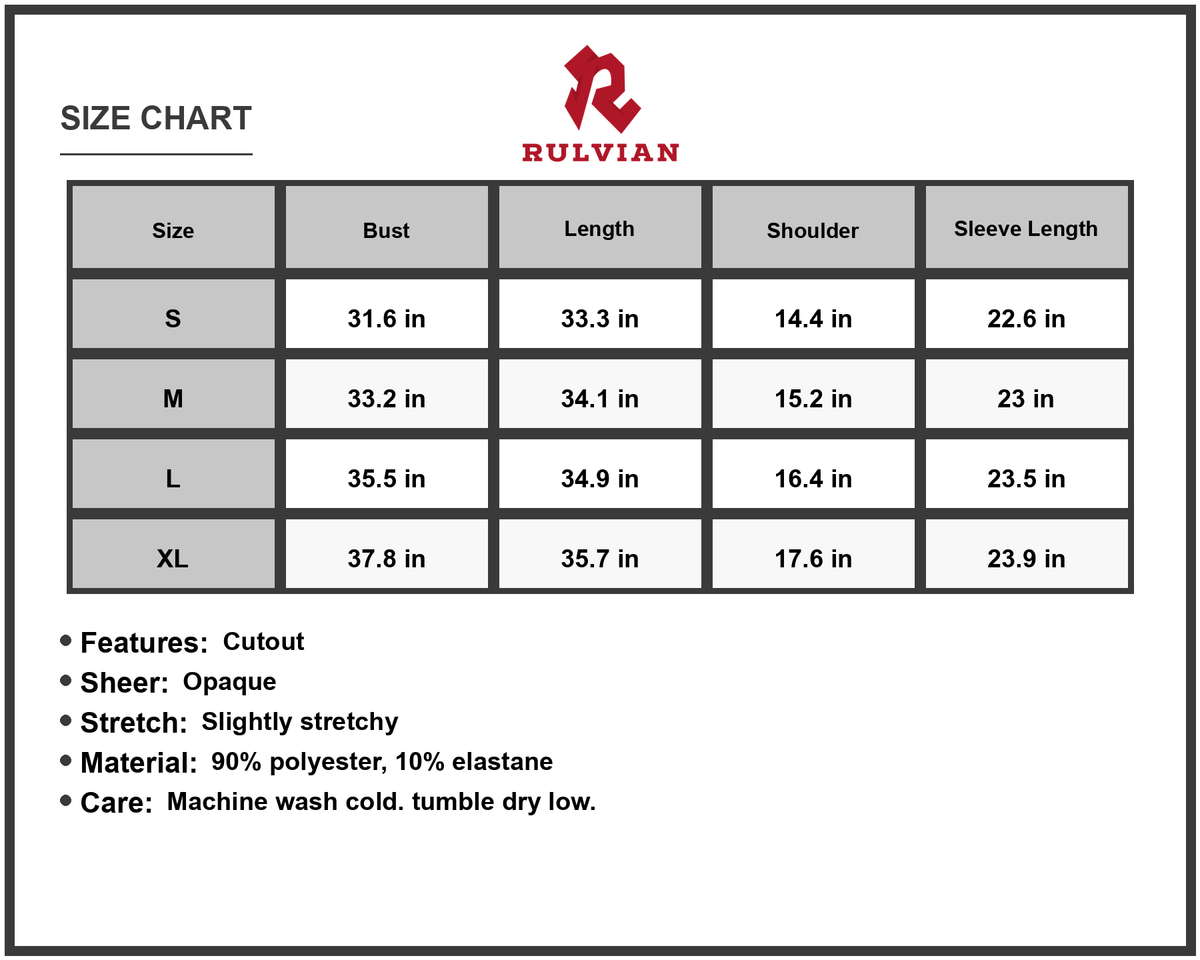 S: bust 31.6 in, length 33.3 in, sleeve length 22.6 in, shoulder 14.4 in