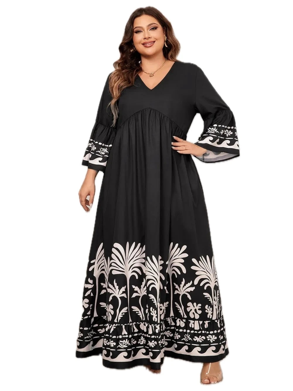 Women's Plus Size Printed V Neck Long Sleeve Maxi Dress 95% Polyester and 5% Elastane Stretch Fabric Soft Feel