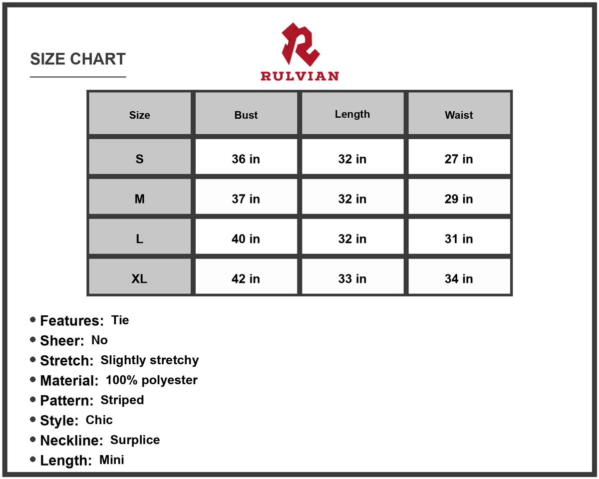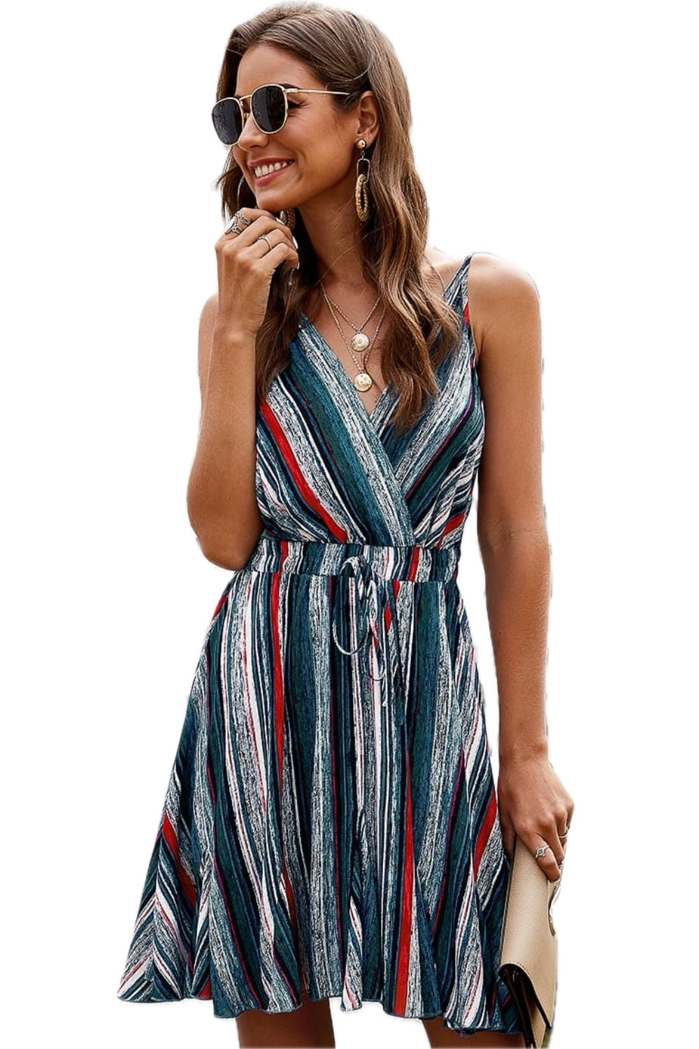 Women's Striped Surplice Neck Spaghetti Strap Mini Dress with A Line Hem Perfect for Day into Night Wear 100% Polyester