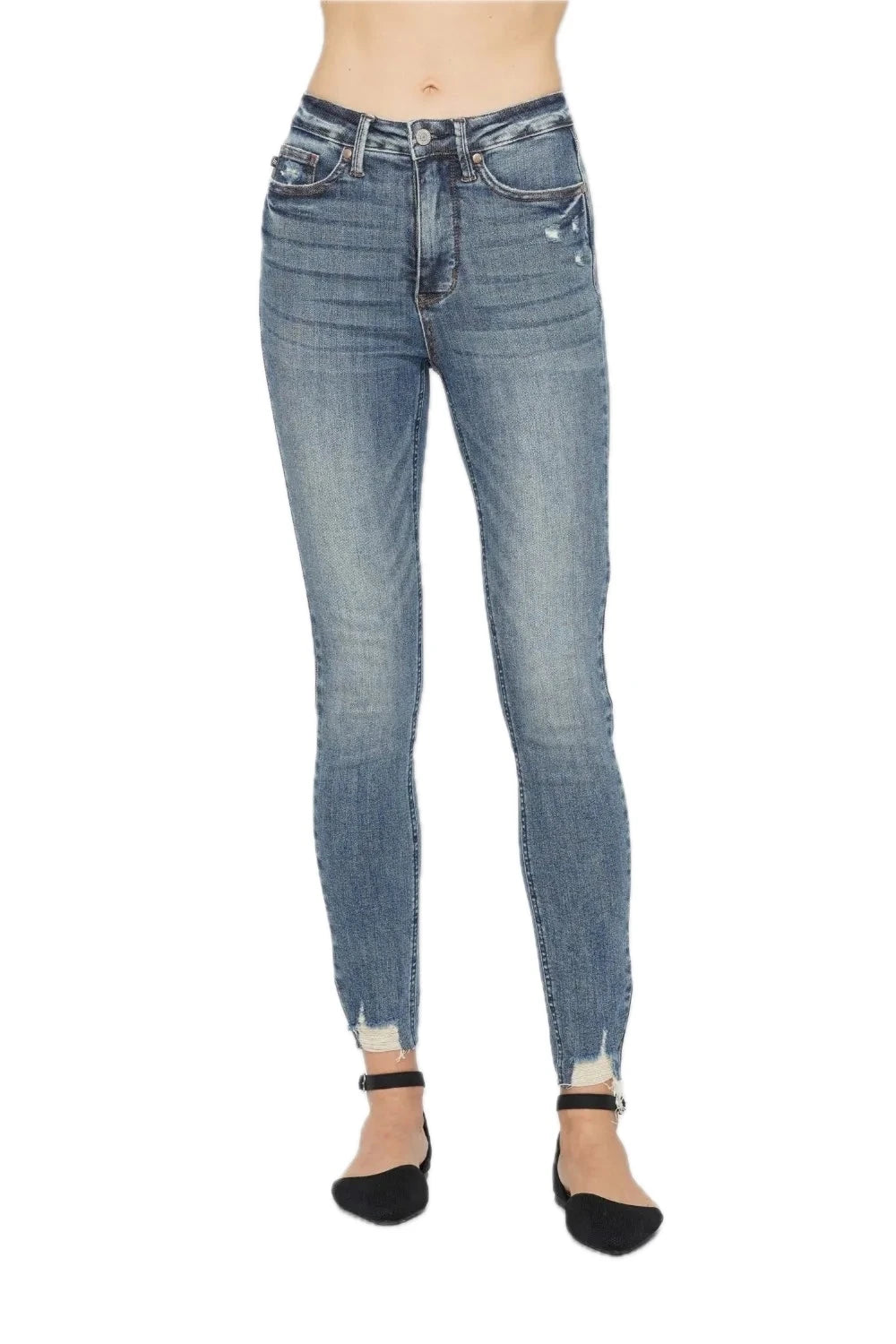 The Tummy Control Vintage Wash Hem Destroy Skinny Jeans are a versatile and stylish choice featuring a vintage wash and distressed hem detailing. Designed with tummy control technology, these jeans offer a flattering and slimming fit. The skinny silhouette is modern and can be dressed up or down for various occasions. With the distressed hem adding a touch of edgy flair, these jeans are perfect for adding a trendy element to your outfit. Embrace a confident and fashionable look with these Tummy Control Vintage Wash Hem Destroy Skinny Jeans that blend comfort with on-trend style.