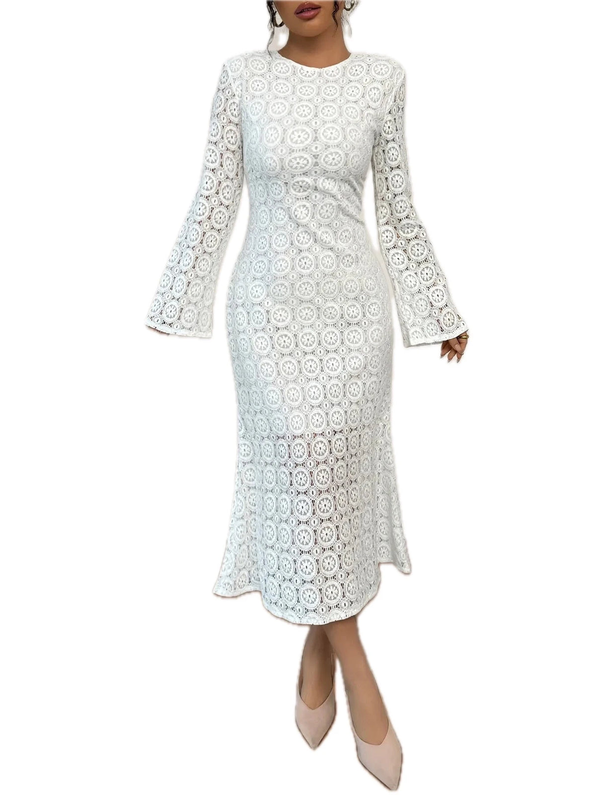 Elegant Women's Lace Long Sleeve Midi Dress with Zipper Stretch Partially Lined 70% viscose 30% polyamide Imported