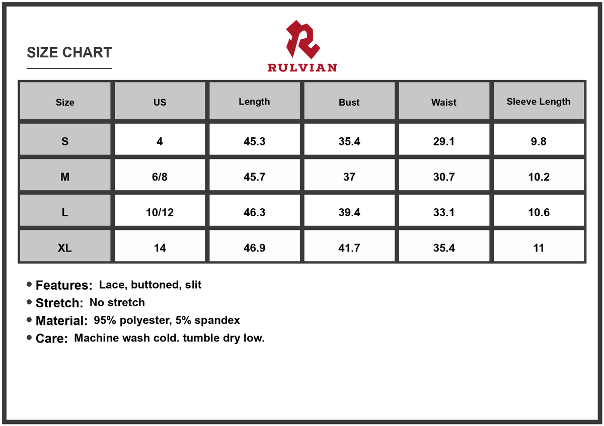 Size | US | Length | Bust | Waist | Sleeve Length |