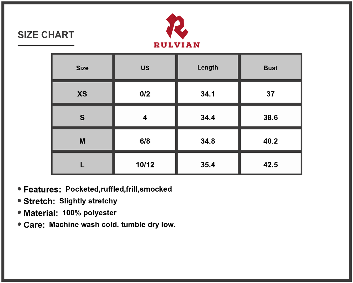 - Features:Pocketed,Ruffled,Frill,Smocked