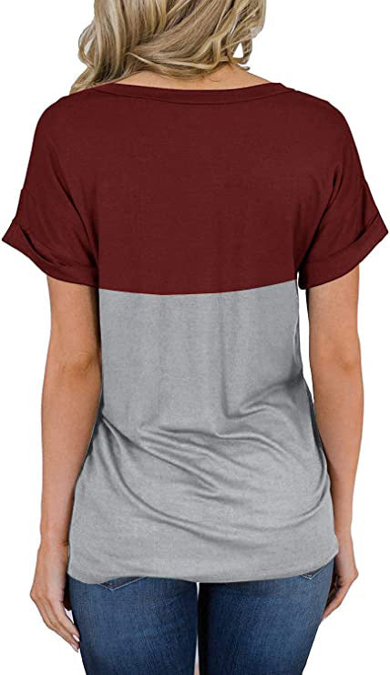 - Design: V-neck, short sleeves, relaxed loose silhouette