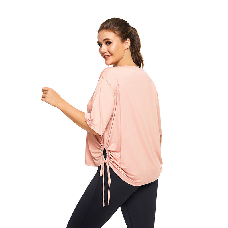 This top helps you stay dry and comfortable during workouts with its moisture-wicking milk-silk fabric. The breathable, skin-friendly material, combined with a round neckline and short sleeves, supports full range of motion for yoga flows, cardio sessions, and everyday activities. The pink color adds a versatile, easy-to-match option for both gym looks and casual wear.