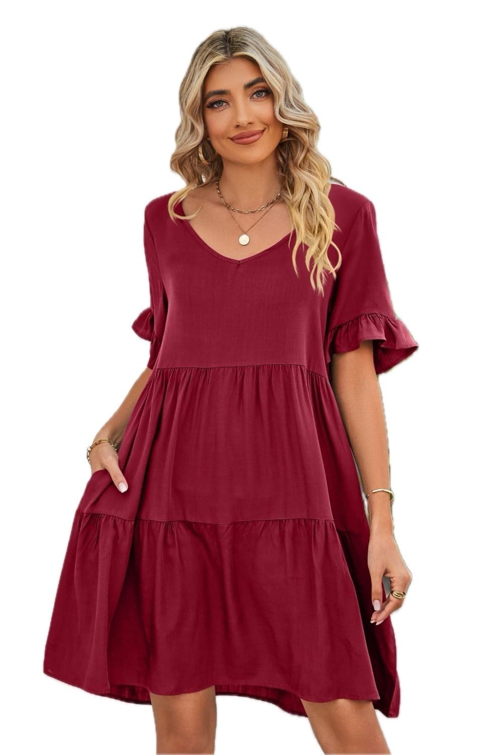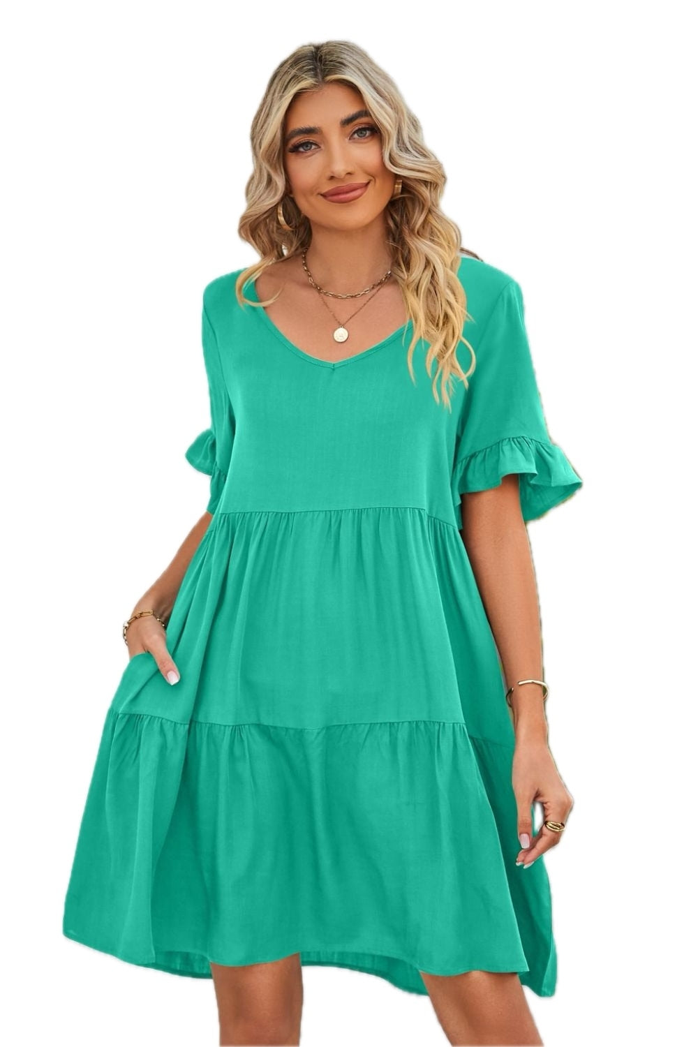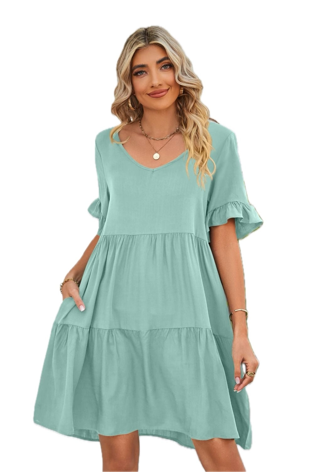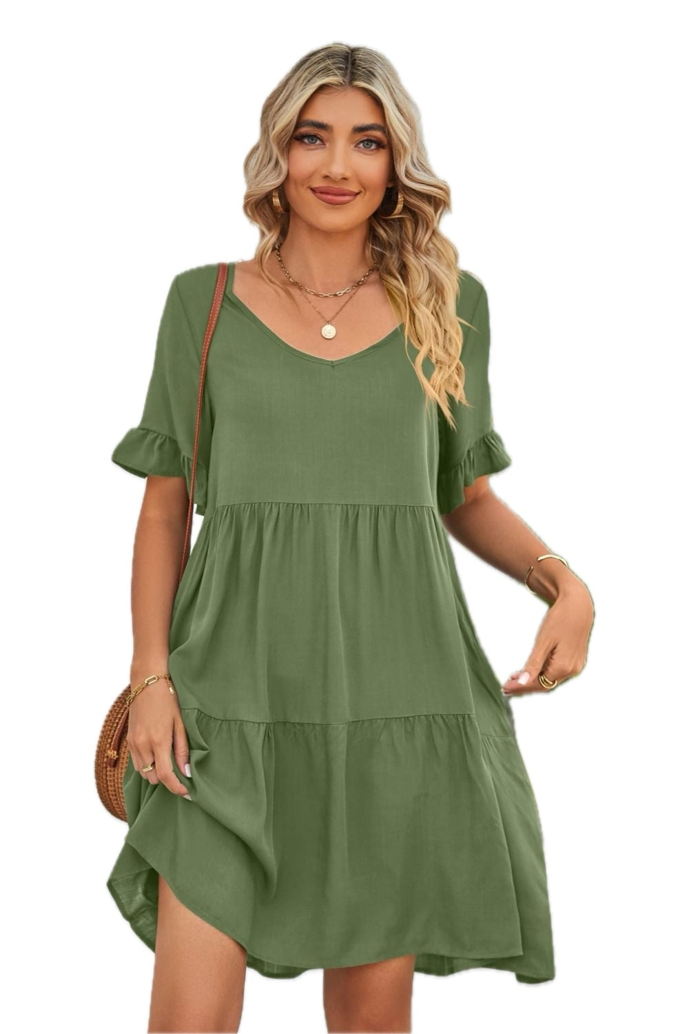 Women's Mandy V Neck Flounce Sleeve Tiered Dress Knee Length Elegant Chic Choice for Any Daytime Occasion 100% rayon