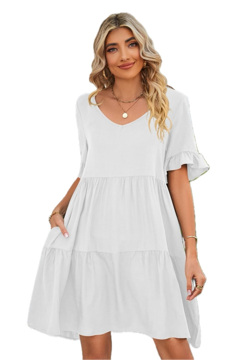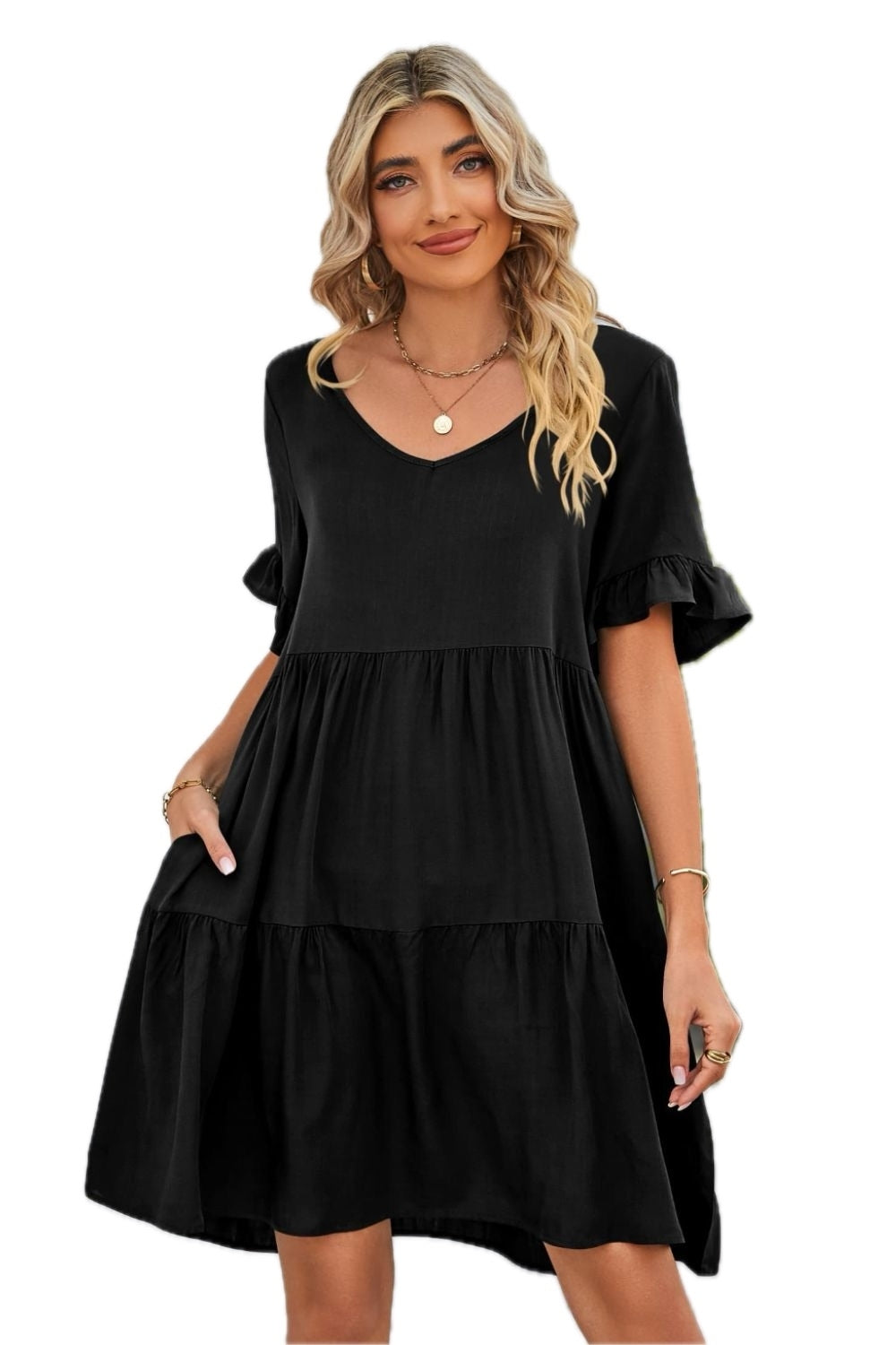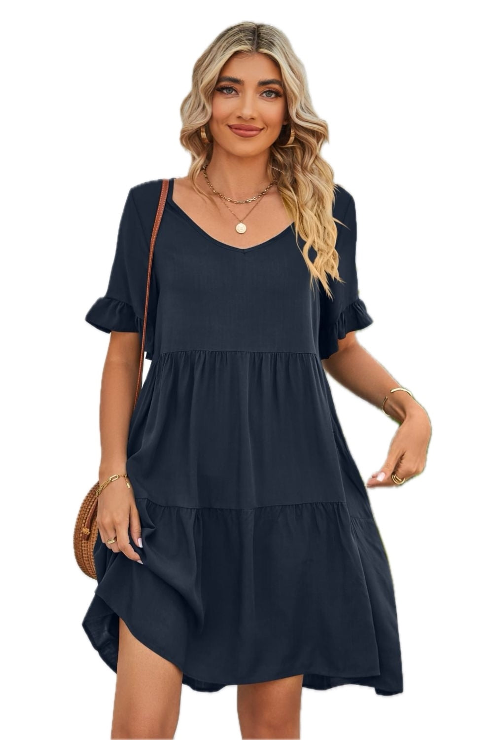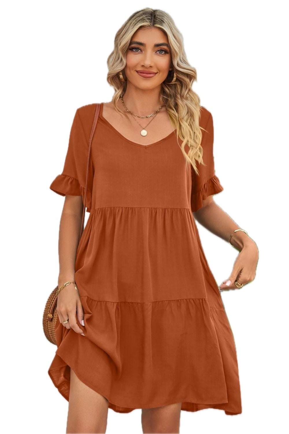 Women's Mandy V Neck Flounce Sleeve Tiered Dress Knee Length Elegant Chic Choice for Any Daytime Occasion 100% rayon