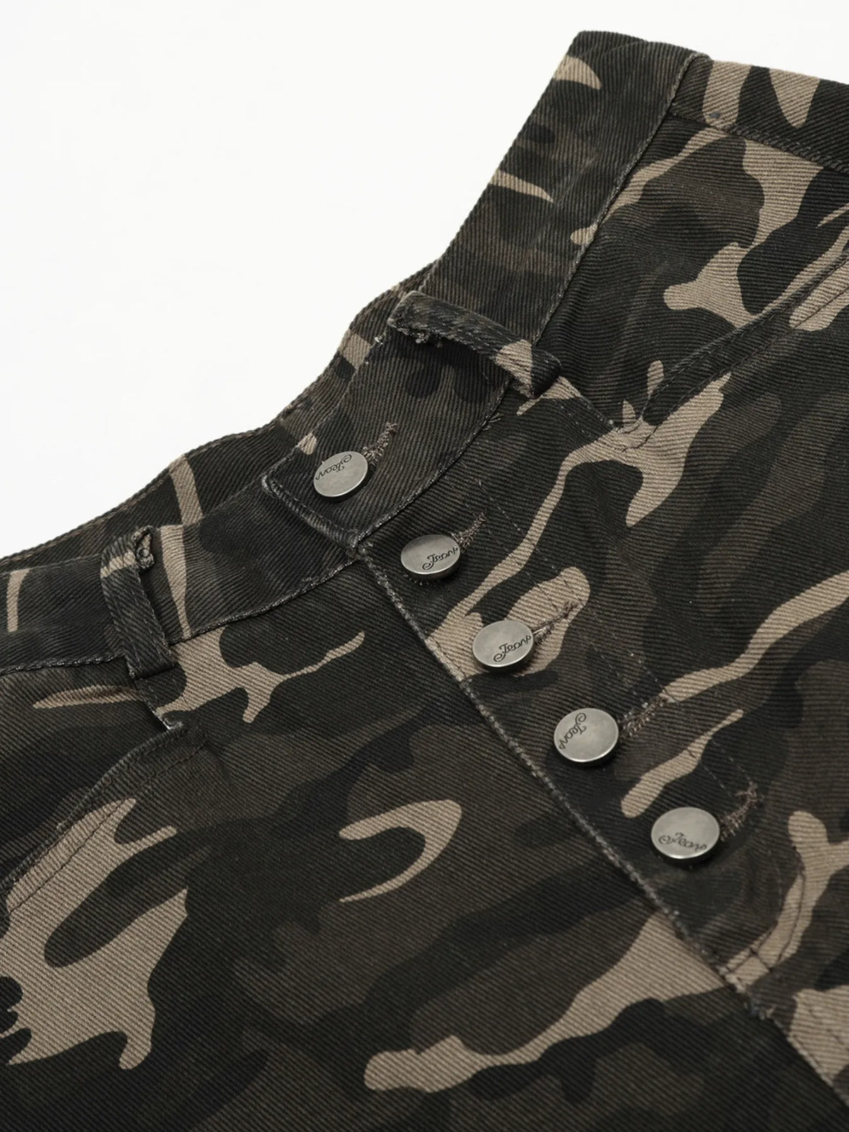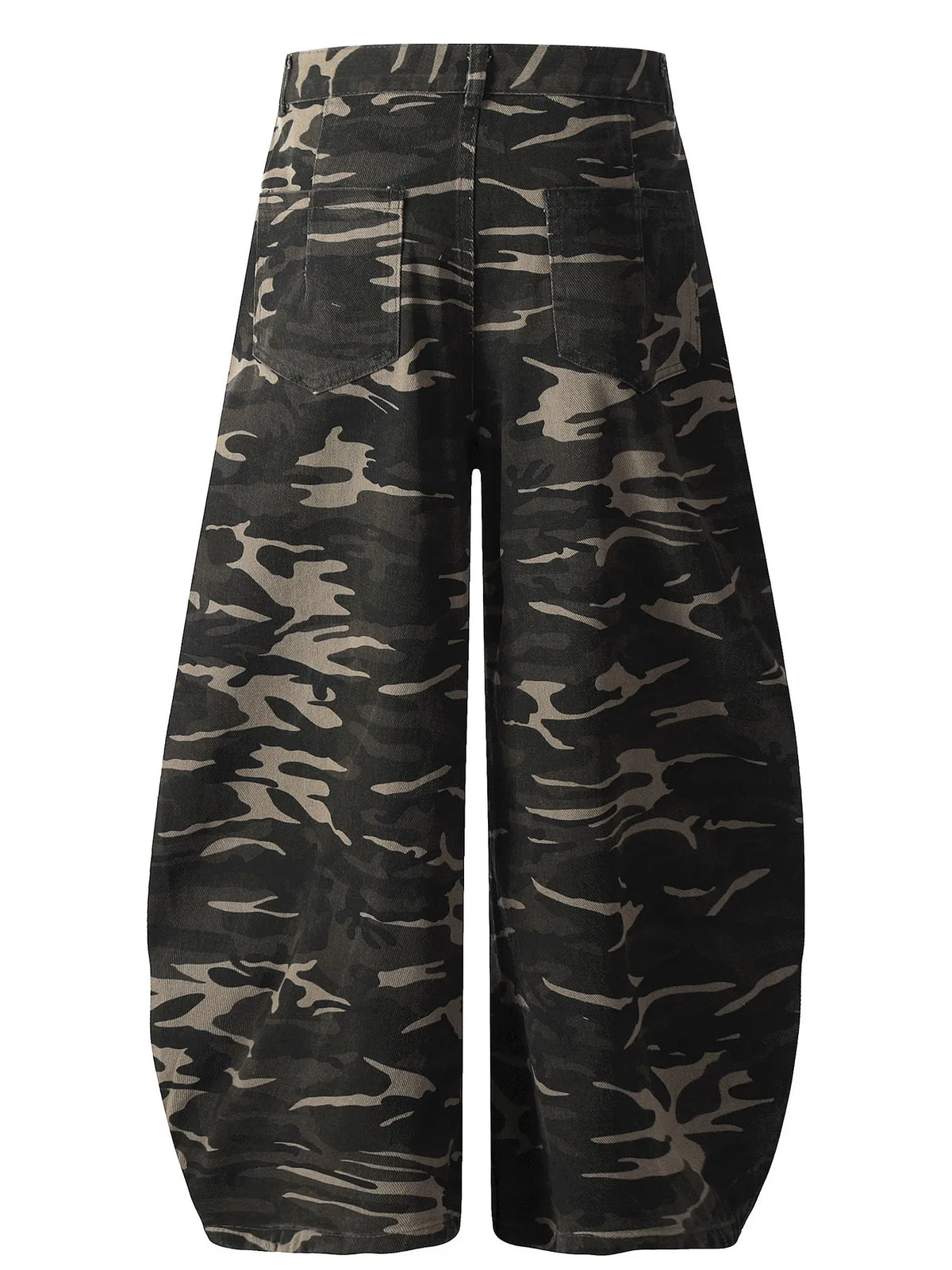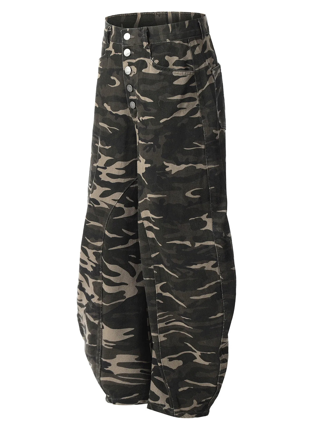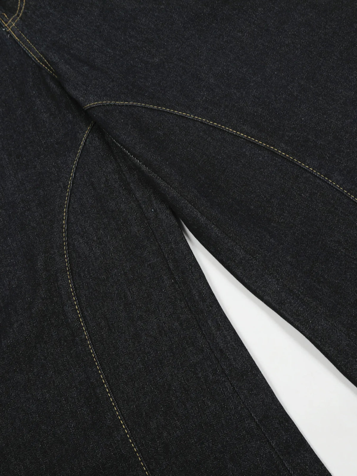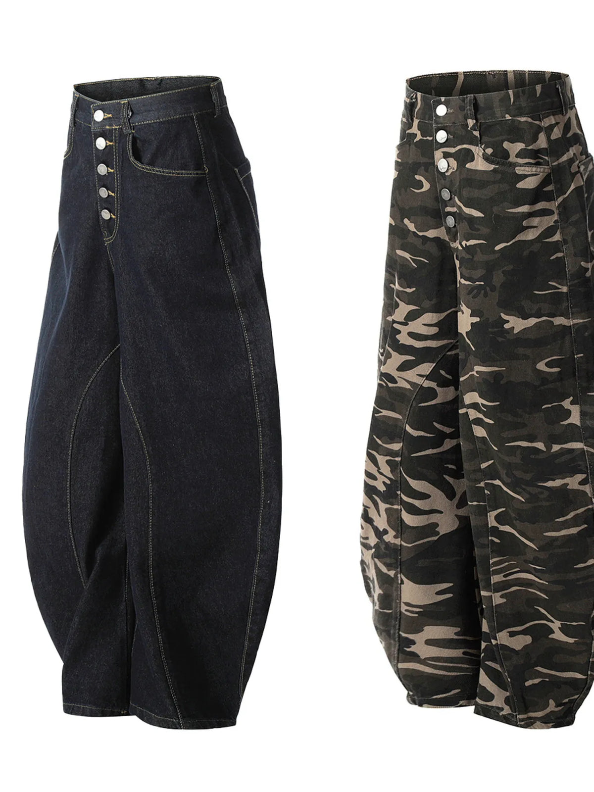 Men Oversized High Waist Jeans with Button Fly Curved Leg Durable Denim Pants with Seam Detail for Casual Wear