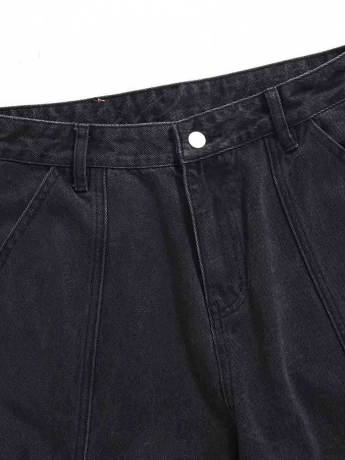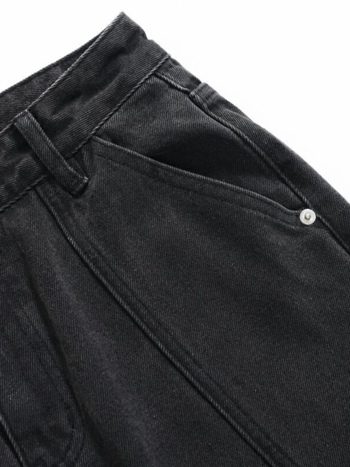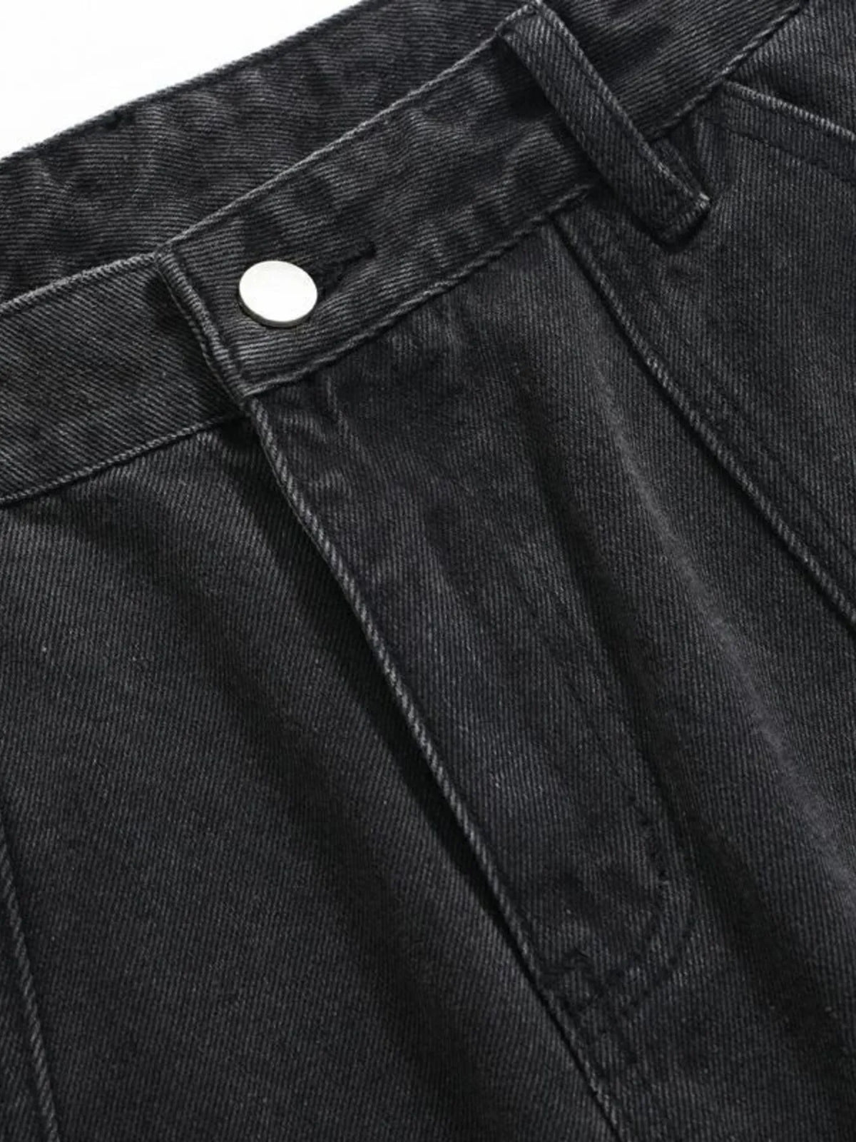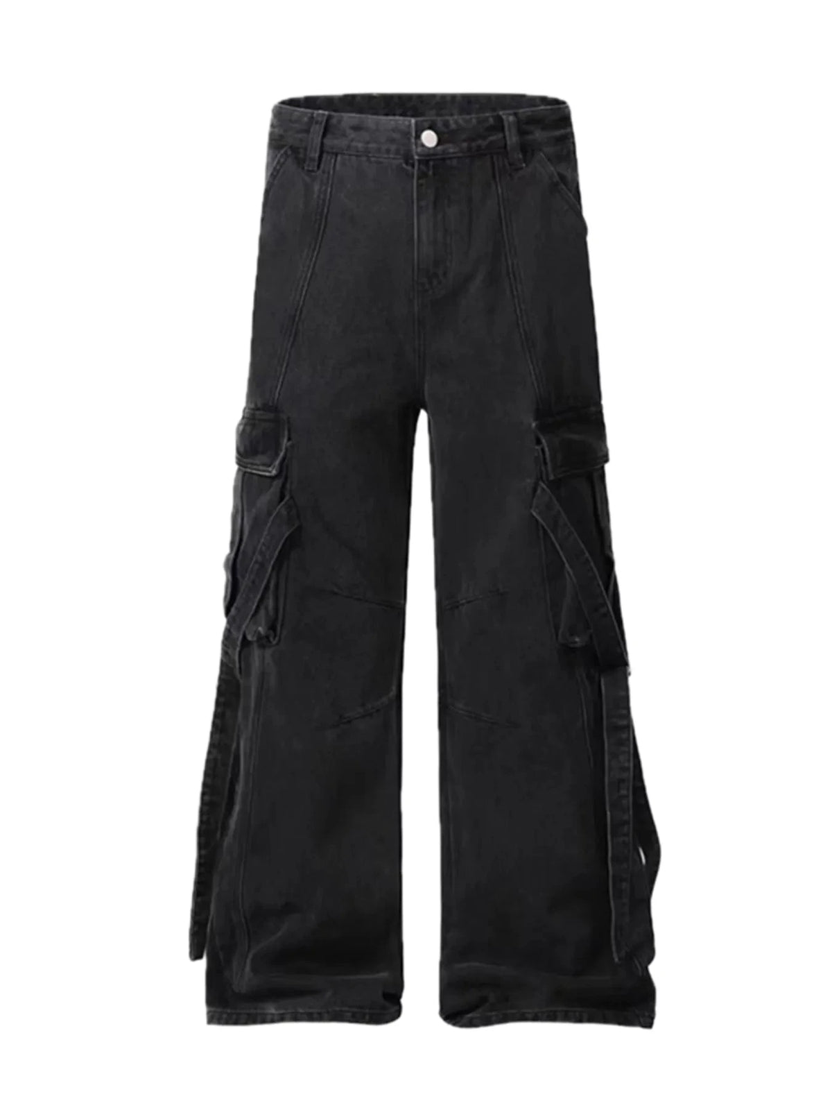Mens Cargo Wide Leg Jeans with Multiple Pockets Washed Durable Denim Pants for Casual Everyday Outdoor Wear Comfort Fit