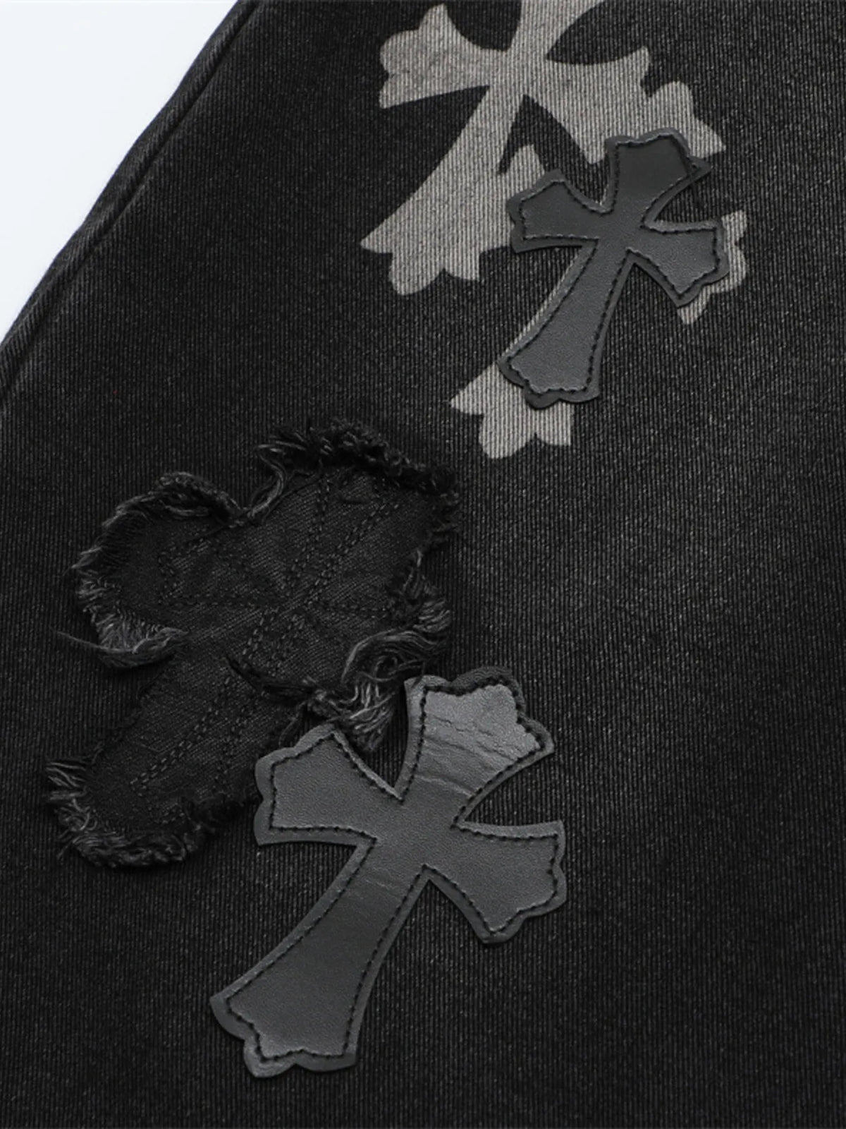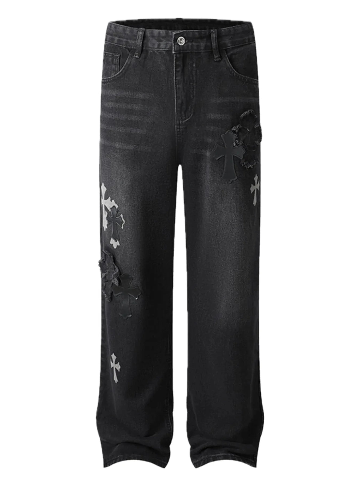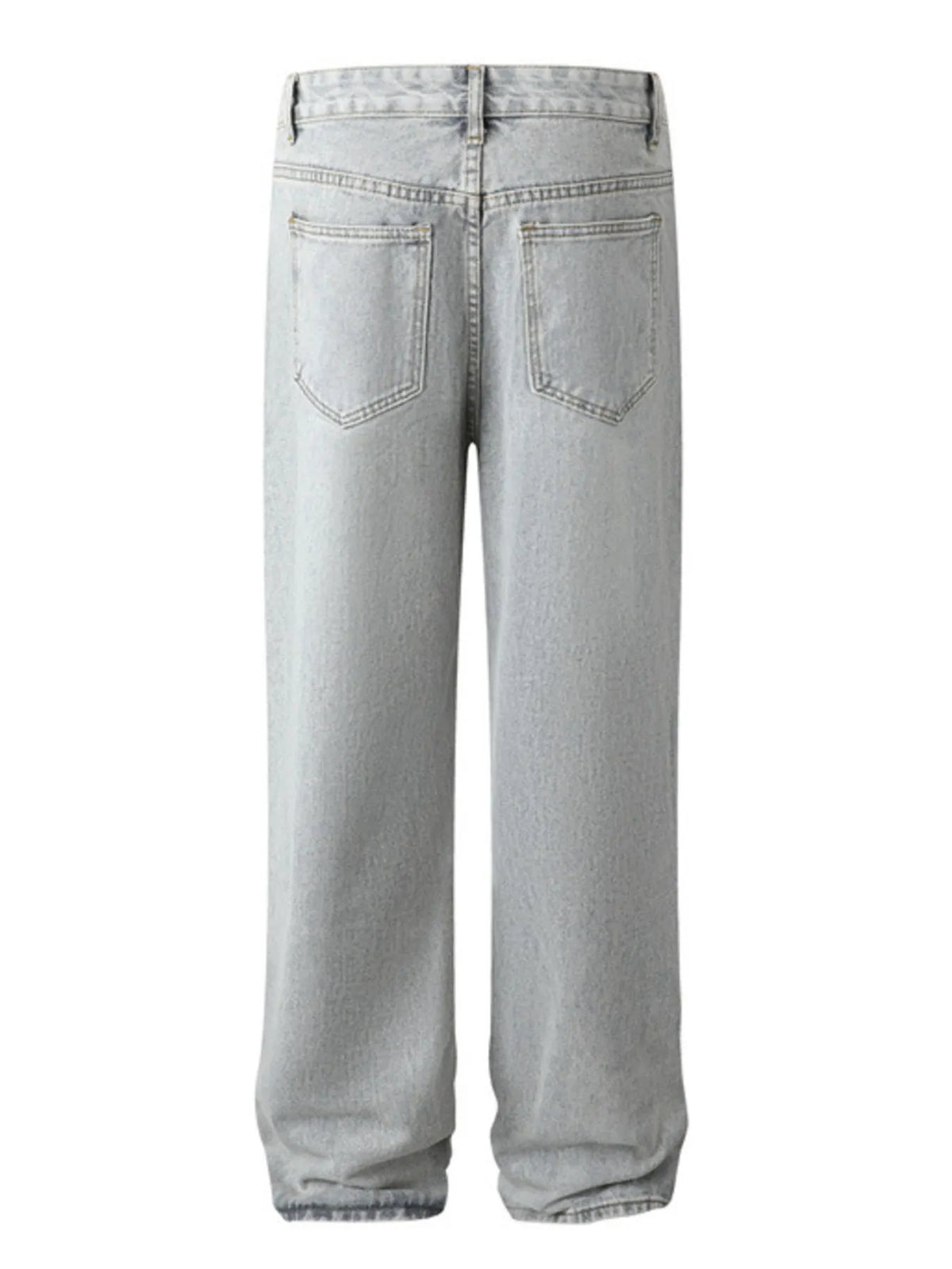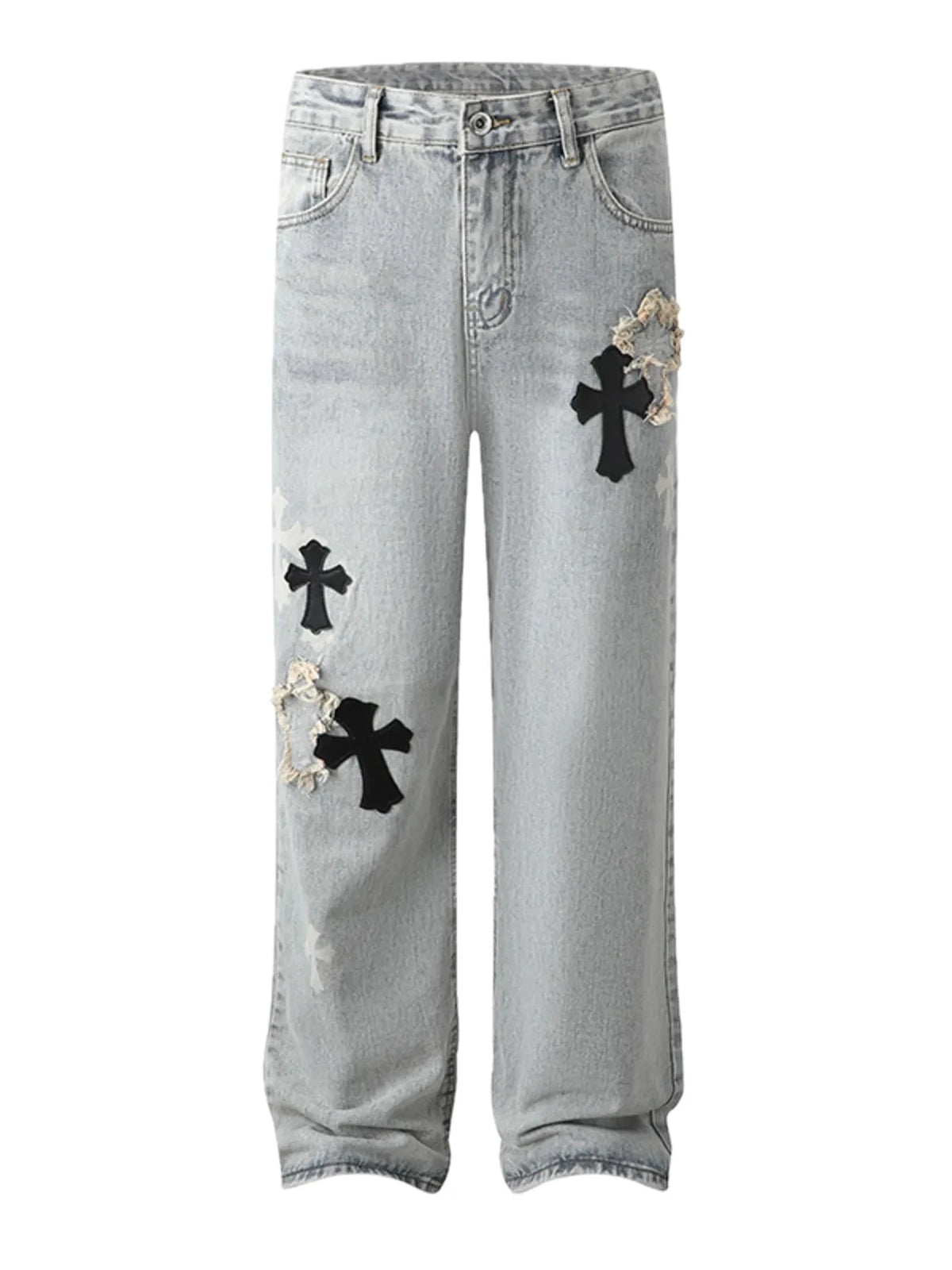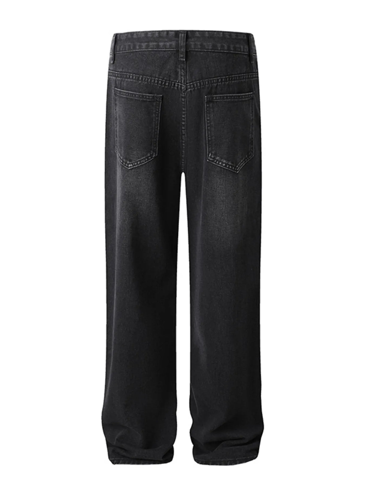 Mens Wide Leg Jeans with Cross Design Pockets Zipper Fly Denim Pants Straight Fit Casual Everyday Wear Durable