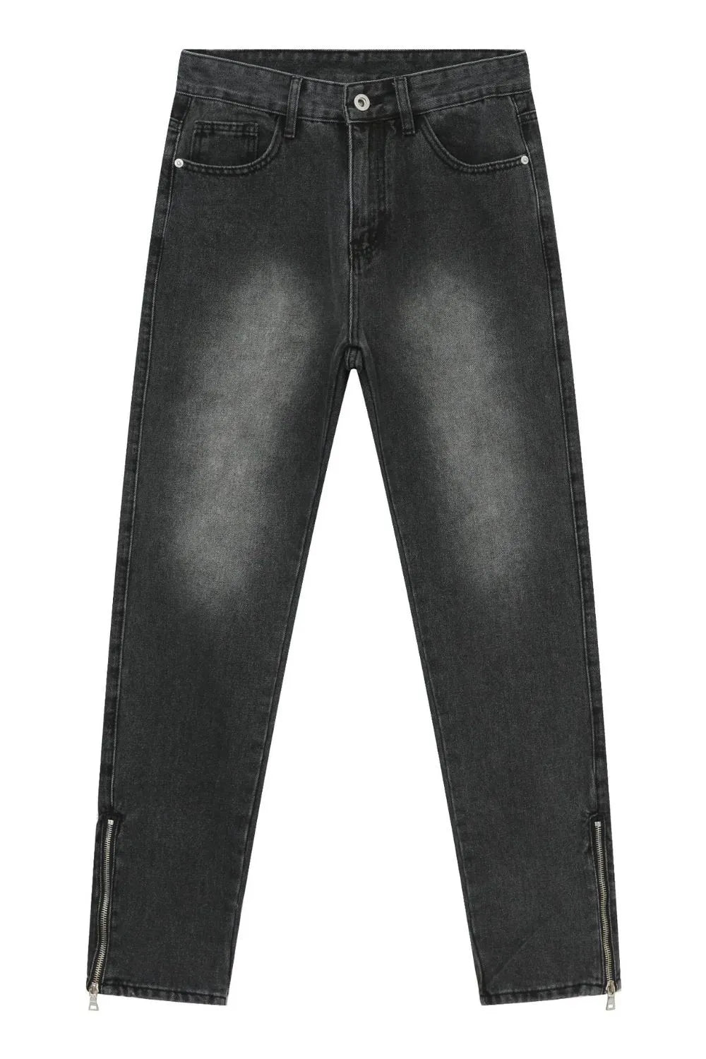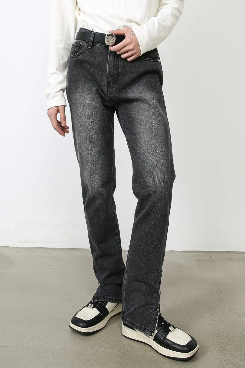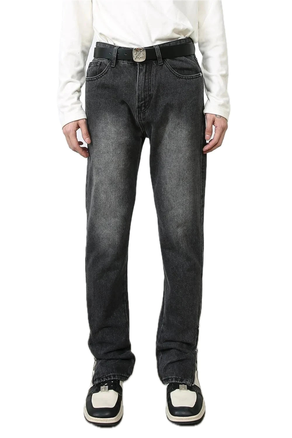 Mens Zip Decor Denim Jeans with Pockets Durable Everyday Wear Pants for Casual Occasions and Outdoor Activities