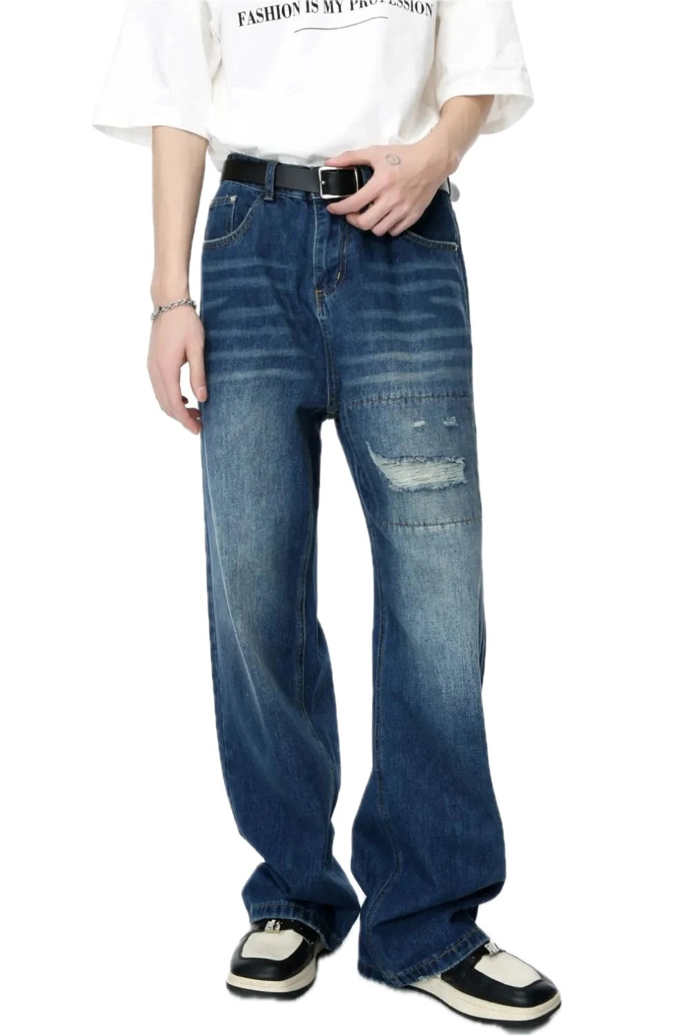 Men Distressed Applique Straight Leg Jeans Denim Pants for Everyday Casual Wear Durable Cotton Blend Classic Fit